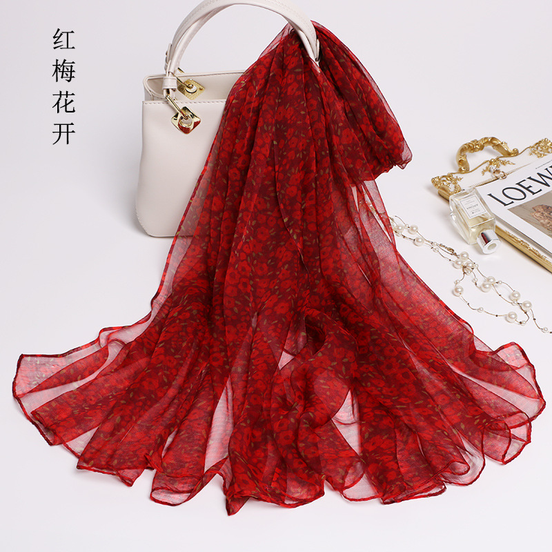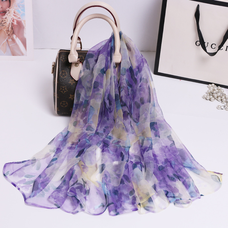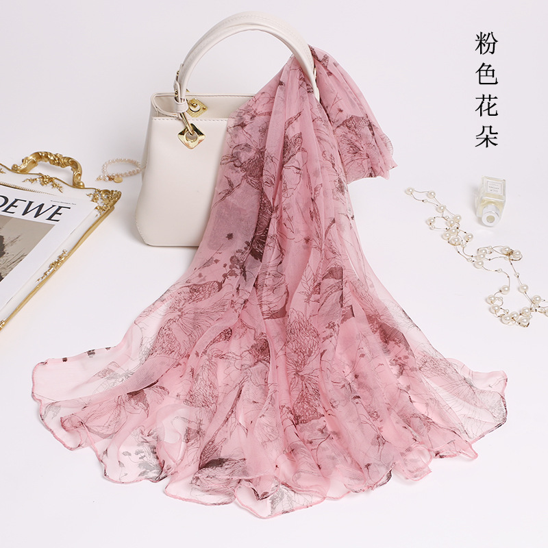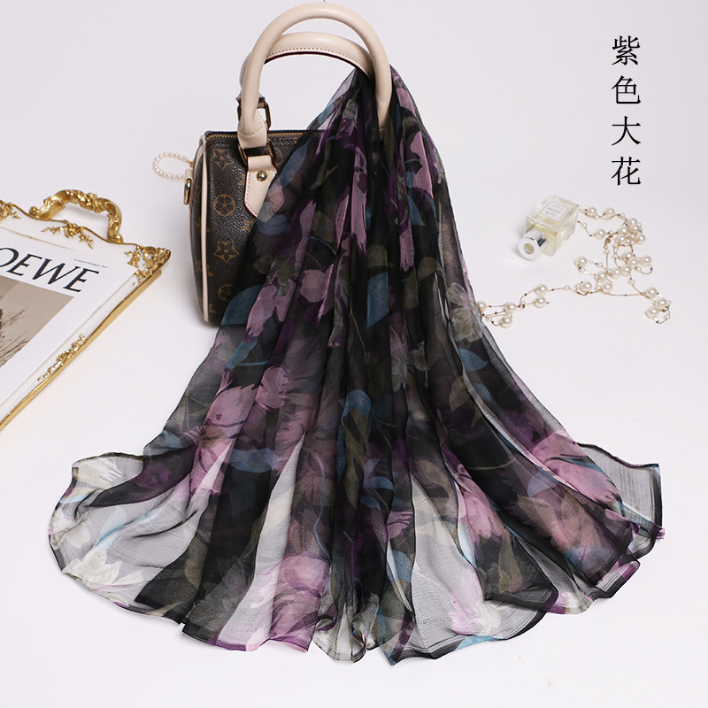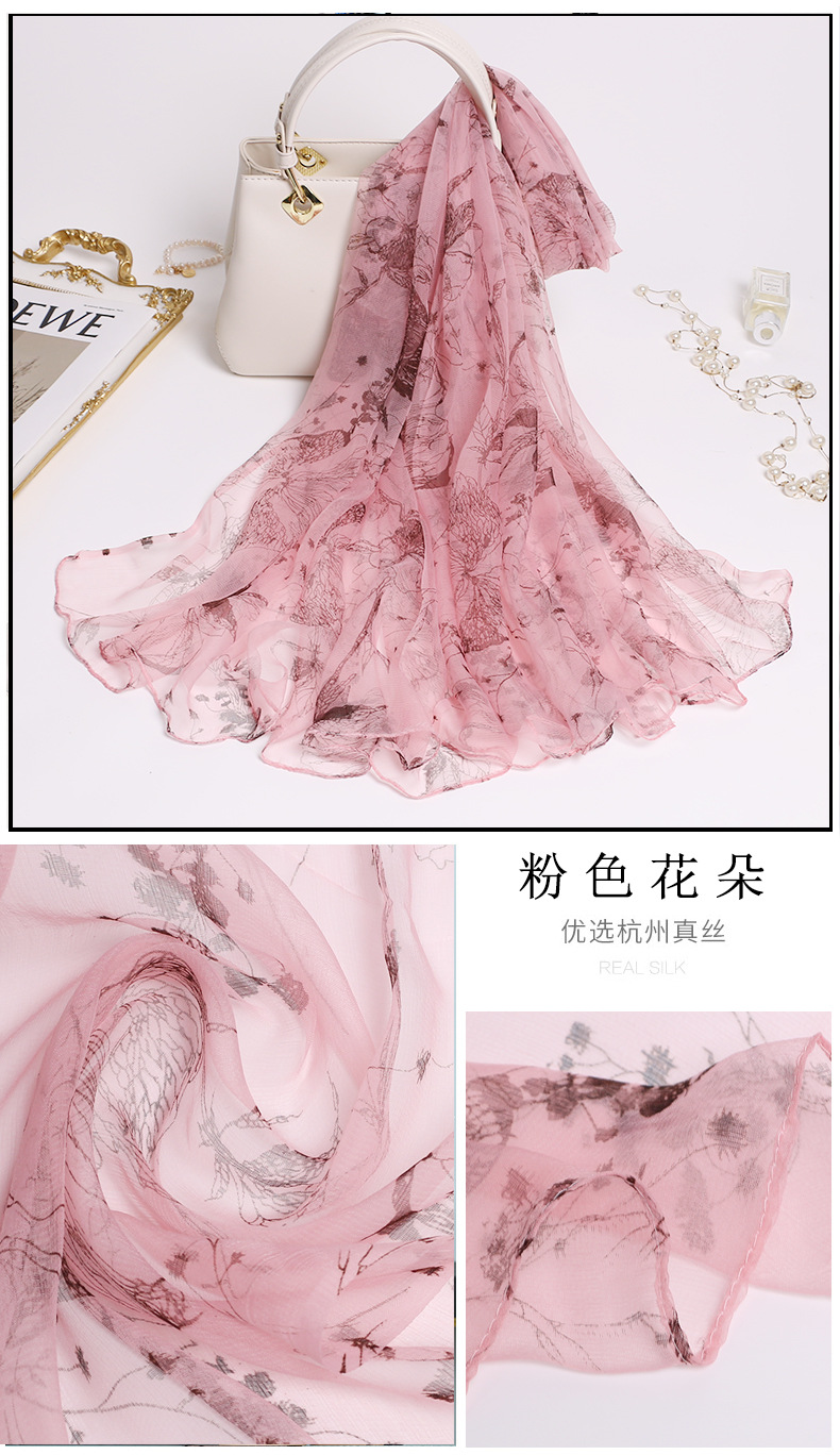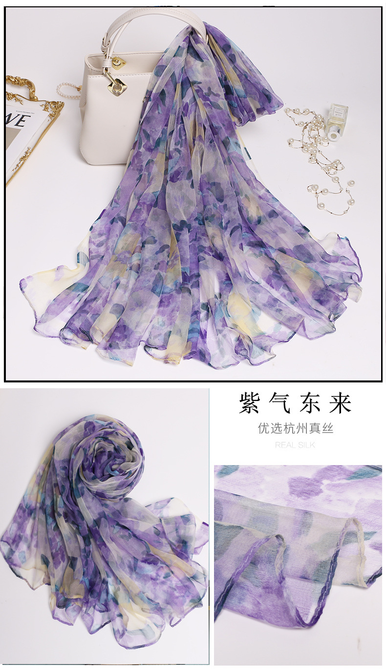 Tulle 스카프 여자 2024 항주 실크 새로운 실크 뽕나무 실크 긴 꽃 전체 스카프 공장 도매