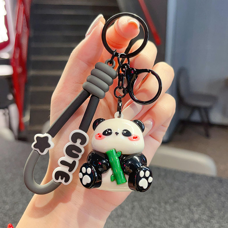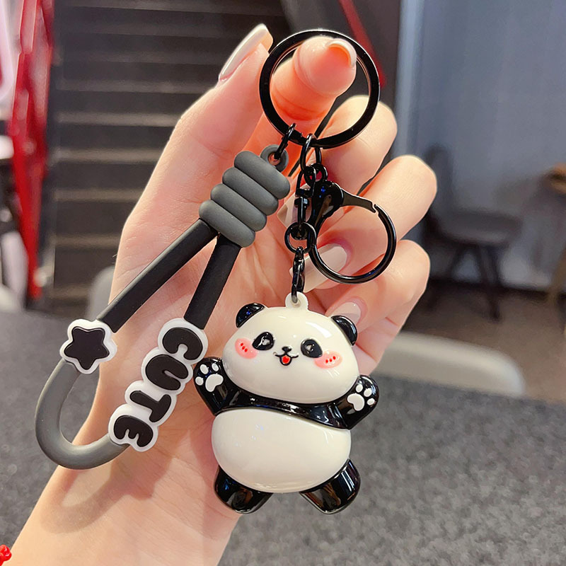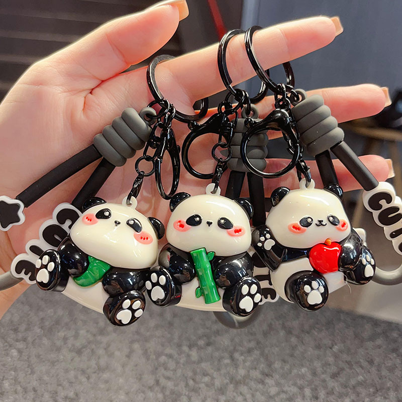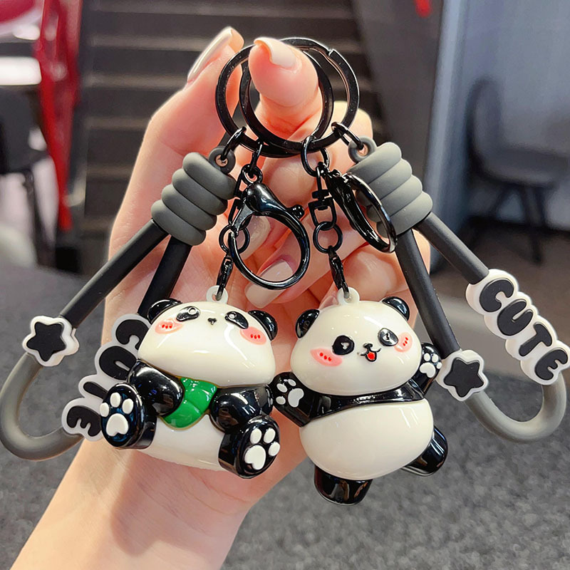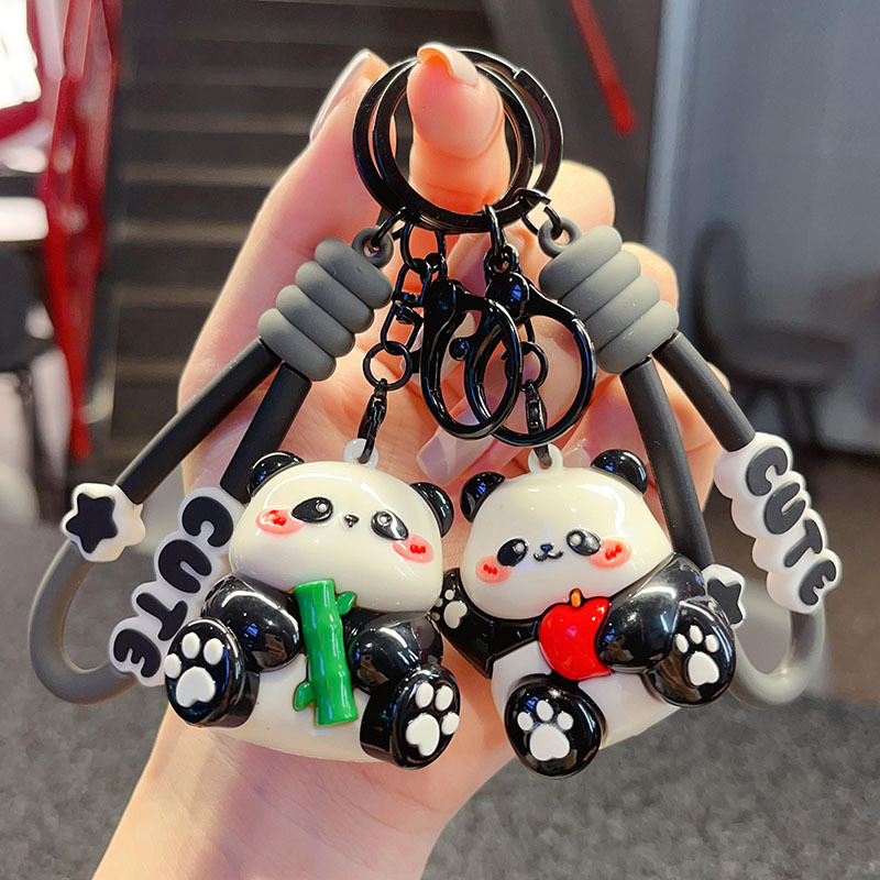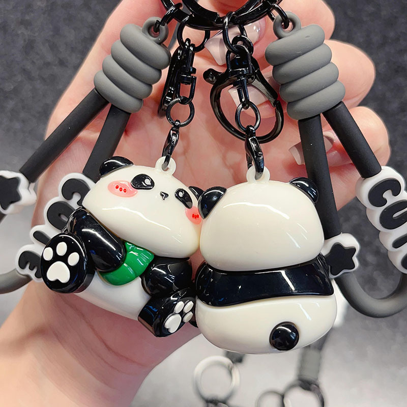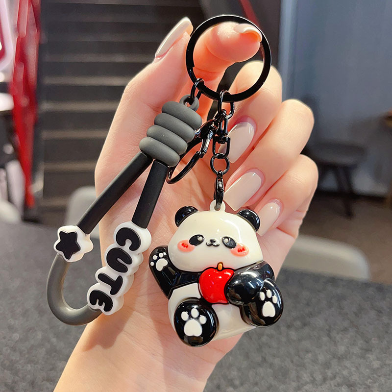 창조적 인 도금 팬더 키 체인 귀여운 PVC 인형 커플 학교 가방 펜던트 자동차 펜던트 작은 선물 선물스토어 가기