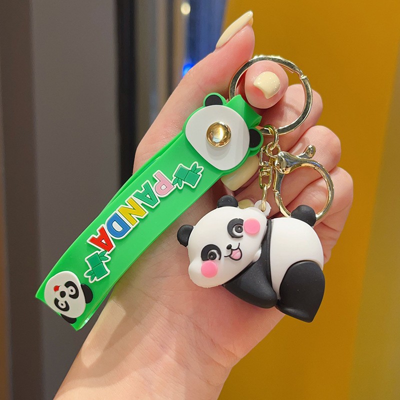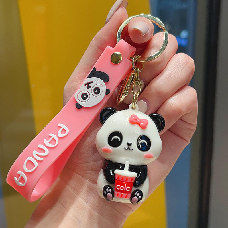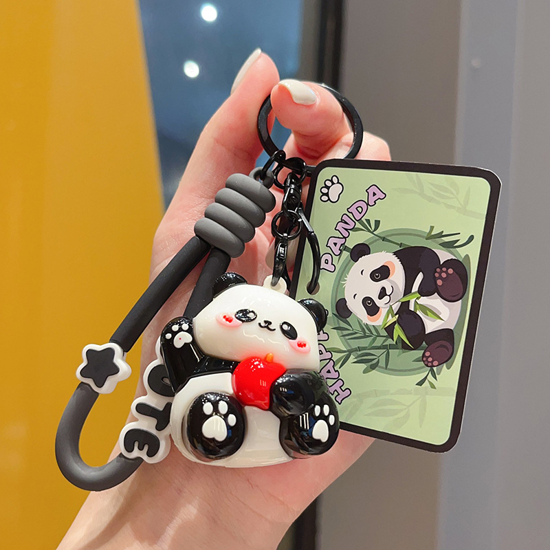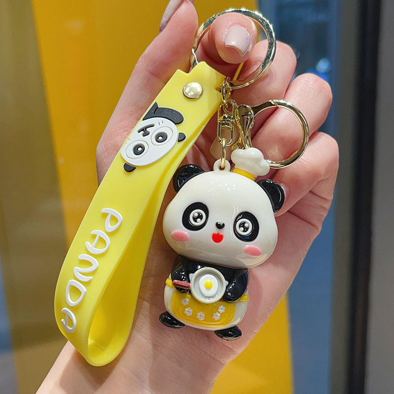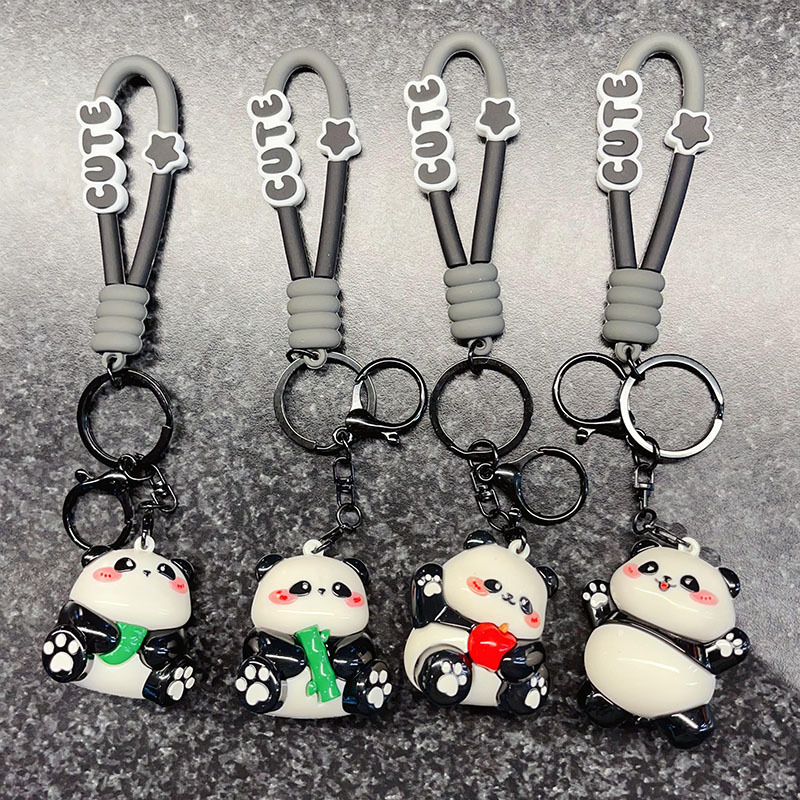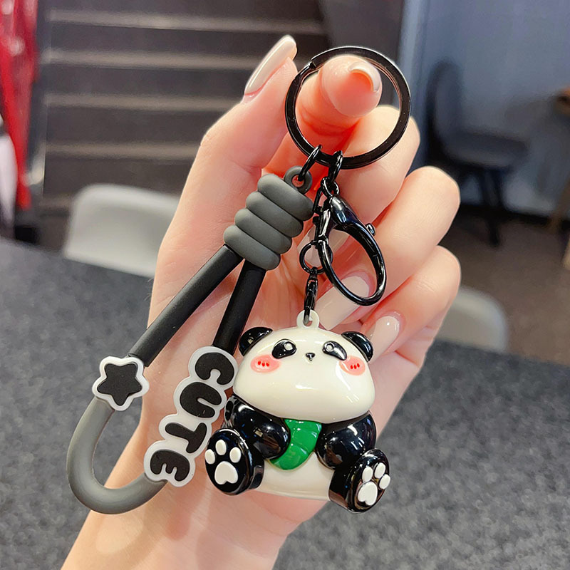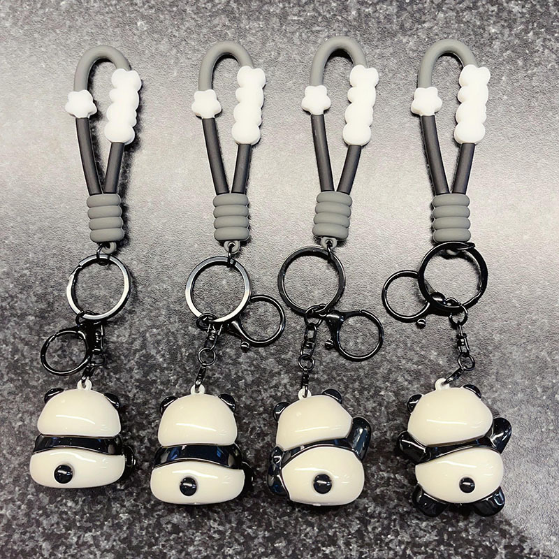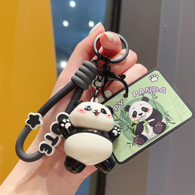 창조적 인 도금 팬더 키 체인 귀여운 PVC 인형 커플 학교 가방 펜던트 자동차 펜던트 작은 선물 선물스토어 가기