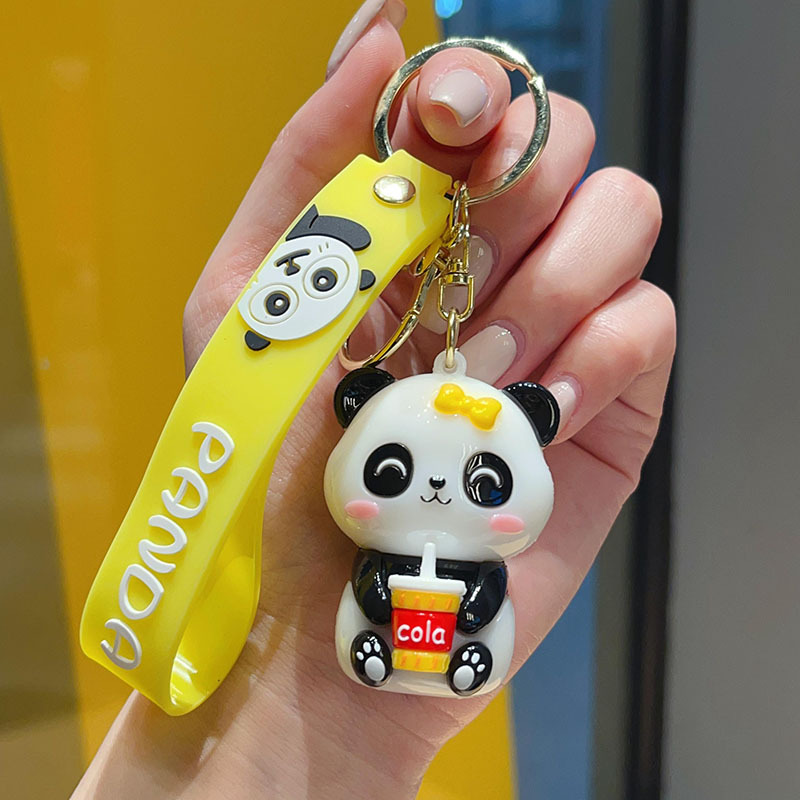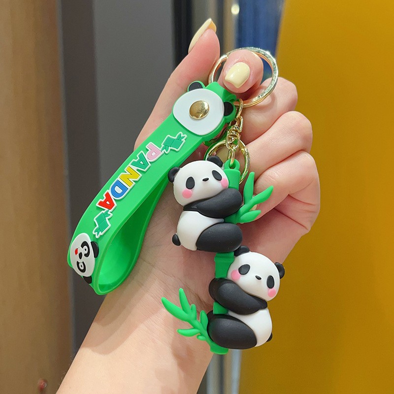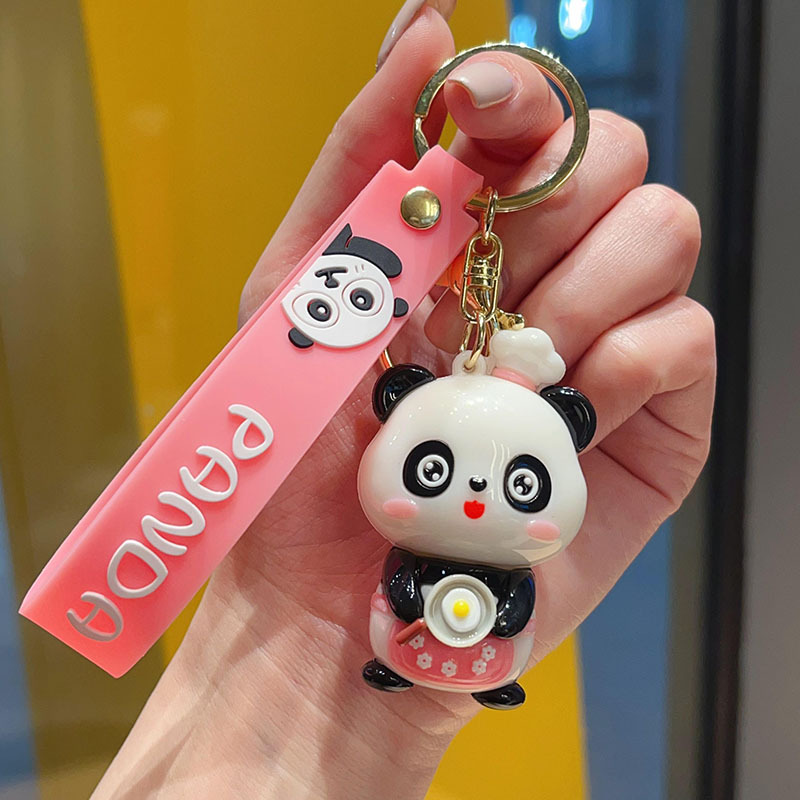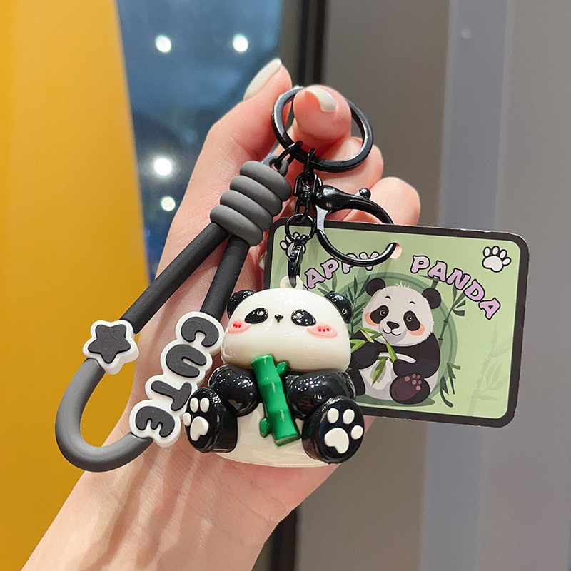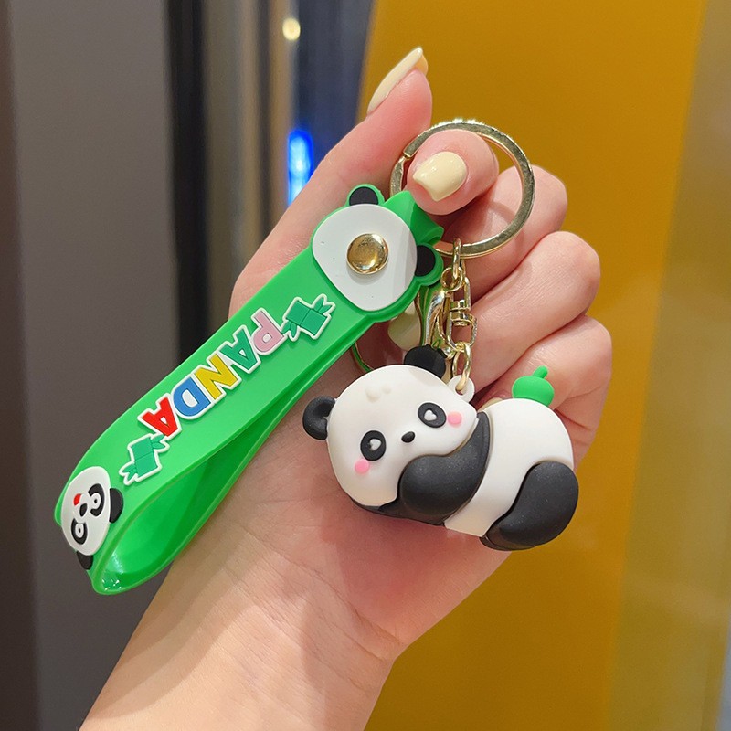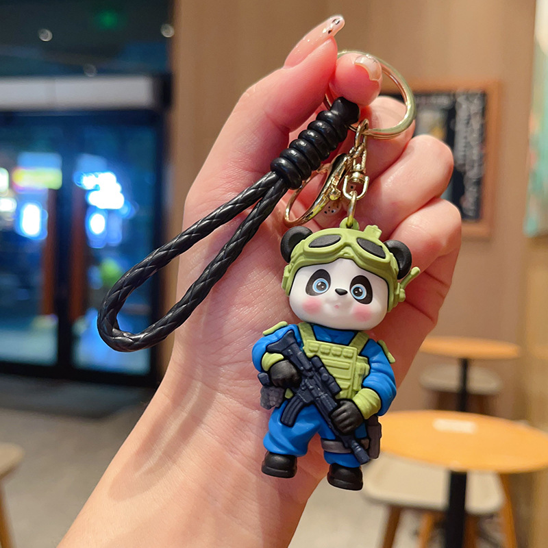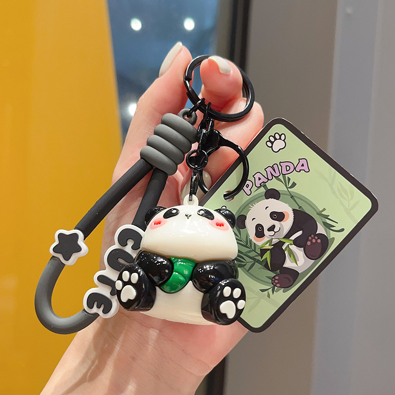 창조적 인 도금 팬더 키 체인 귀여운 PVC 인형 커플 학교 가방 펜던트 자동차 펜던트 작은 선물 선물스토어 가기