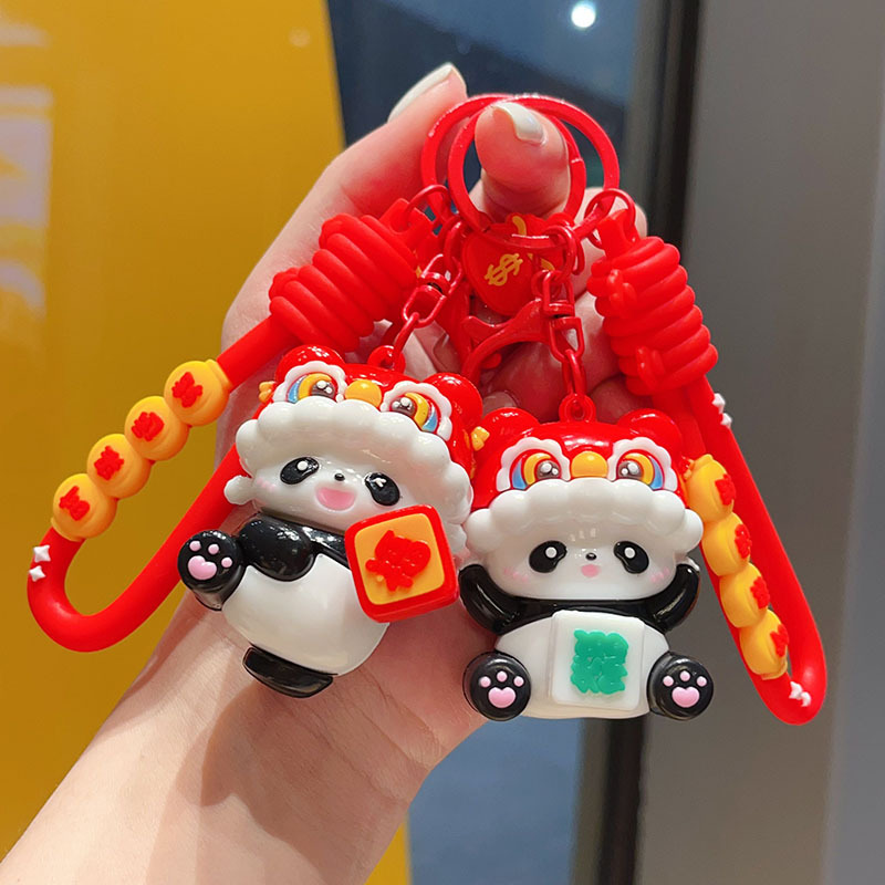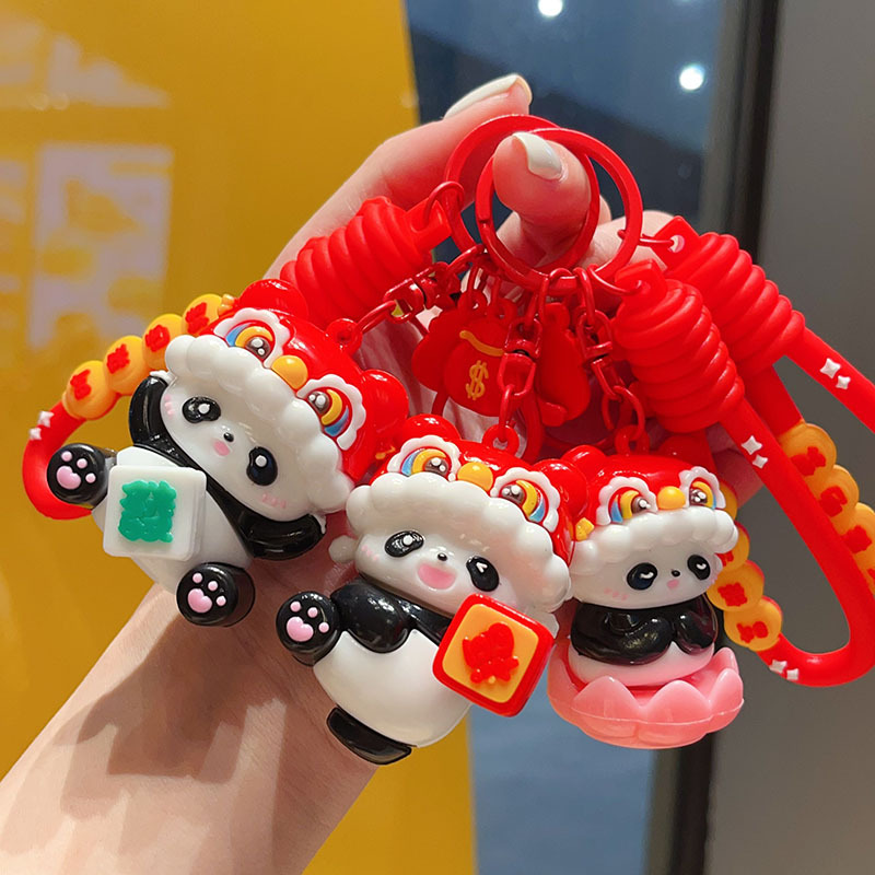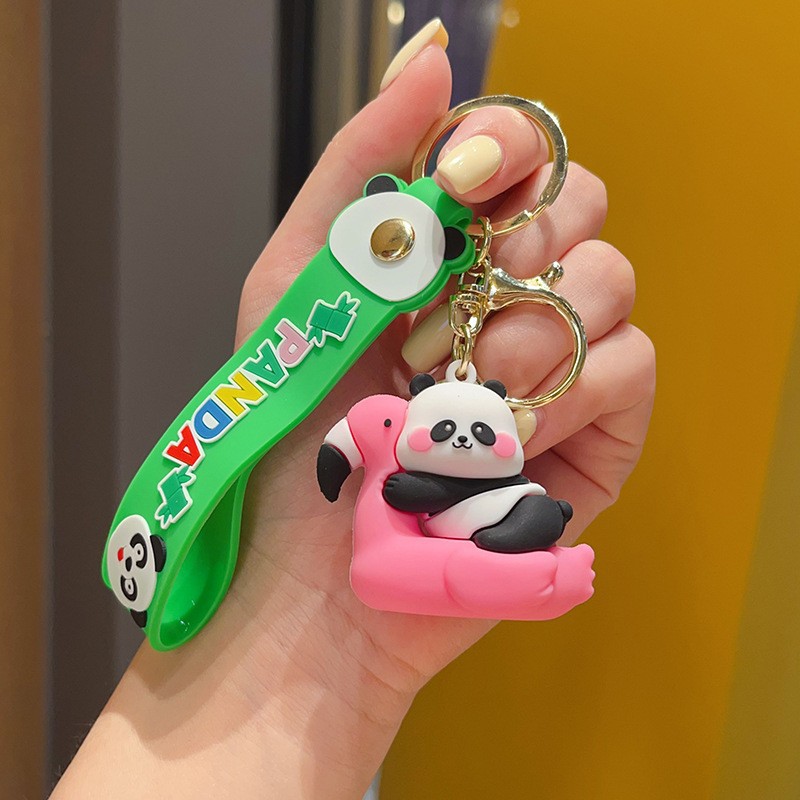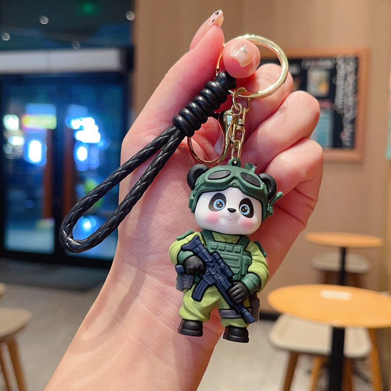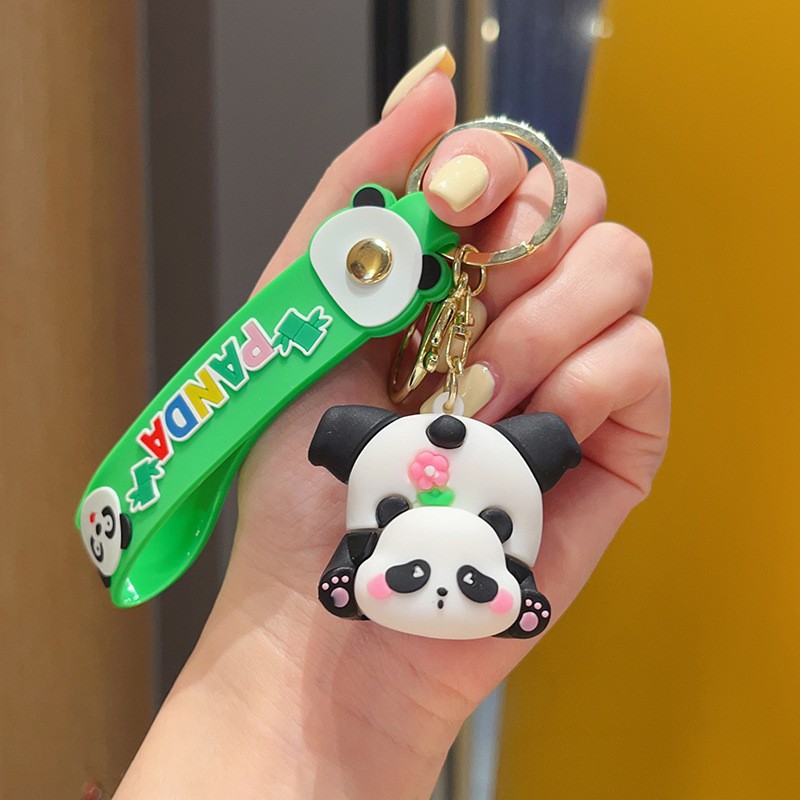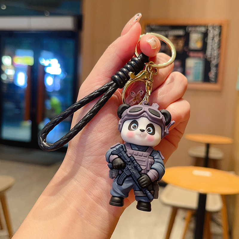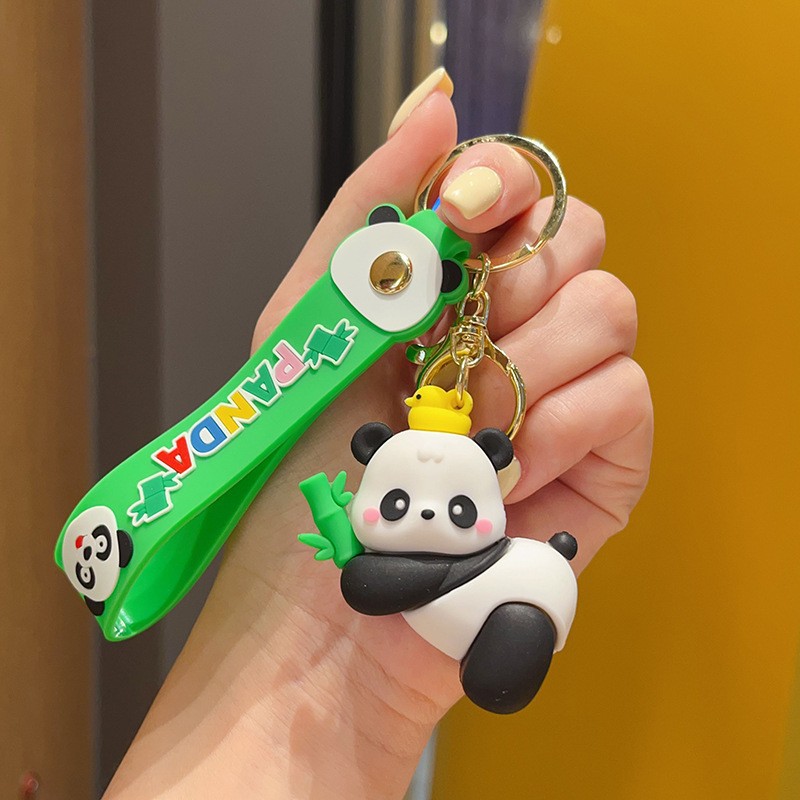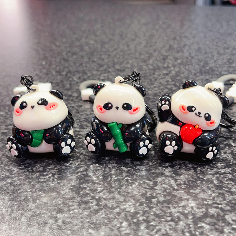 창조적 인 도금 팬더 키 체인 귀여운 PVC 인형 커플 학교 가방 펜던트 자동차 펜던트 작은 선물 선물스토어 가기