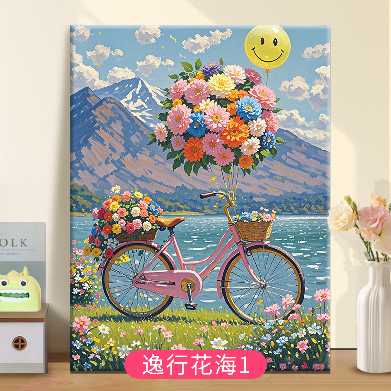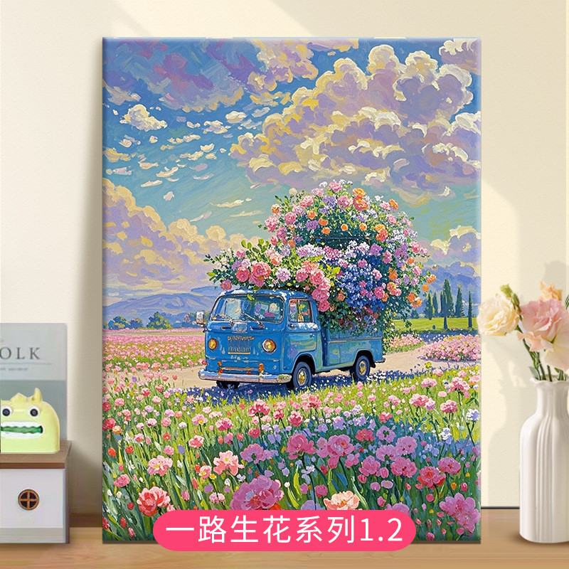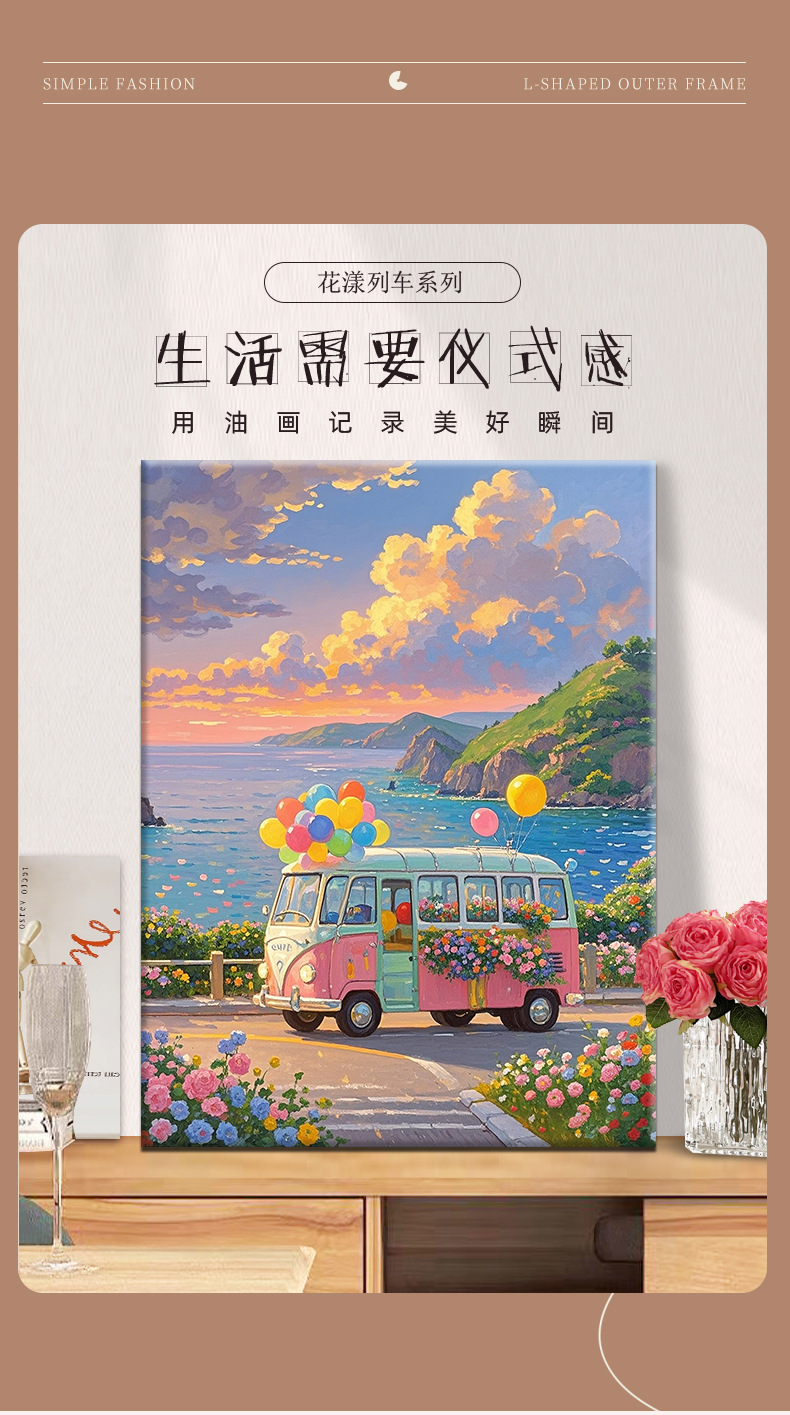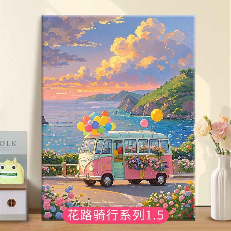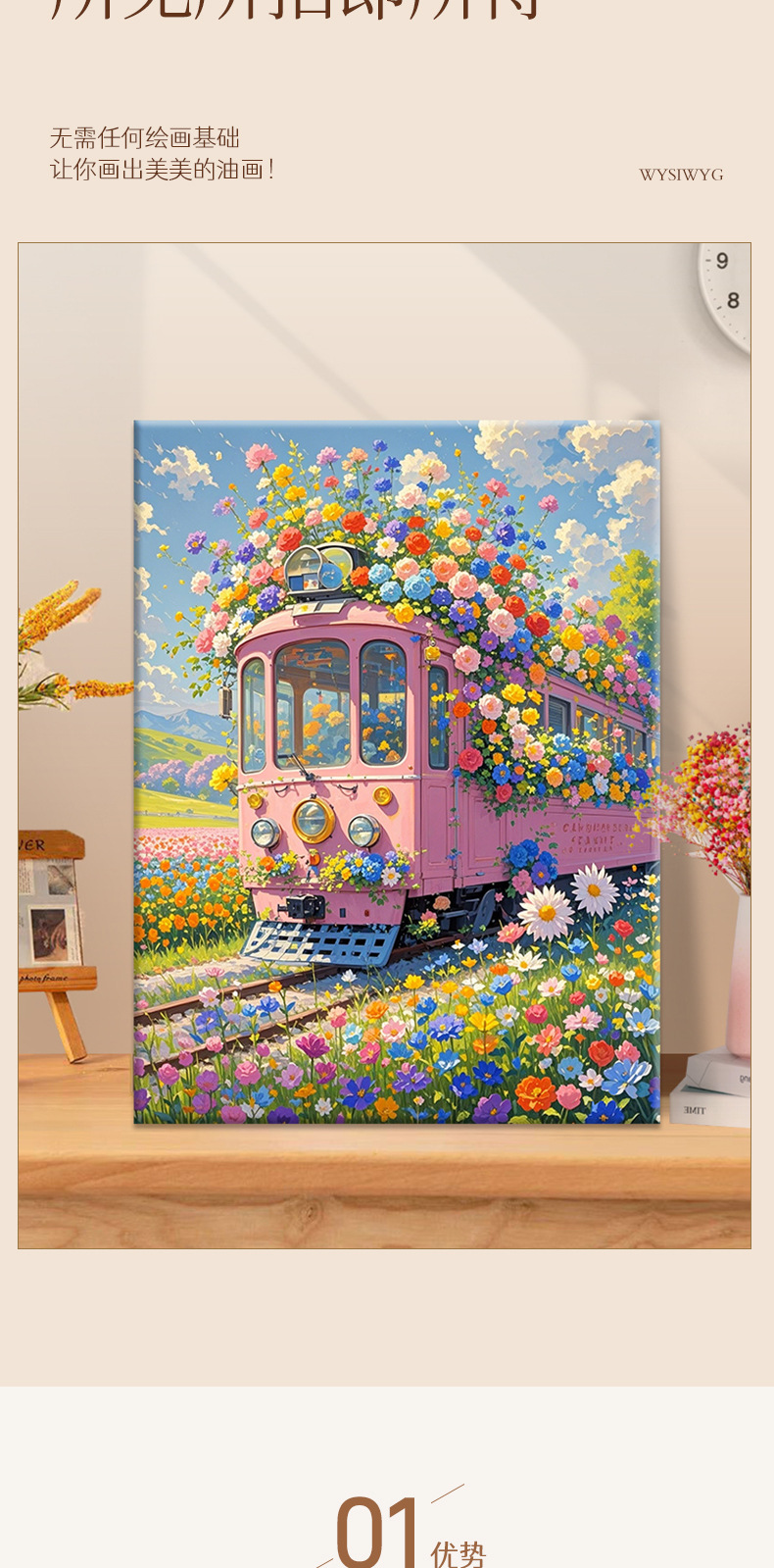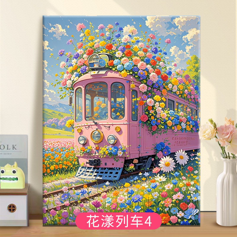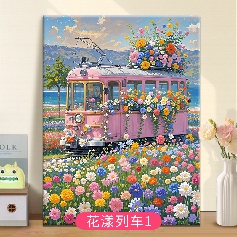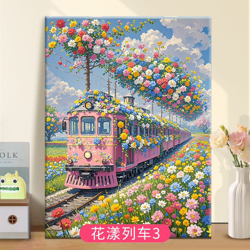 花漾列车|diy数字油画丙烯填充手绘路途风景治愈系减压油彩涂色画