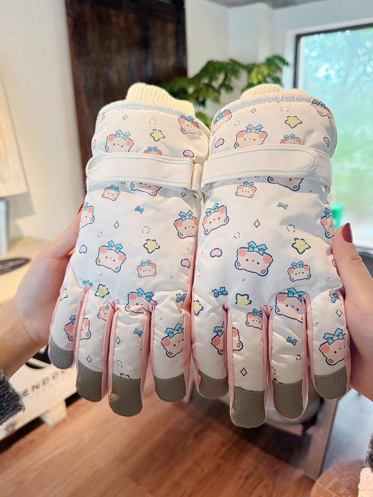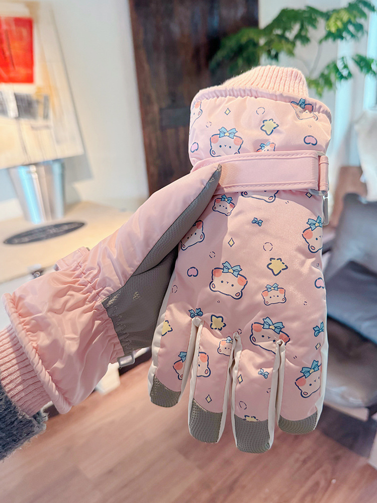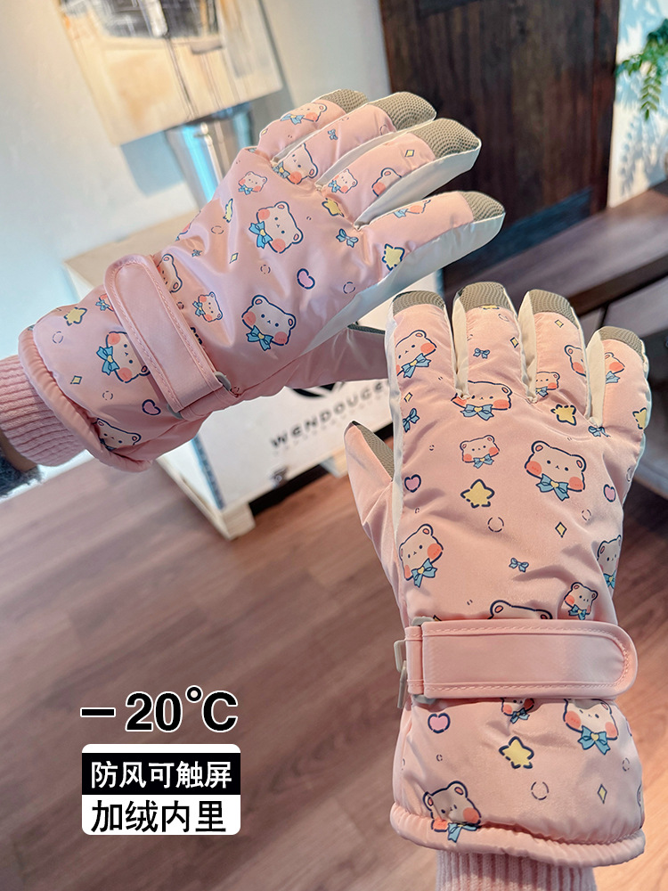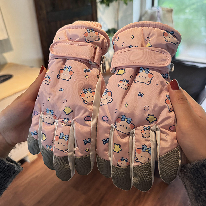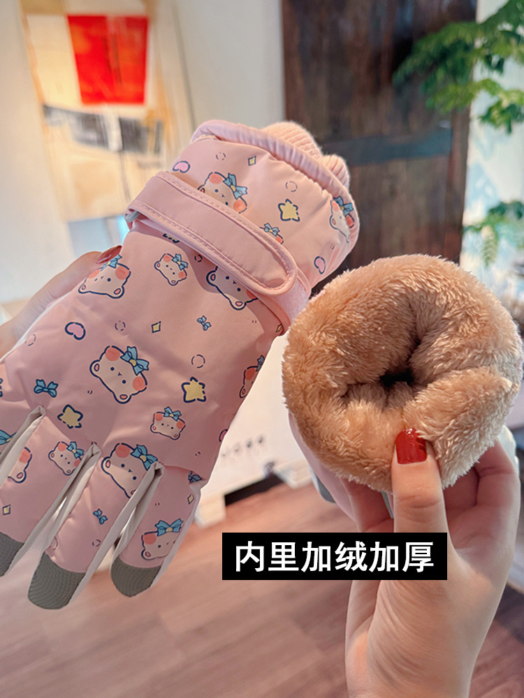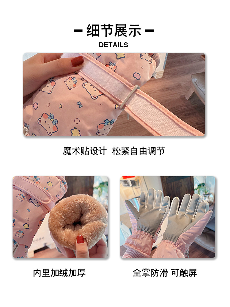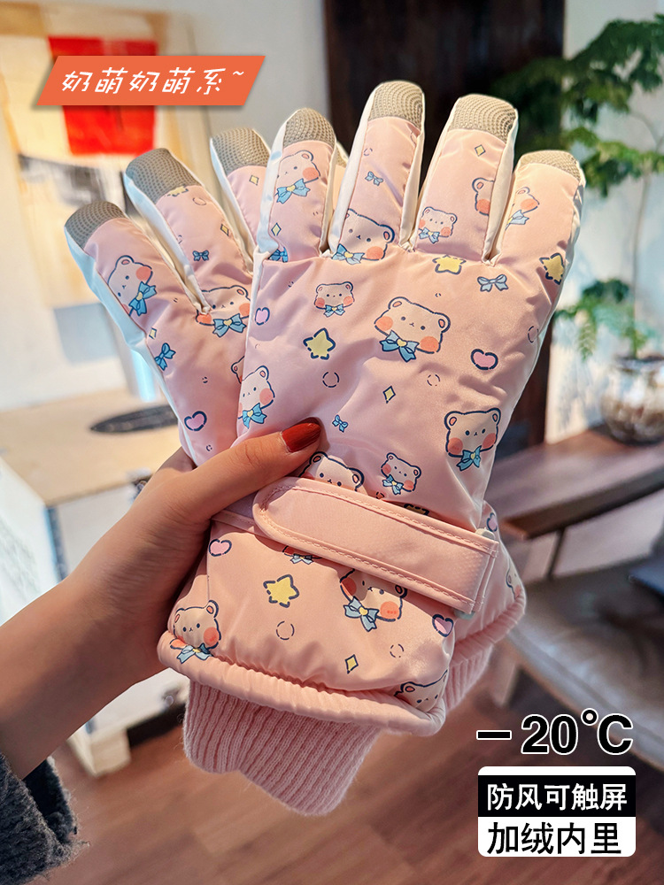 귀여운 만화 어린이 스키 장갑 여성의 겨울 기모 두꺼운 멀티 손가락 터치 스크린 냉간 사이클링 장갑 국경스토어 가기