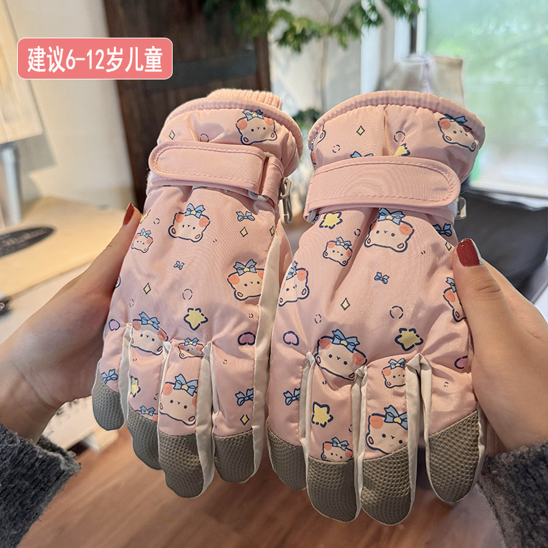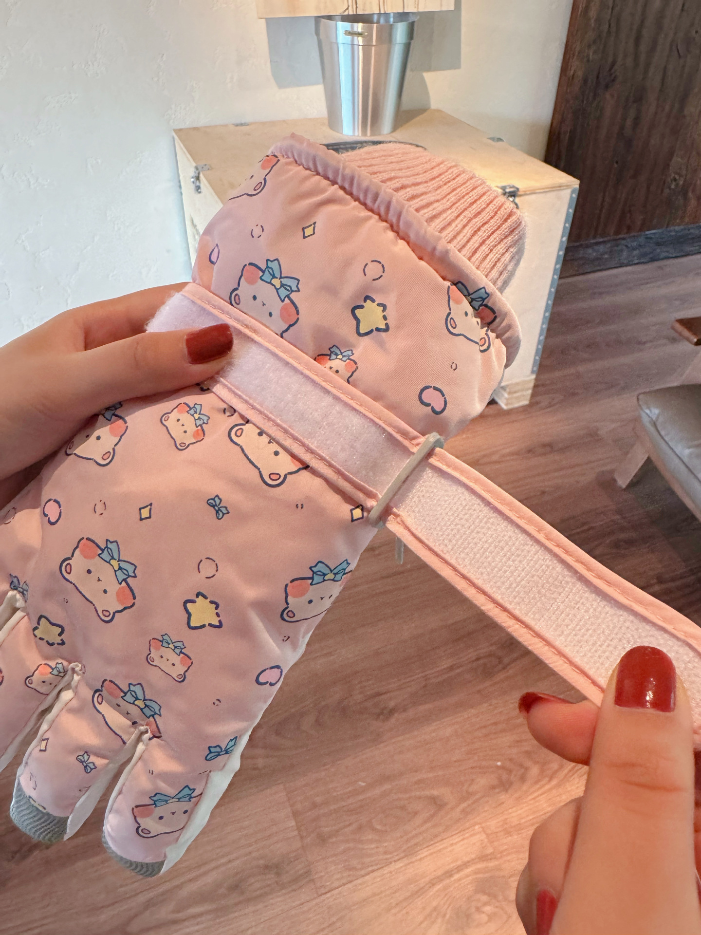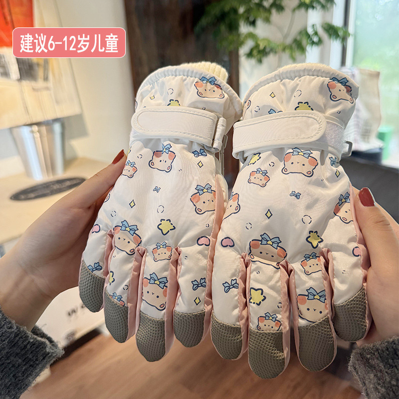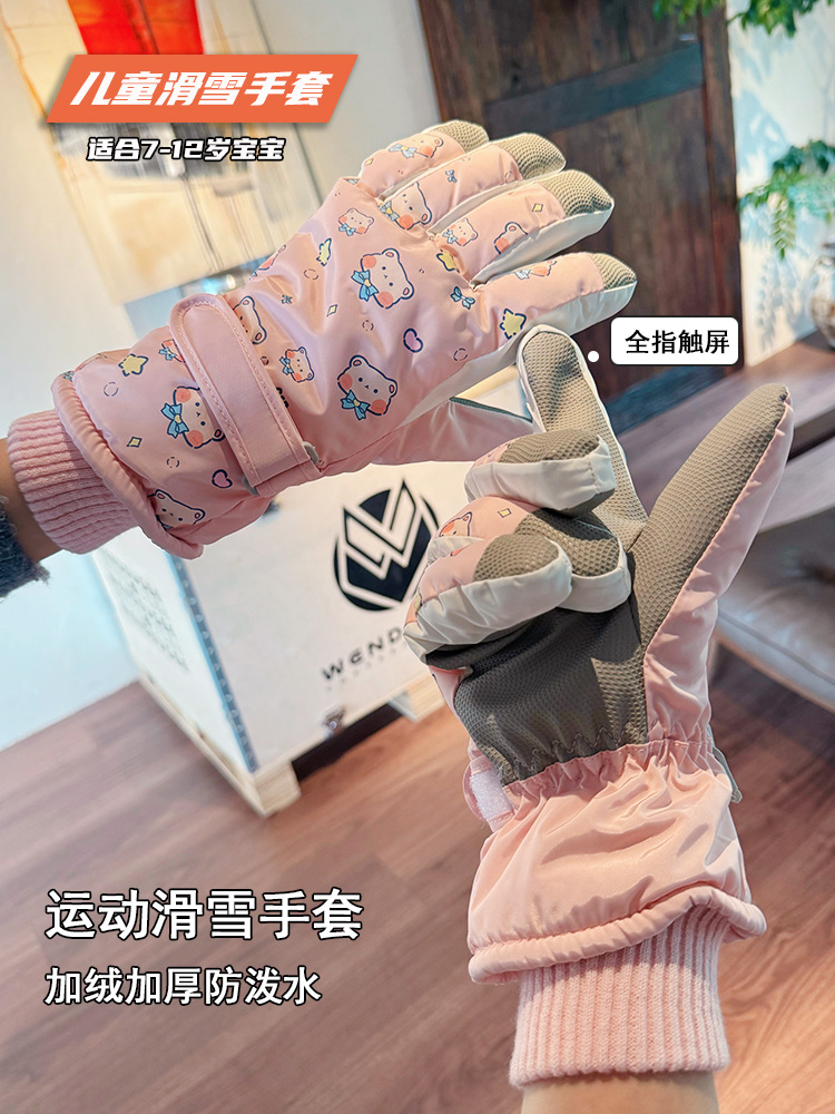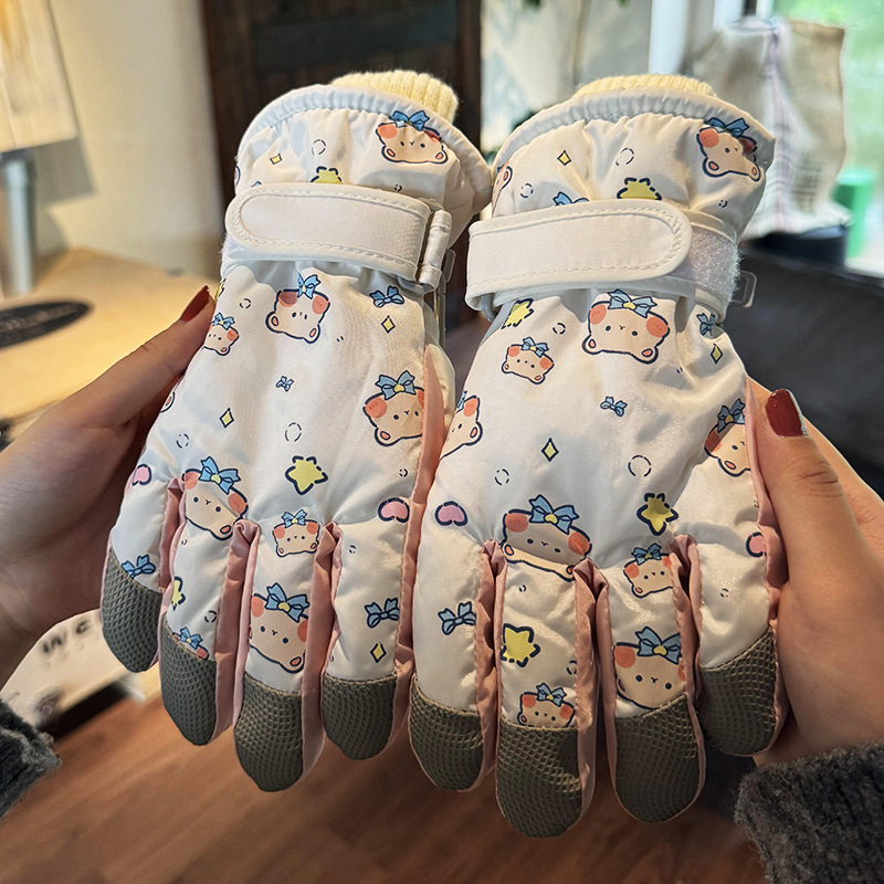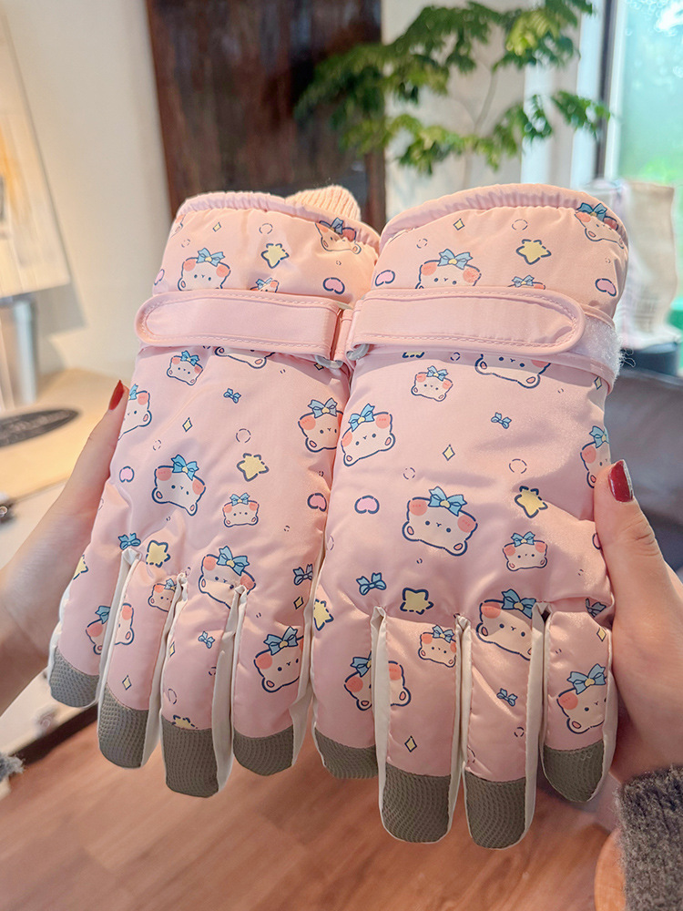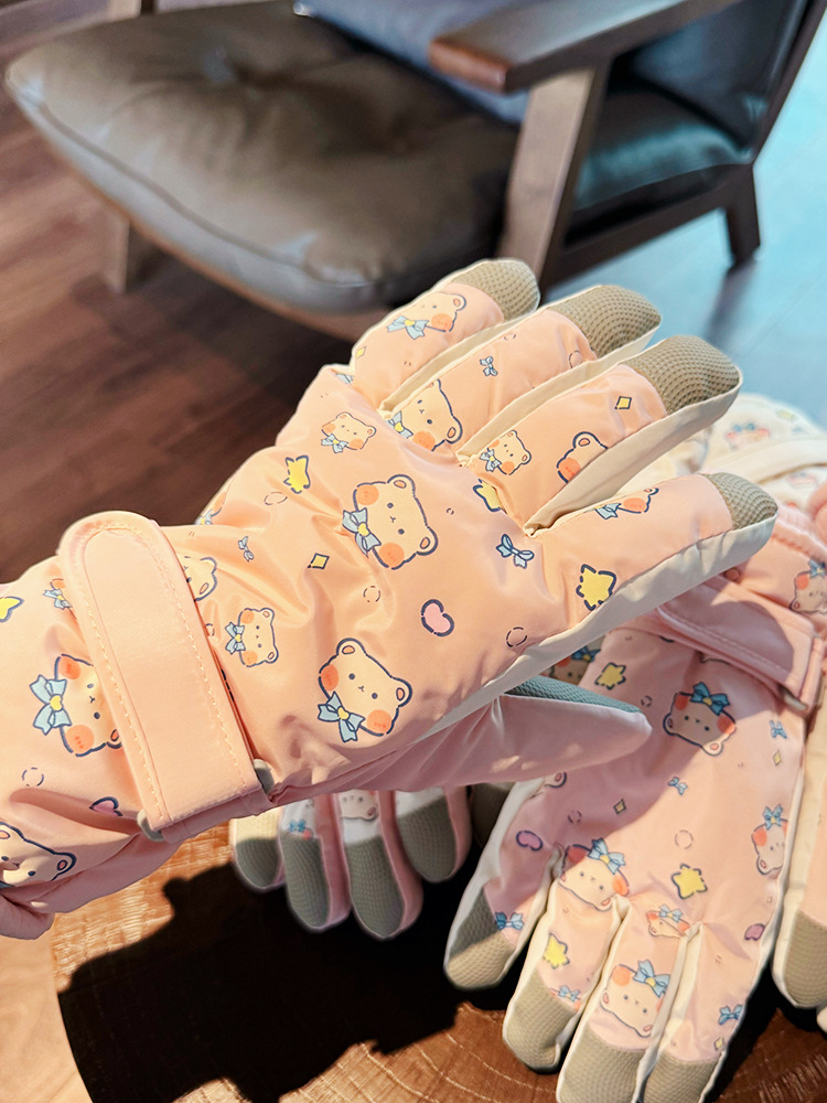 귀여운 만화 어린이 스키 장갑 여성의 겨울 기모 두꺼운 멀티 손가락 터치 스크린 냉간 사이클링 장갑 국경스토어 가기