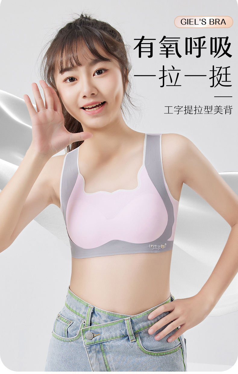 중,고등학생 여아 브라, 발달기 학생 스포츠 충격방지 조끼, 여아 I자형 아름다운 등교정 속옷
