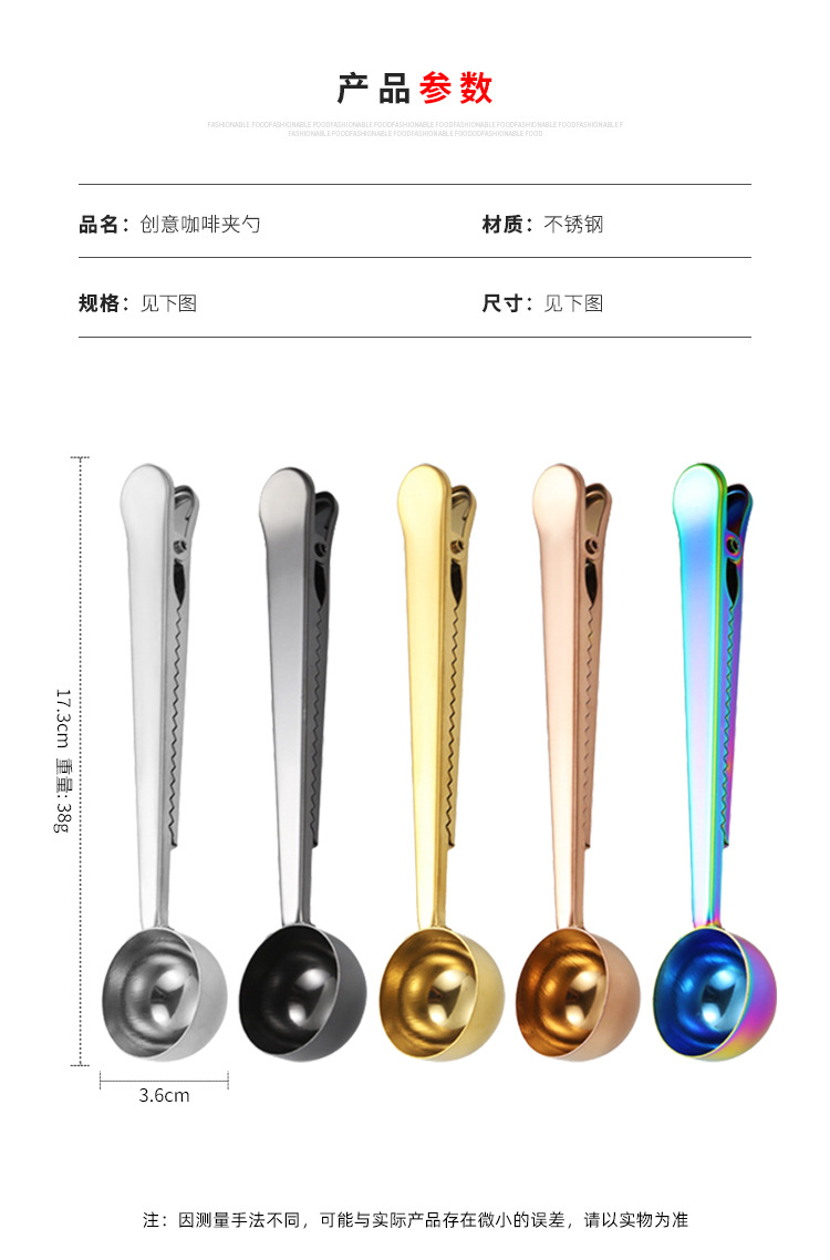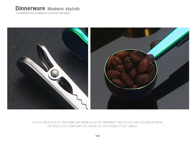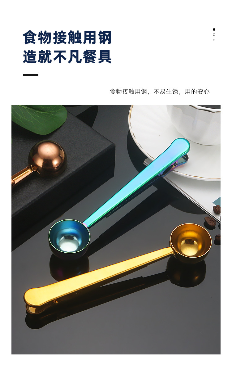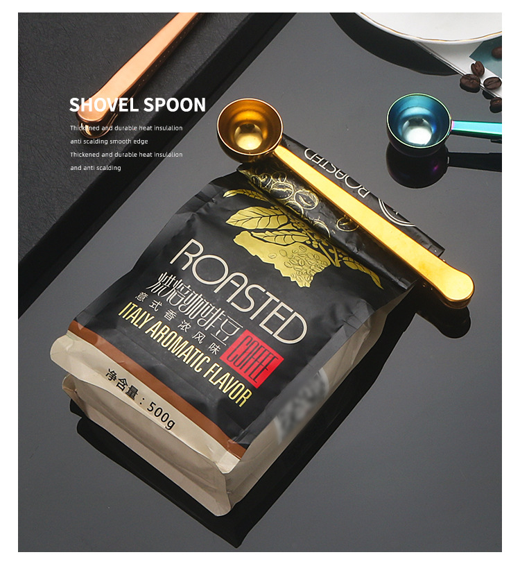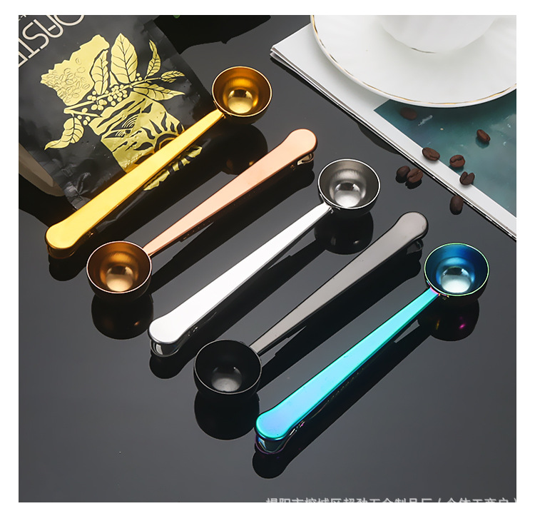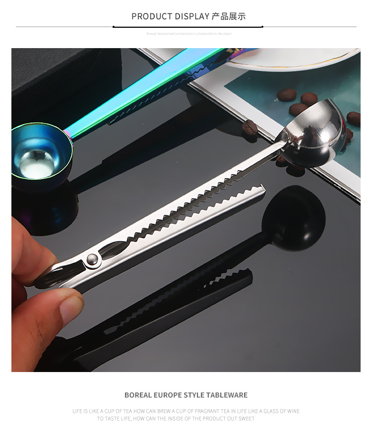 스테인레스 스틸 측정 스푼 2-in-1 커피 콩 측정 스푼 클립 커피 가루 밀크 파우더 씰링 측정 스푼 클립 스낵 씰링 클립스토어 가기