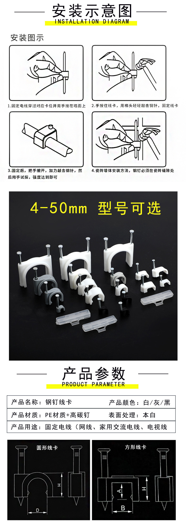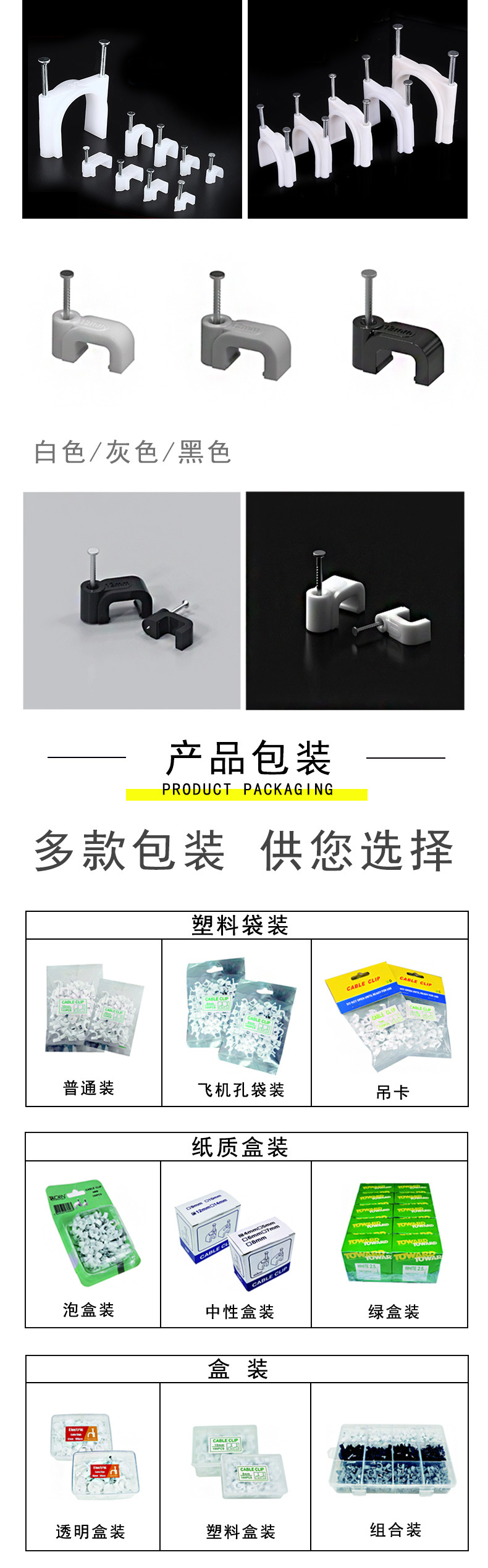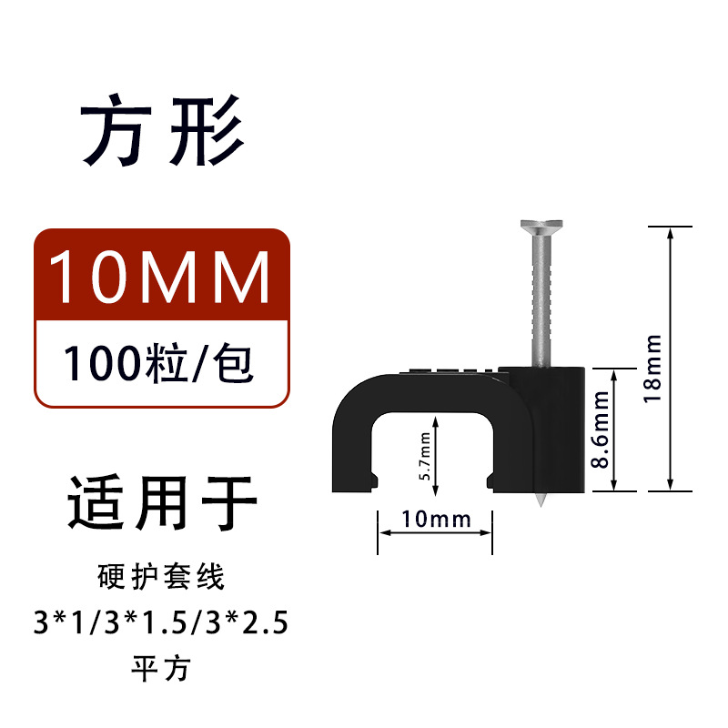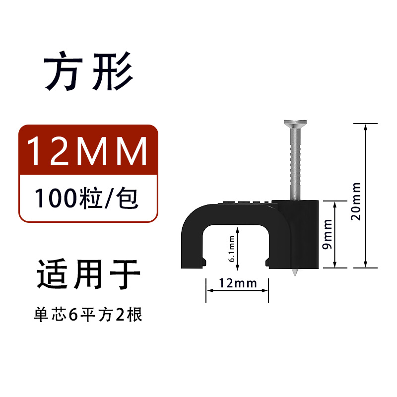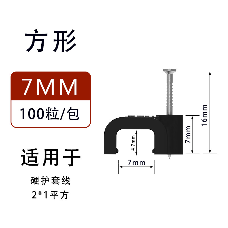 검정색 플라스틱 강철 네일 와이어 클립 제조업체 4-14mm 와이어 홀더 네트워크 케이블 버클 케이블 사각형 와이어 파이프 클립