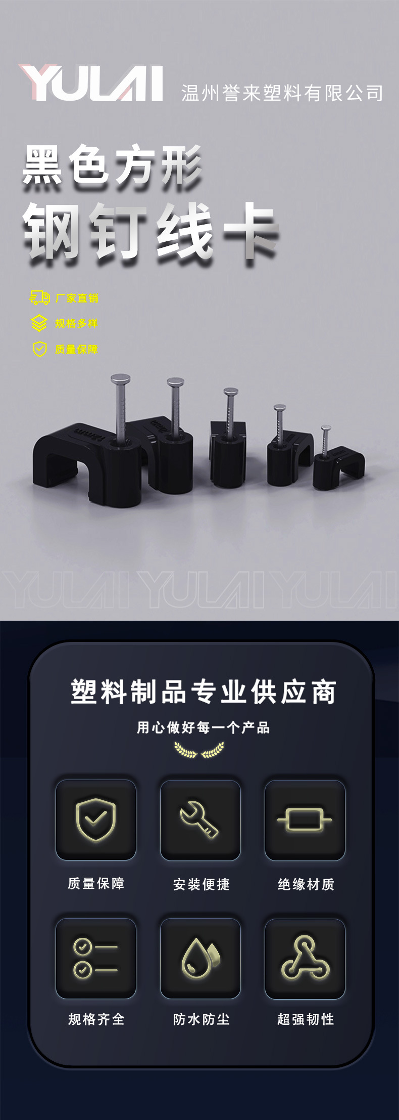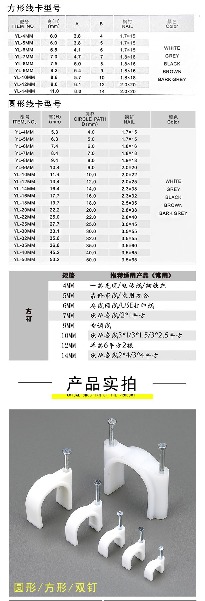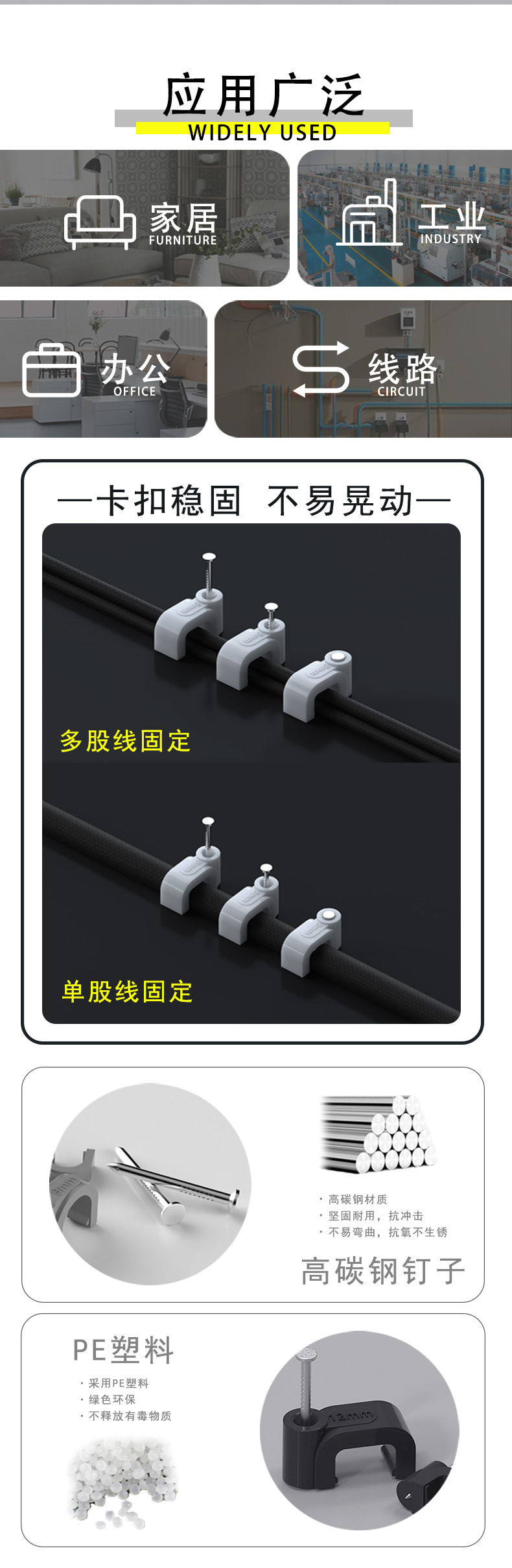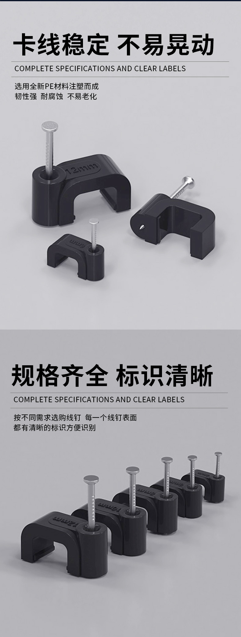 검정색 플라스틱 강철 네일 와이어 클립 제조업체 4-14mm 와이어 홀더 네트워크 케이블 버클 케이블 사각형 와이어 파이프 클립