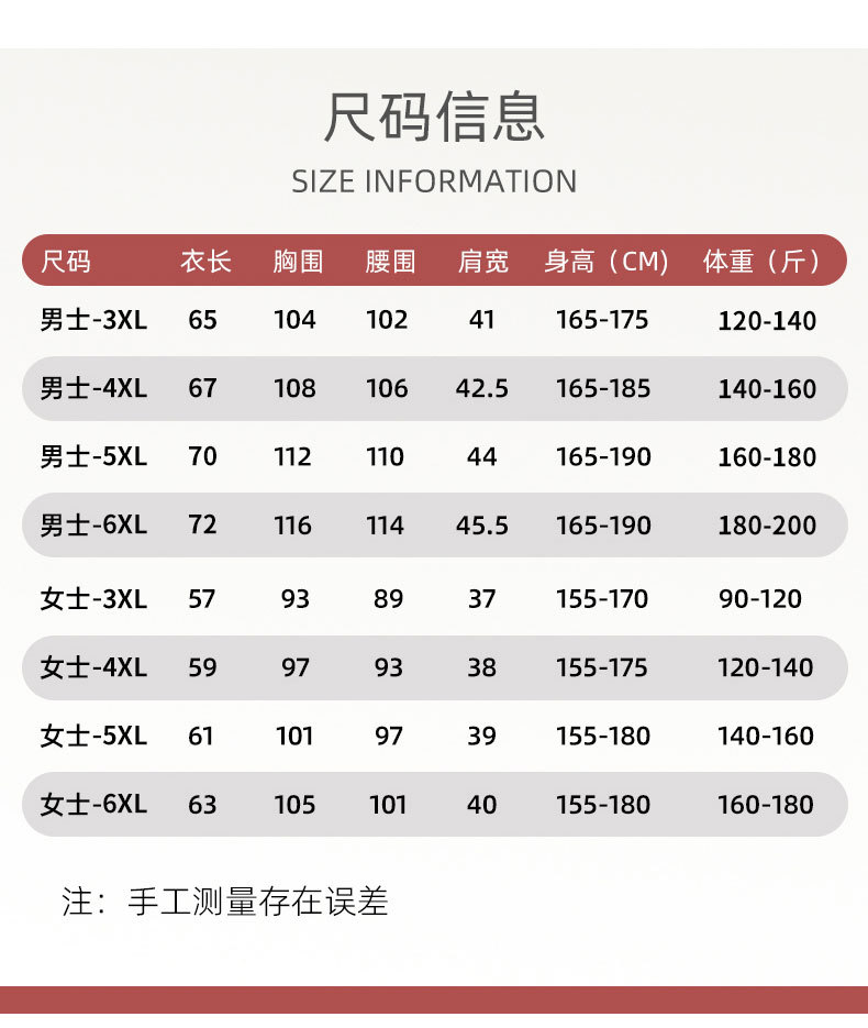 • 6XL(남성 90-100kg 또는 여성 80-90kg )
