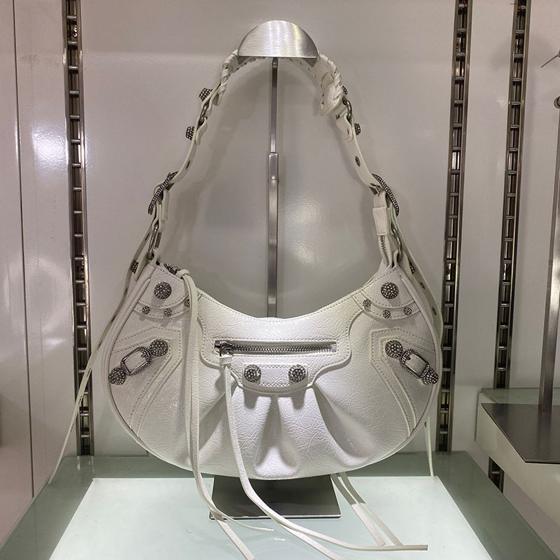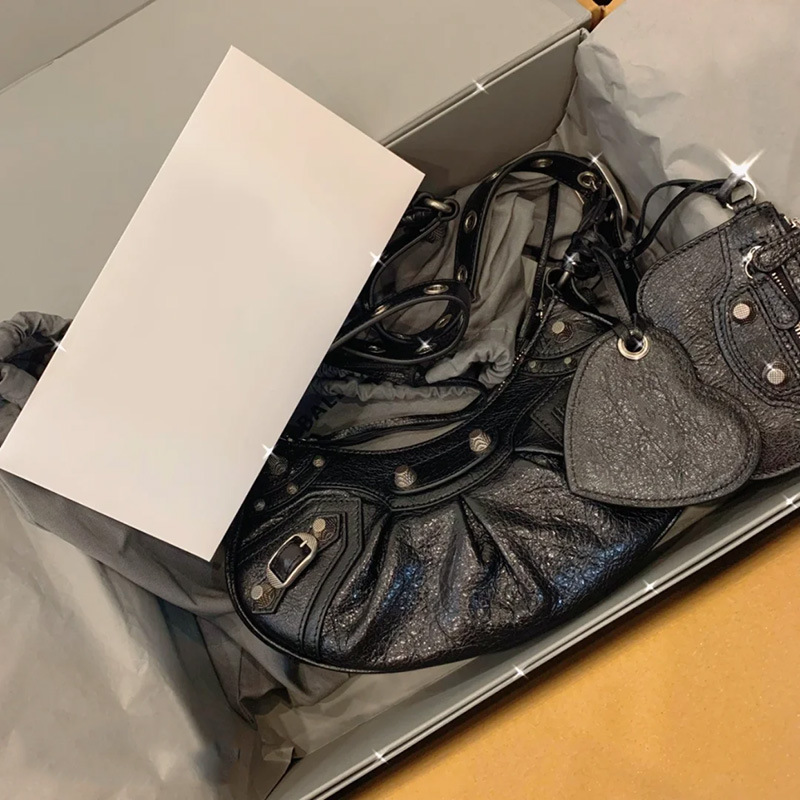24 개의 새로운 미니 오토바이 가방 겨드랑이 가방 리벳 술 3 개월 동안 치아 주름 달린 소 가죽 싱글 숄더 메신저 가방 여성용스토어 가기