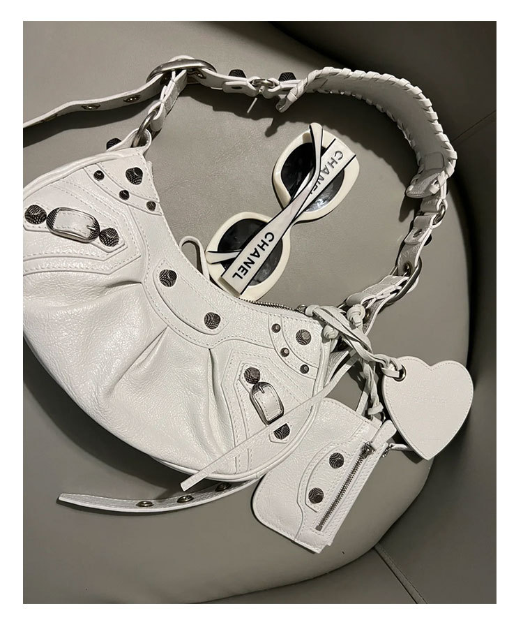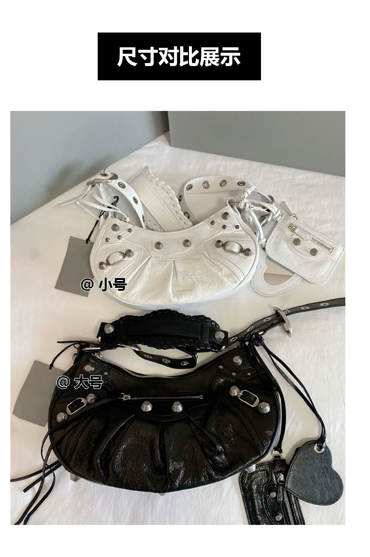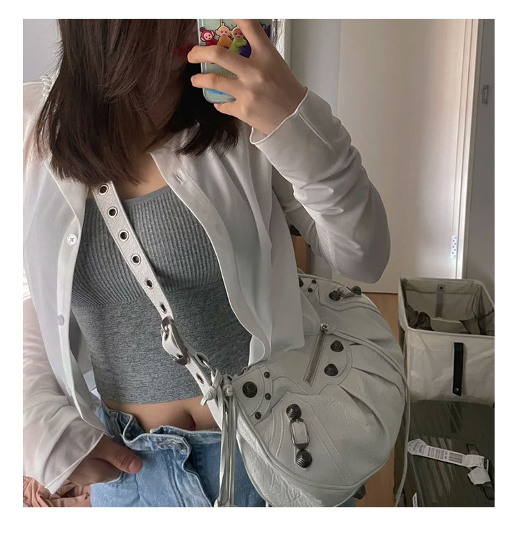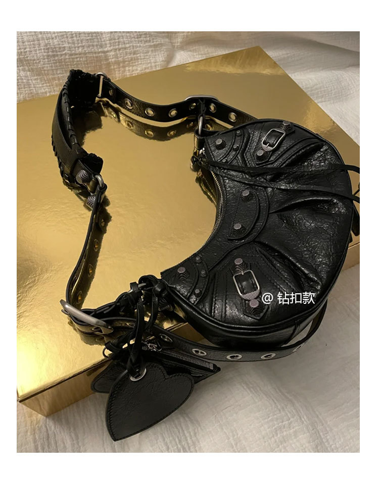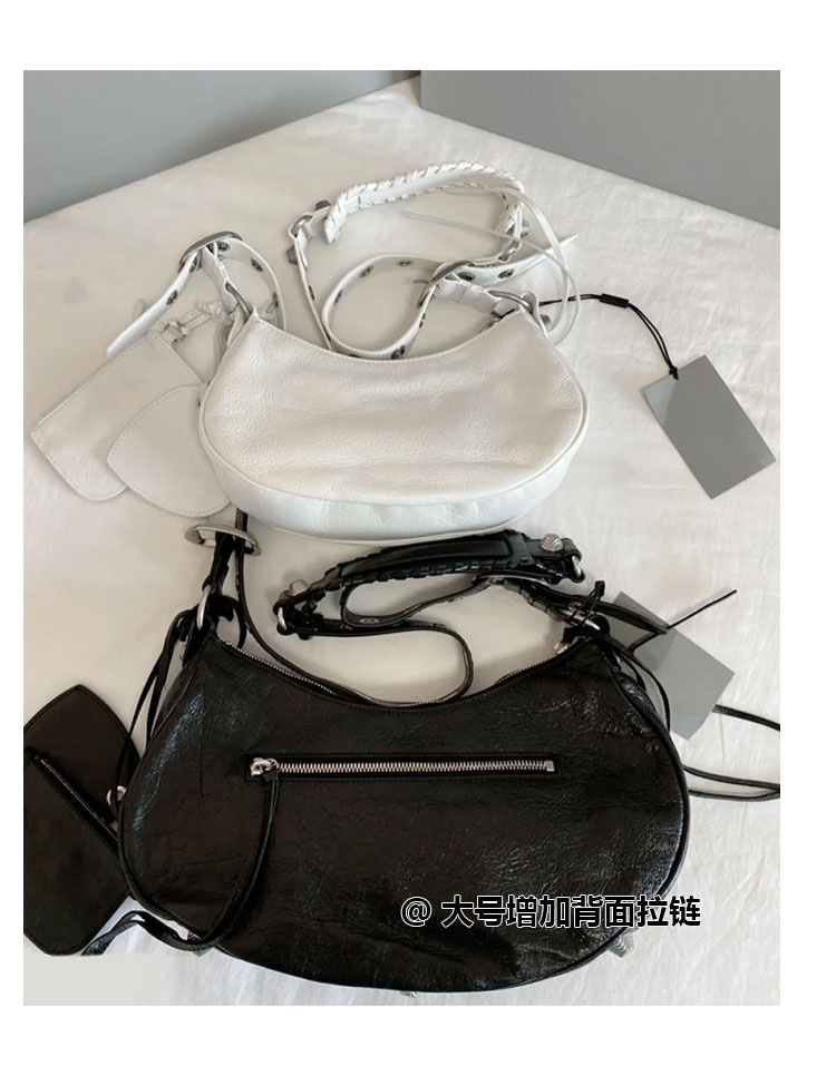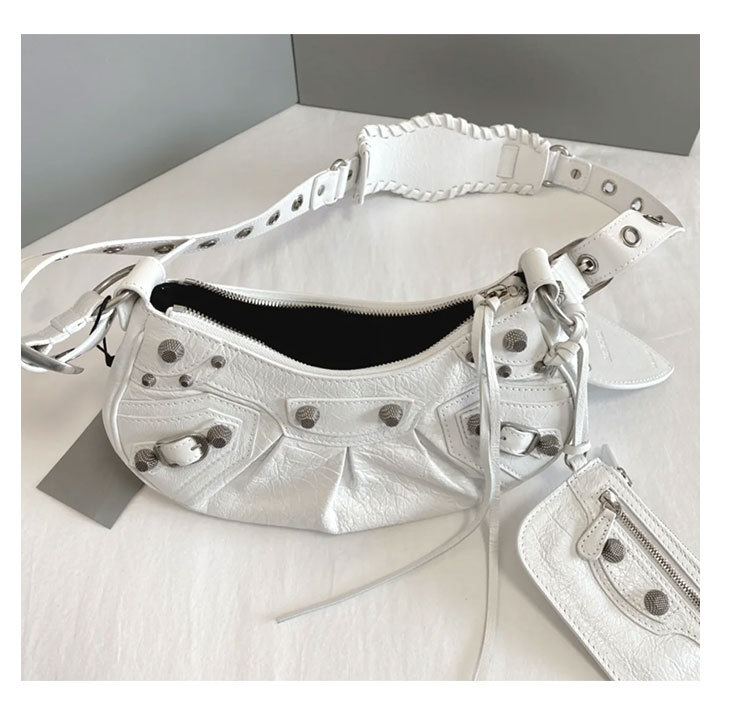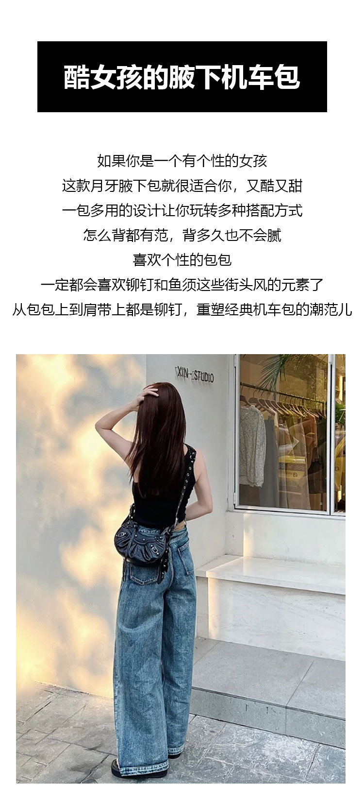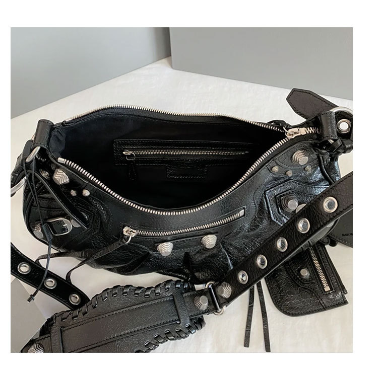 24 개의 새로운 미니 오토바이 가방 겨드랑이 가방 리벳 술 3 개월 동안 치아 주름 달린 소 가죽 싱글 숄더 메신저 가방 여성용