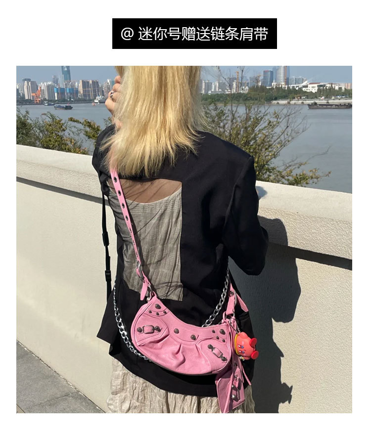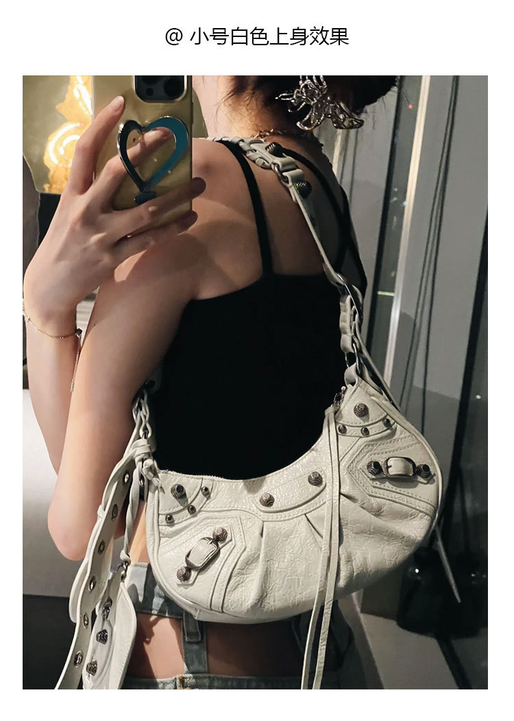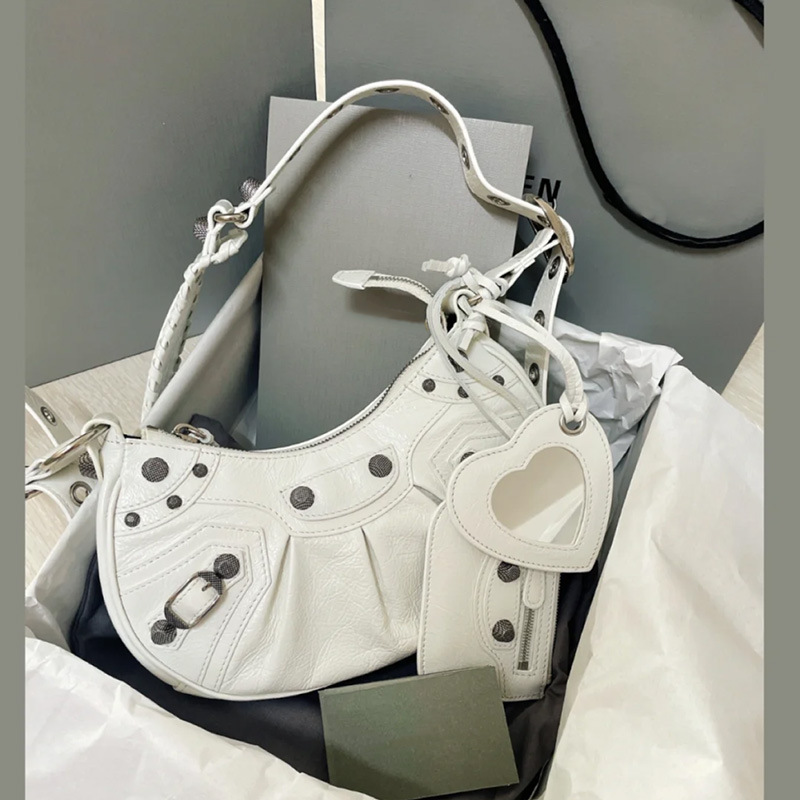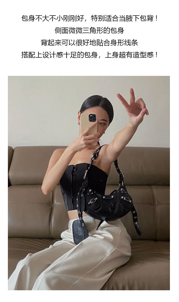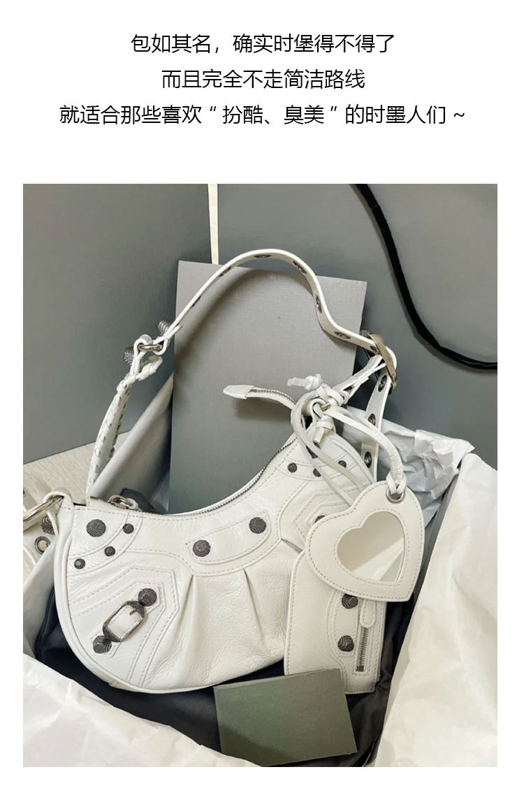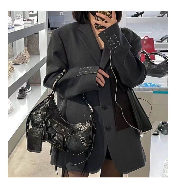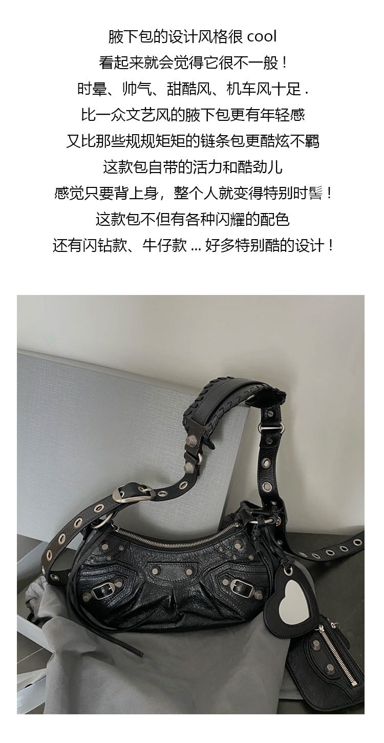 24 개의 새로운 미니 오토바이 가방 겨드랑이 가방 리벳 술 3 개월 동안 치아 주름 달린 소 가죽 싱글 숄더 메신저 가방 여성용