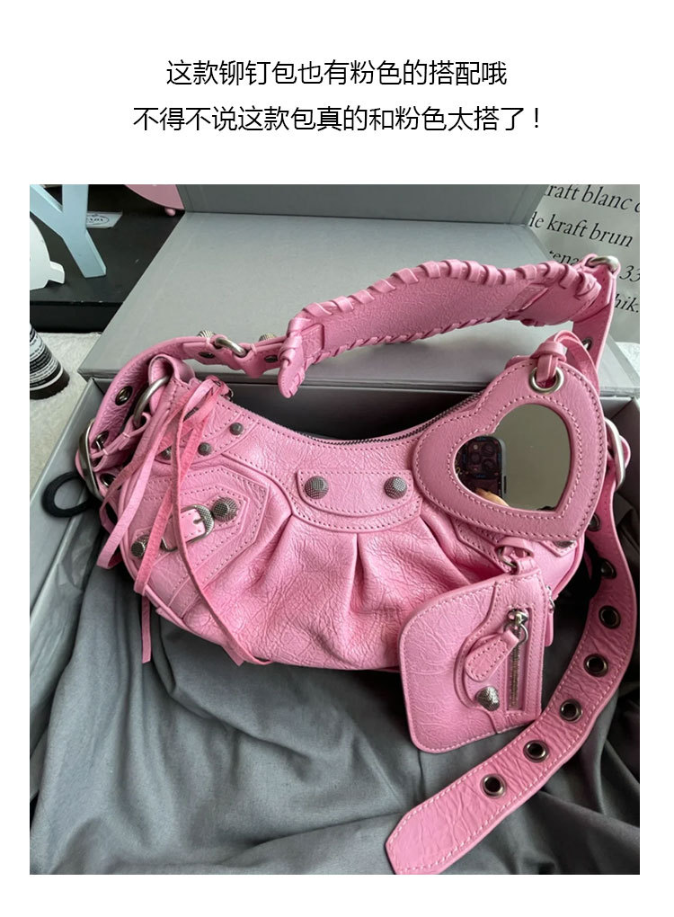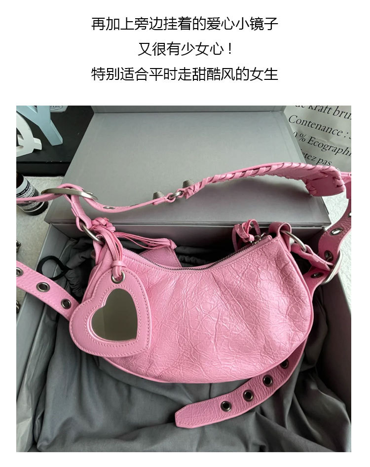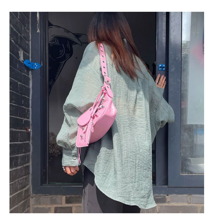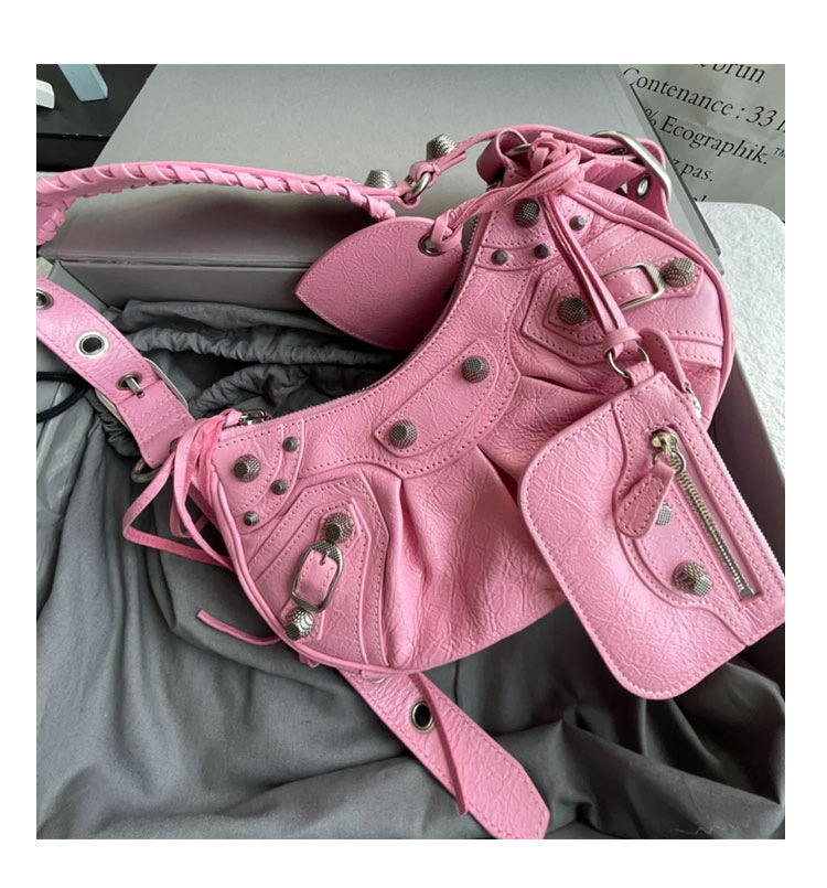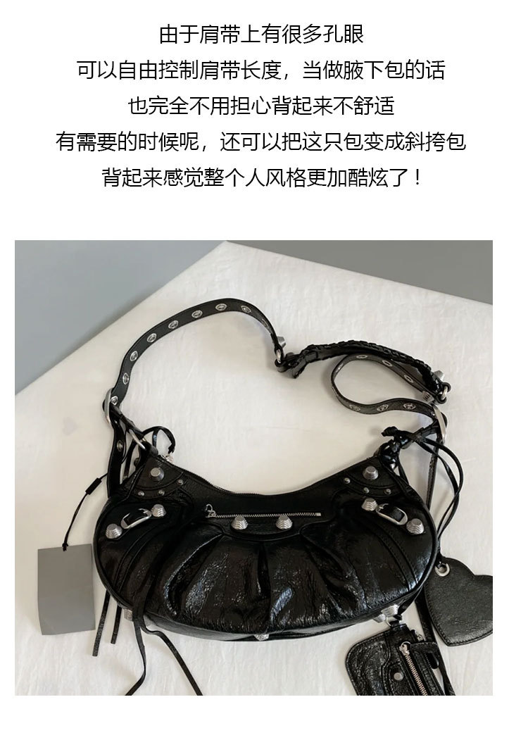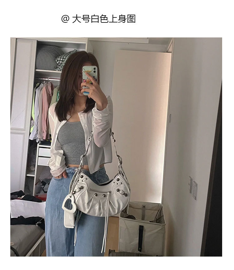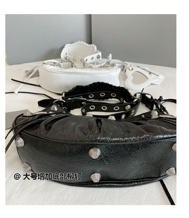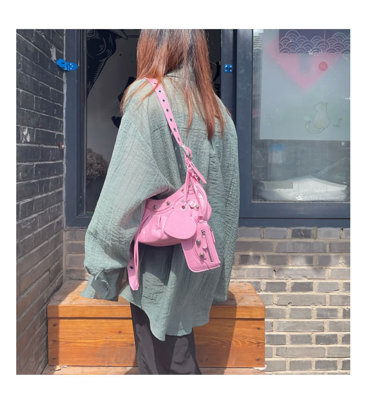 24 개의 새로운 미니 오토바이 가방 겨드랑이 가방 리벳 술 3 개월 동안 치아 주름 달린 소 가죽 싱글 숄더 메신저 가방 여성용