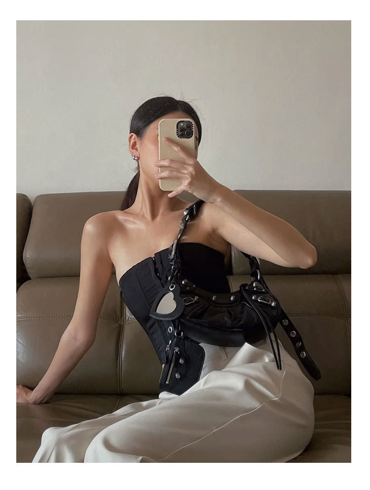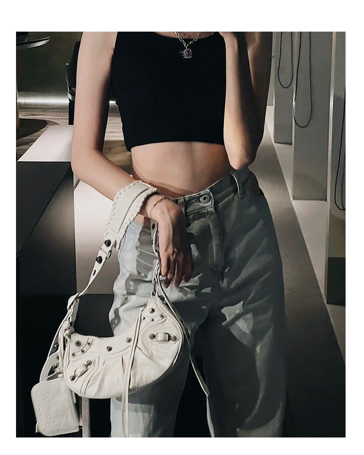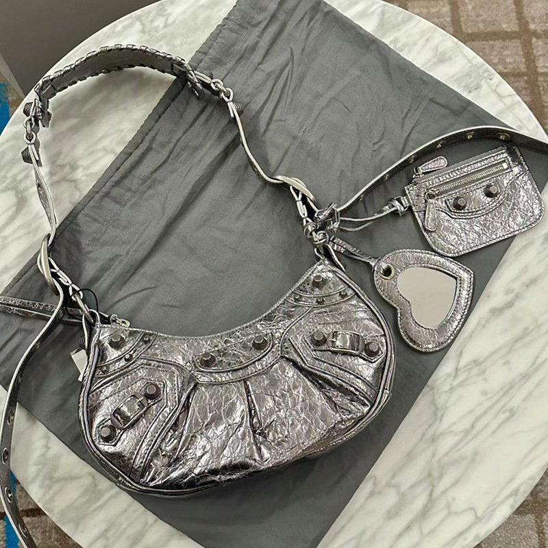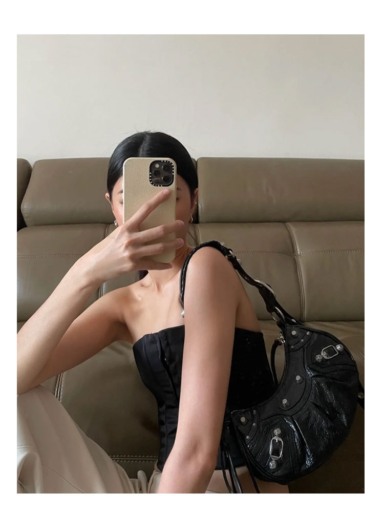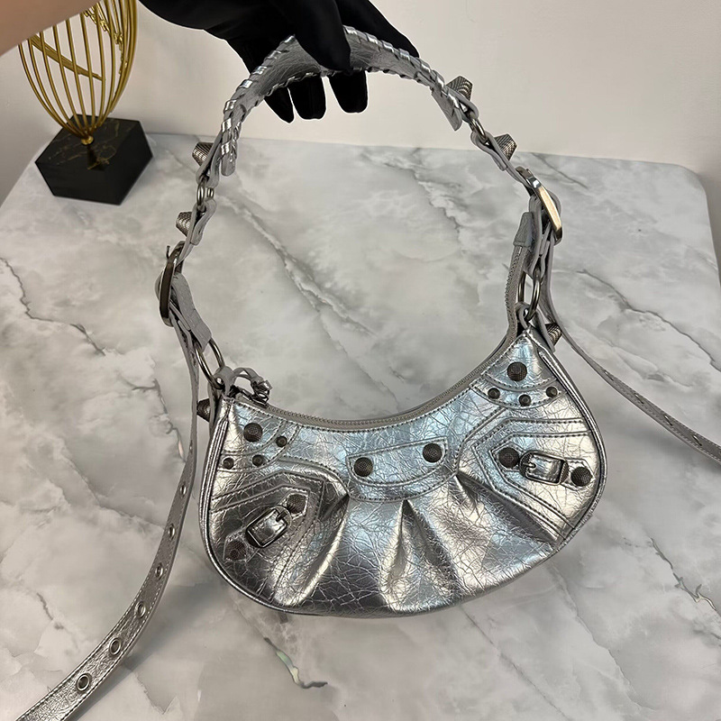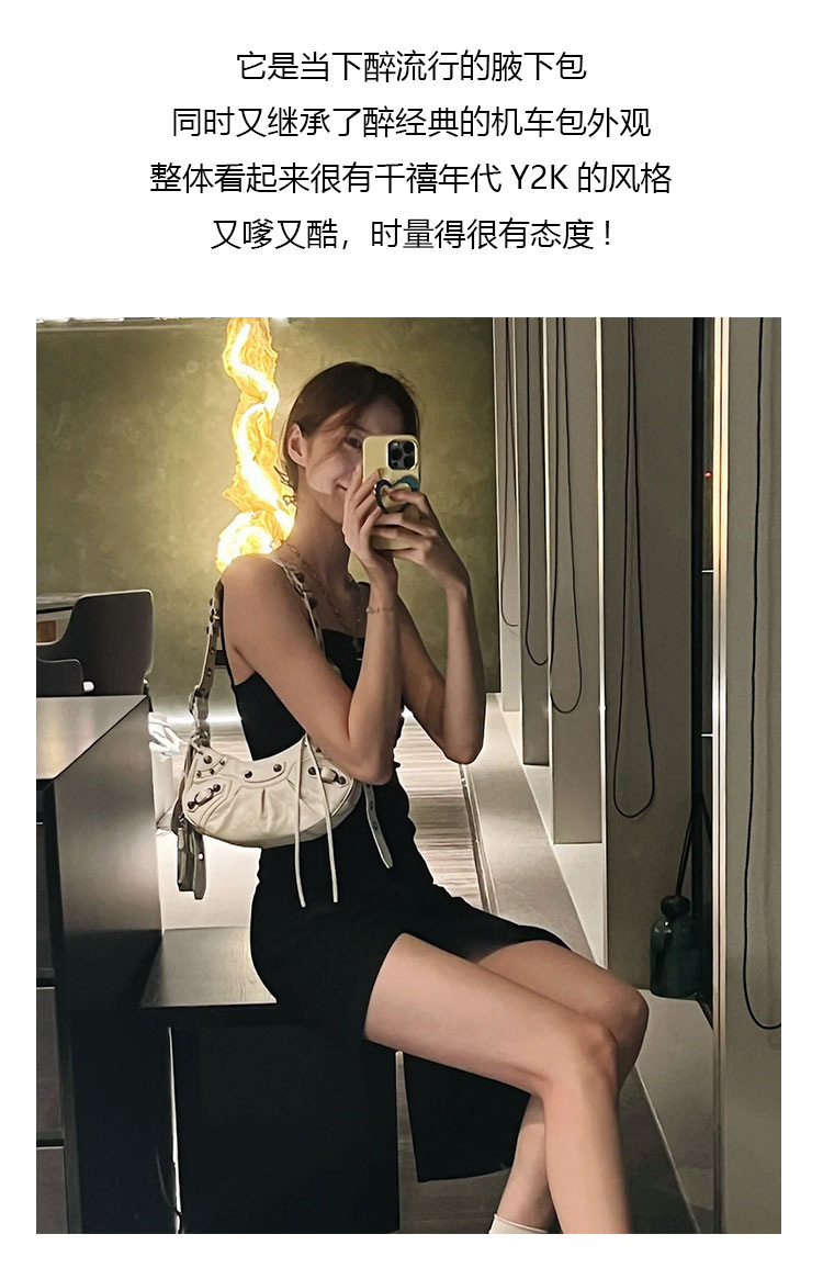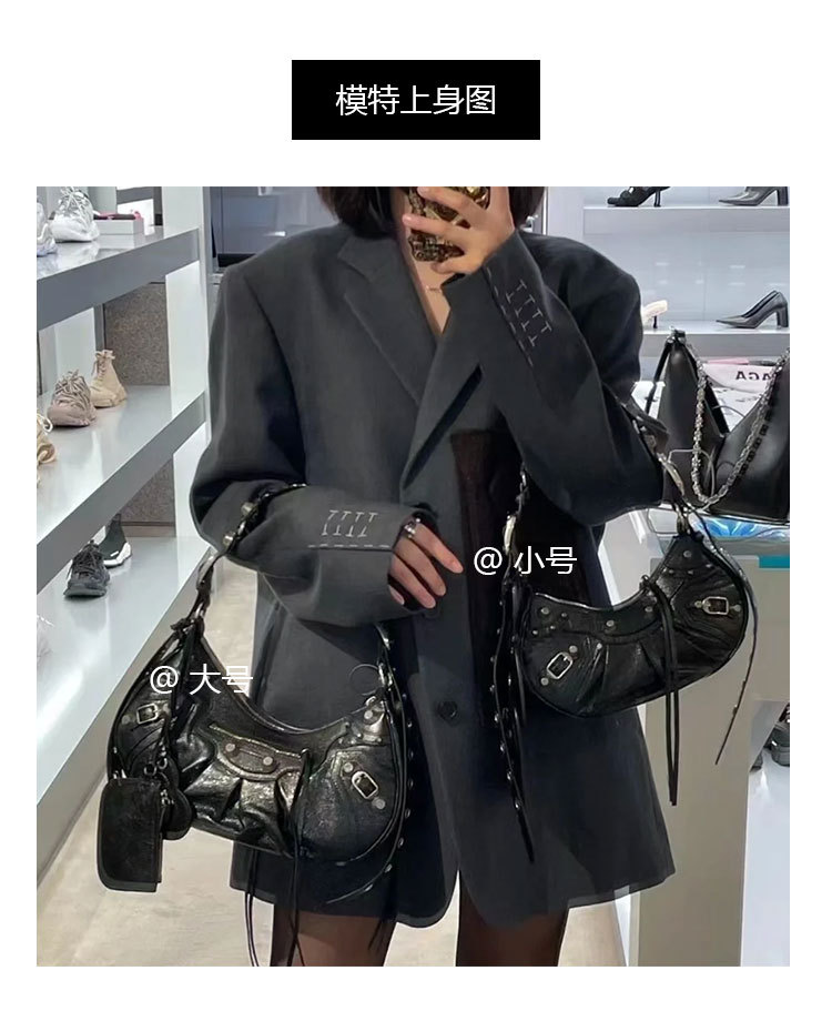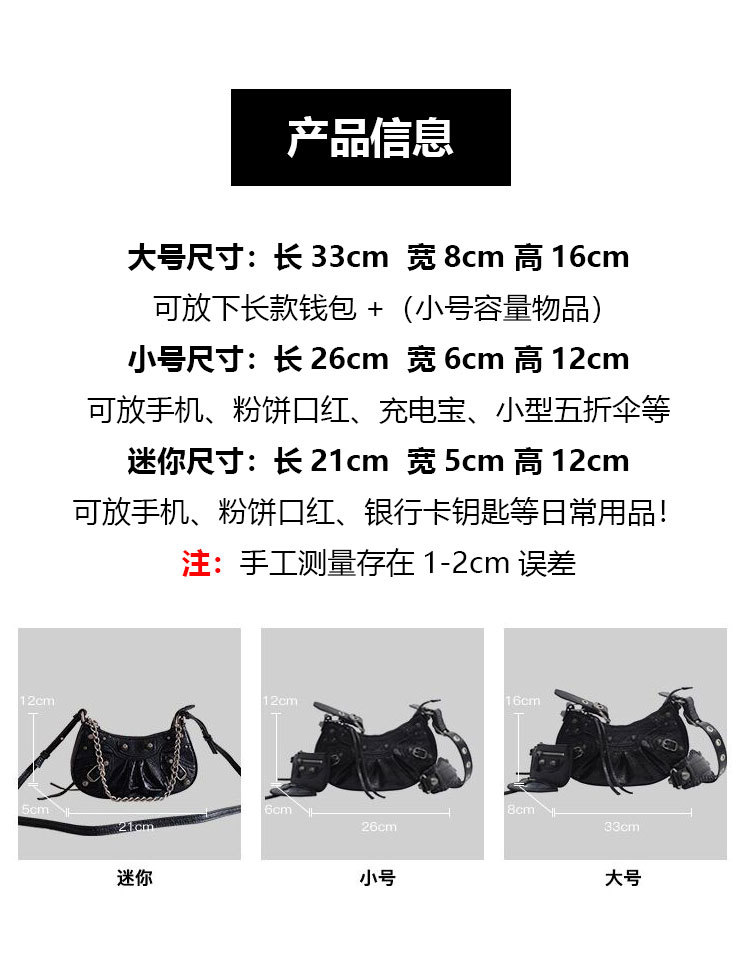 24 개의 새로운 미니 오토바이 가방 겨드랑이 가방 리벳 술 3 개월 동안 치아 주름 달린 소 가죽 싱글 숄더 메신저 가방 여성용