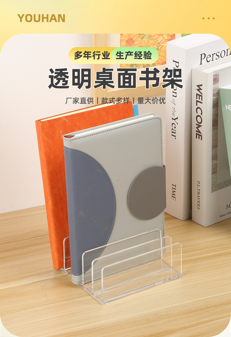 투명한 책 스탠드 아크릴 책 스탠드 데스크탑 책장 책 보관 책상 사무실 용품 디스플레이 랙 도매