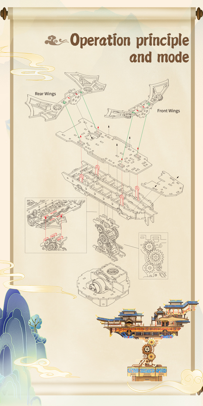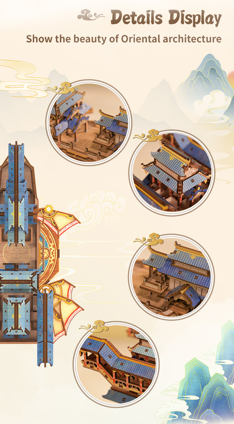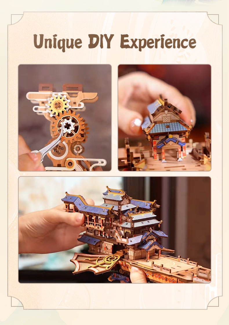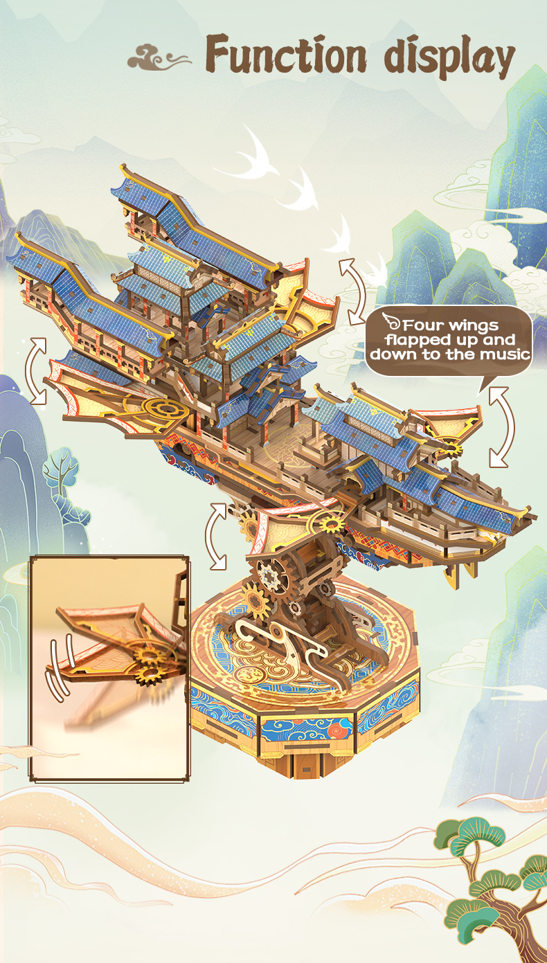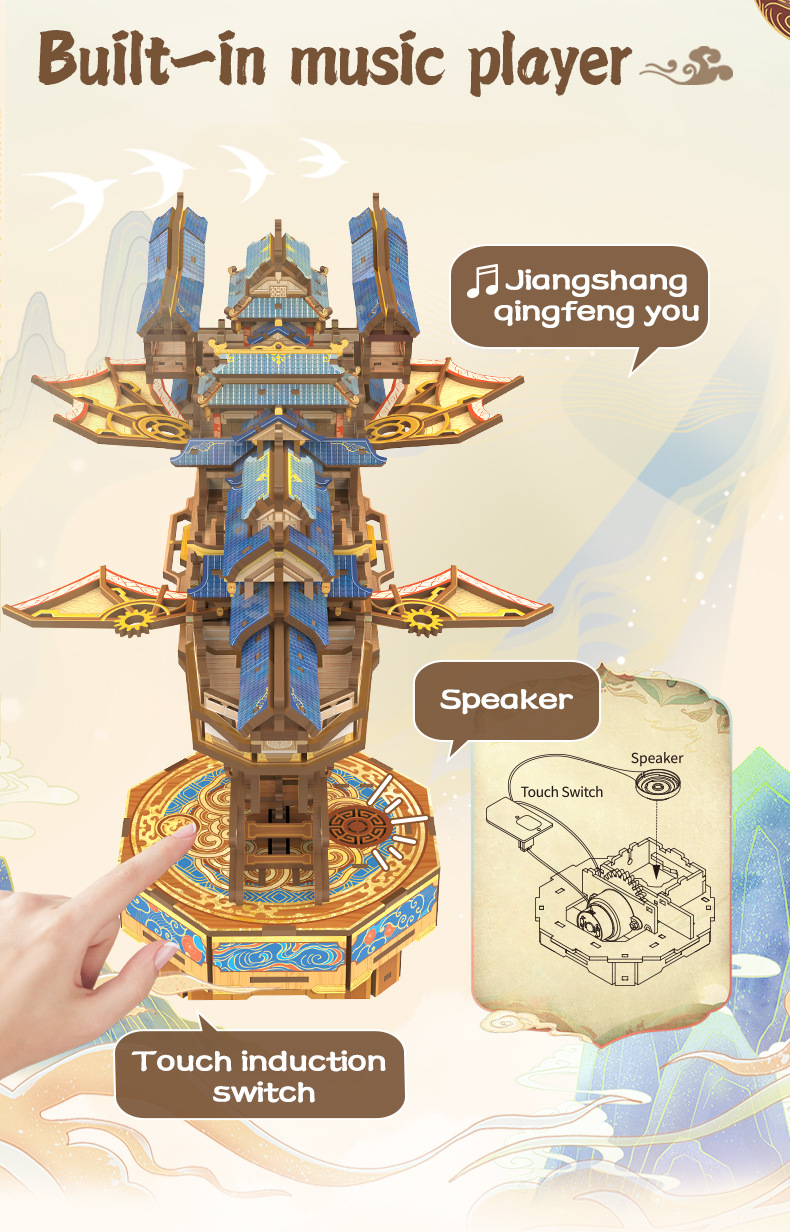 Tongqu Liuyun Feige 영어 버전 빌딩 블록 장난감 수제 조립 골동품 유도 전송 모델 생일 장식품 3d