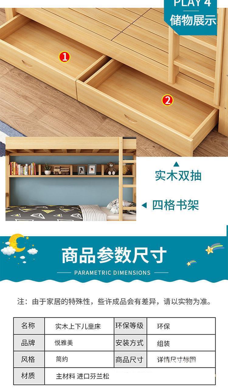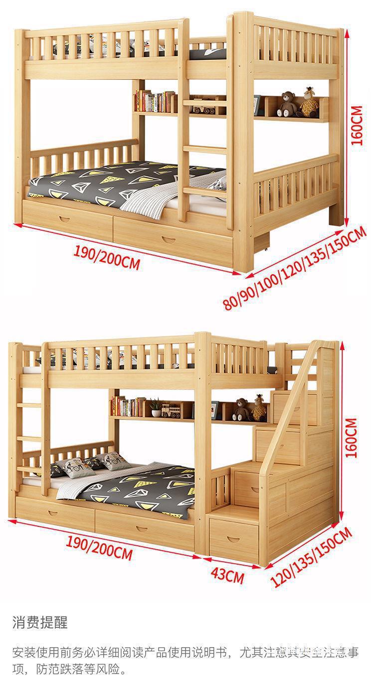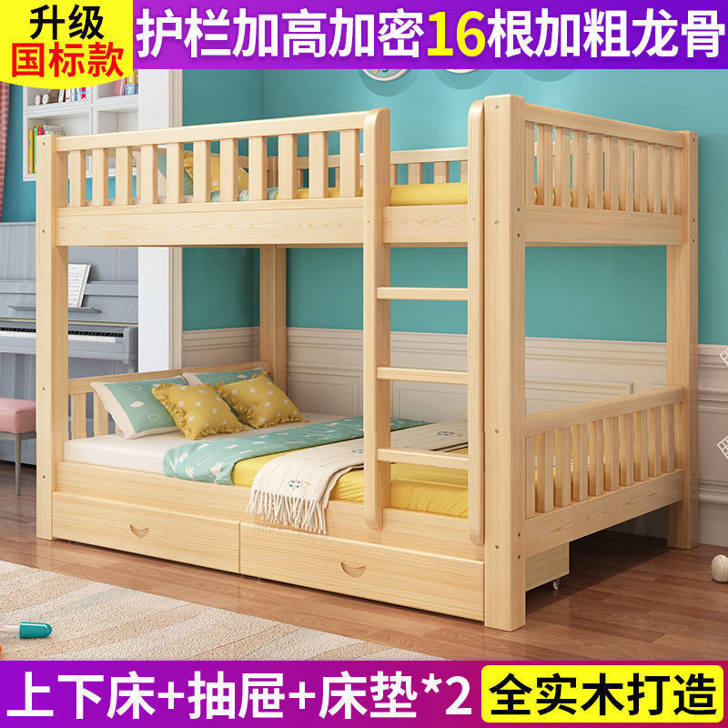 • 소나무 이층침대 + 더블서랍 + 매트리스 2개, 국가표준 모델