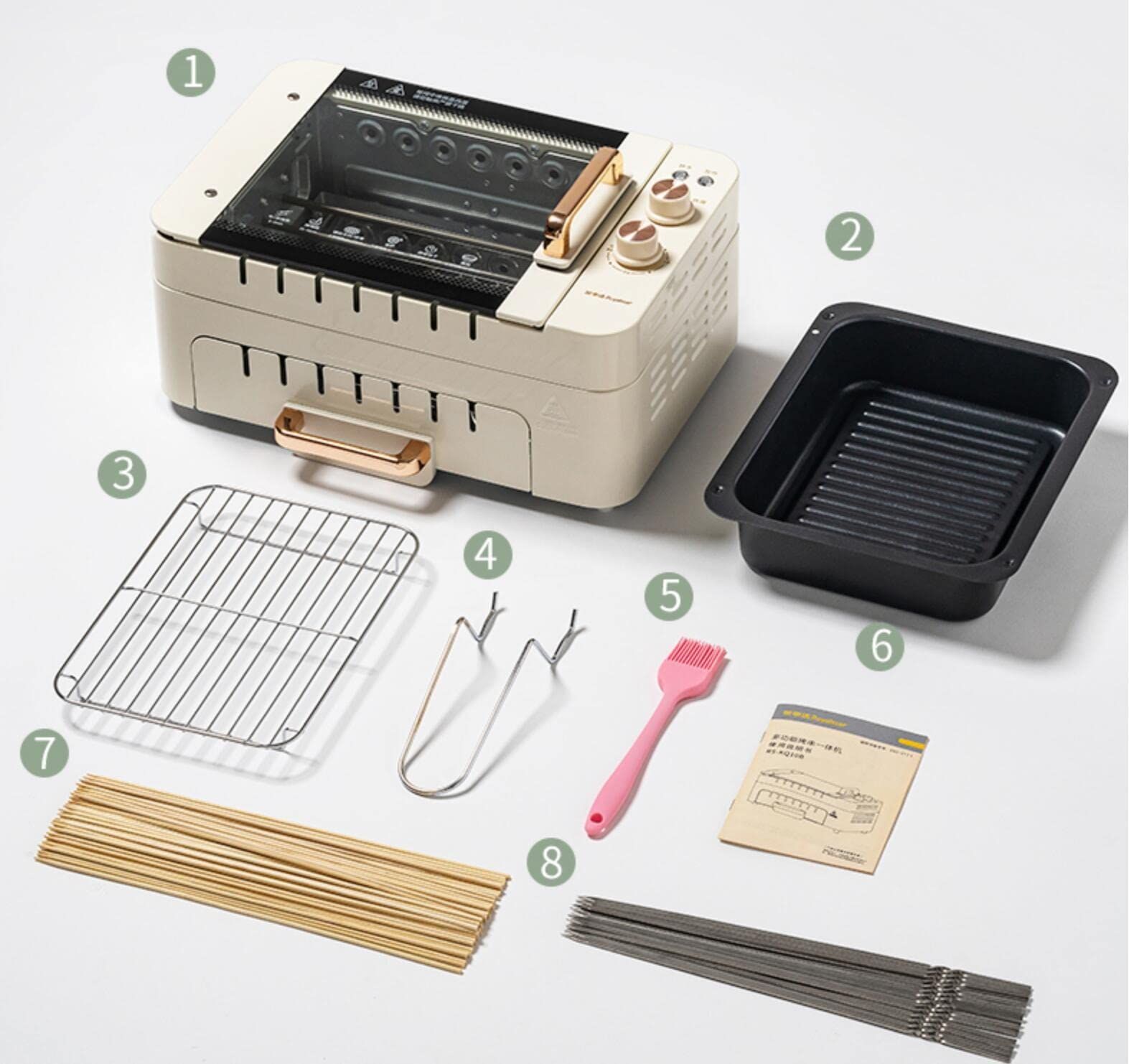3-in-1 전기 바베큐 꼬치구이기계, 가정용 자동 회전 꼬치구이기계, 실내 무연 바베큐 그릴, 대외 무역 수출용스토어 가기