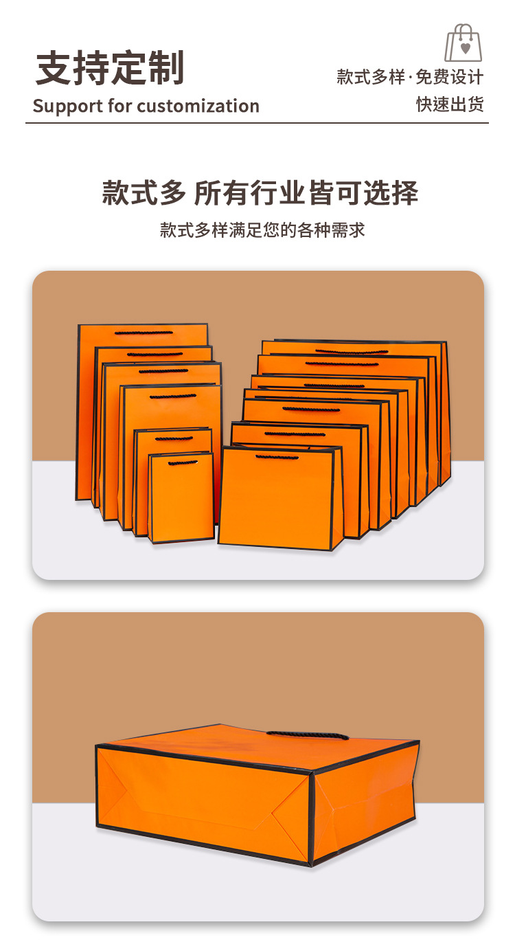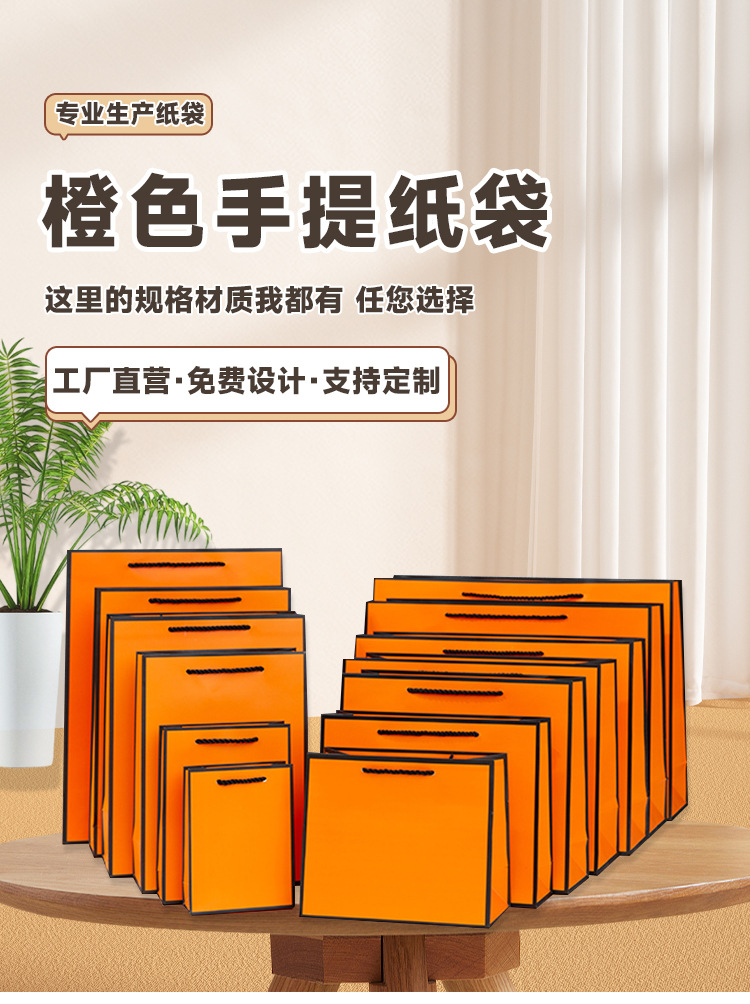 오렌지색 생일 선물 핸드백 기념품 선물 가방 선물 상자 의류 쇼핑 포장 가방 재고 도매스토어 가기