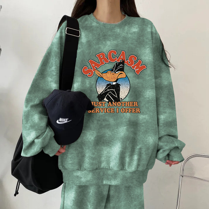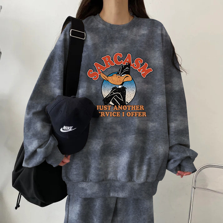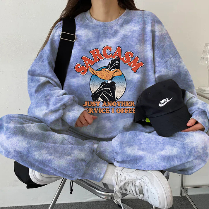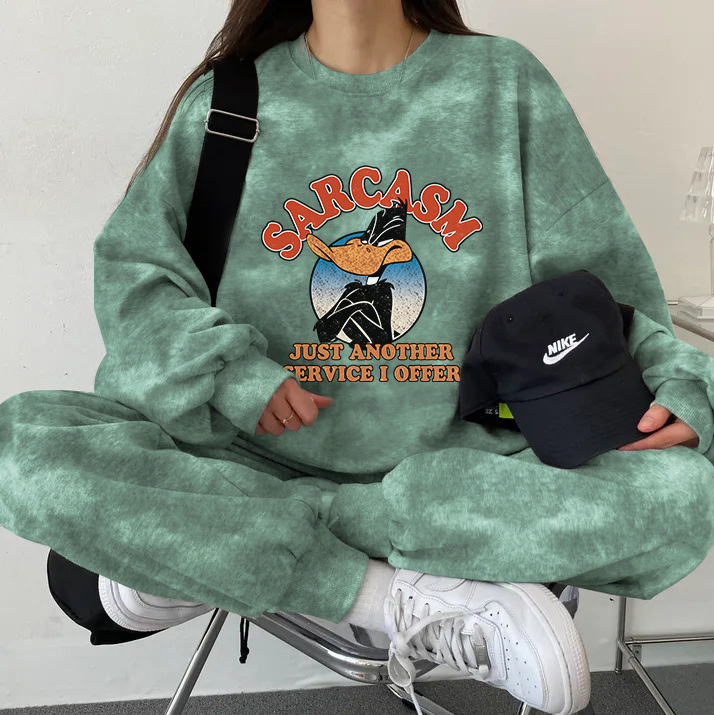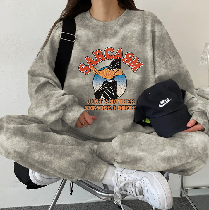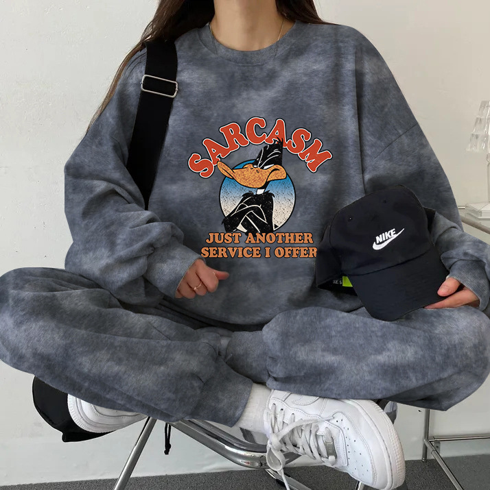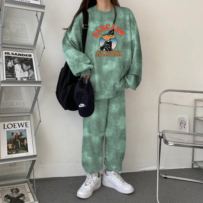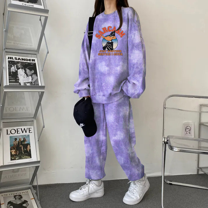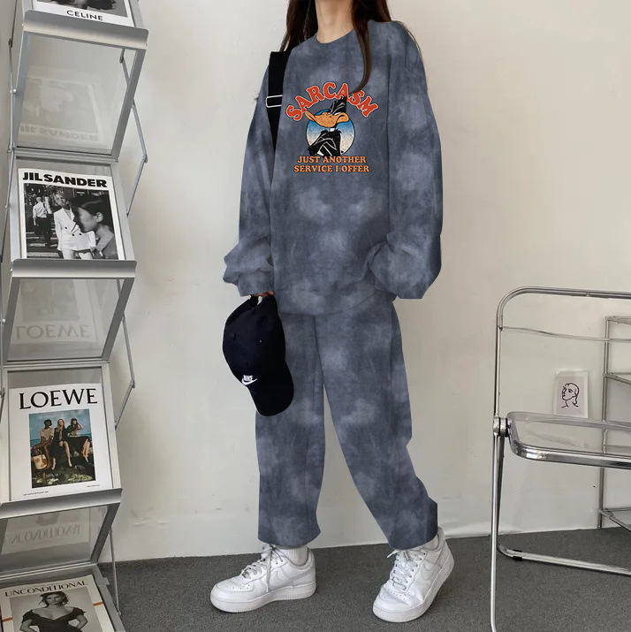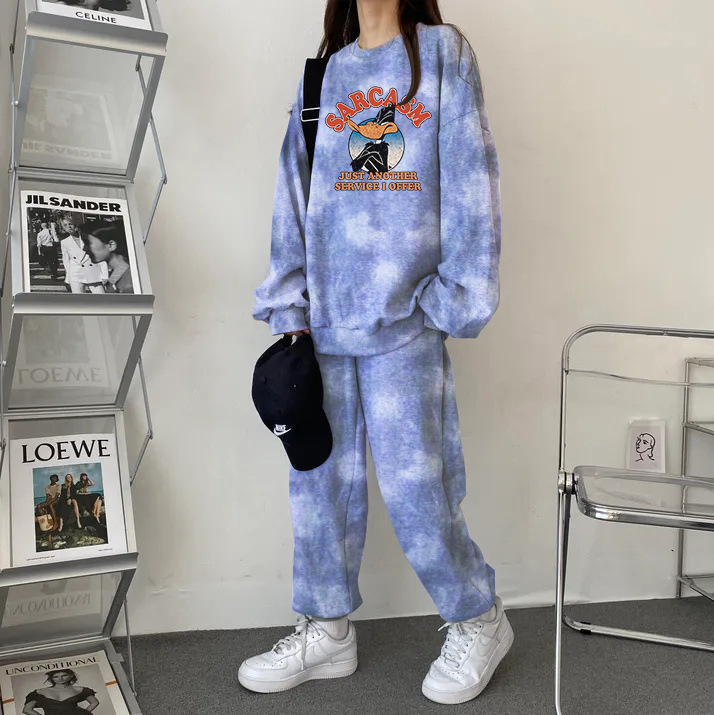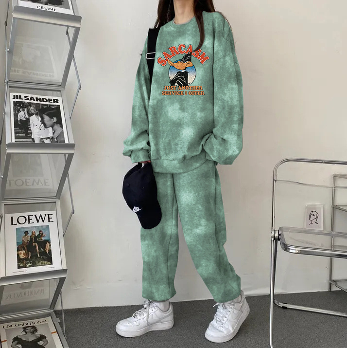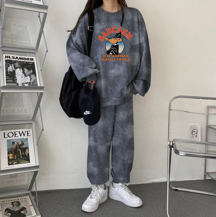 튀긴 거리 하이 엔드 캐주얼 스포츠 슬리밍 크루 넥 스웨트 셔츠 세트 여성의 가을과 겨울 기모 패션 얇은 투피스 세트스토어 가기