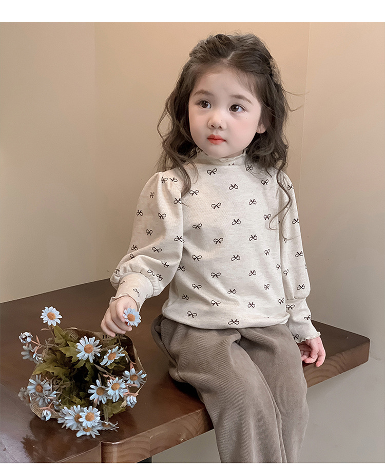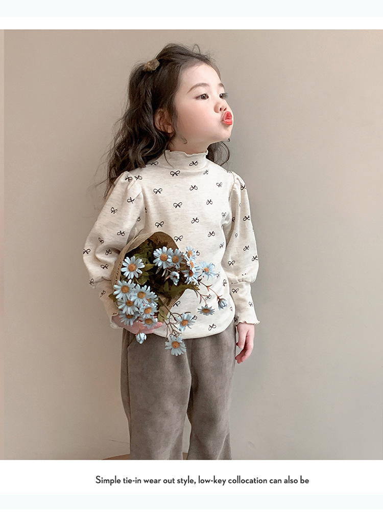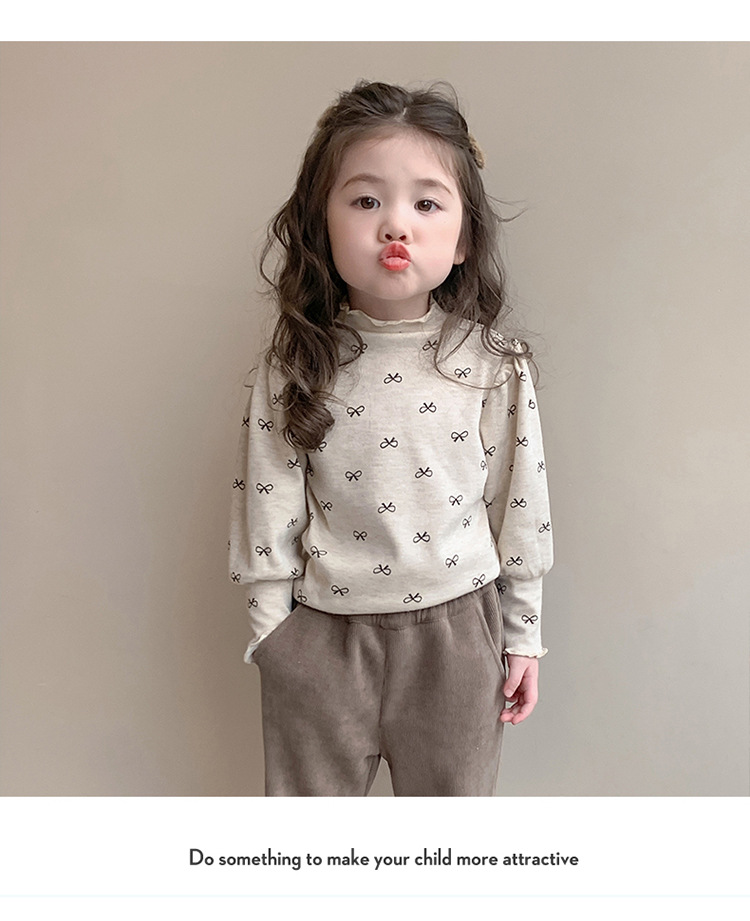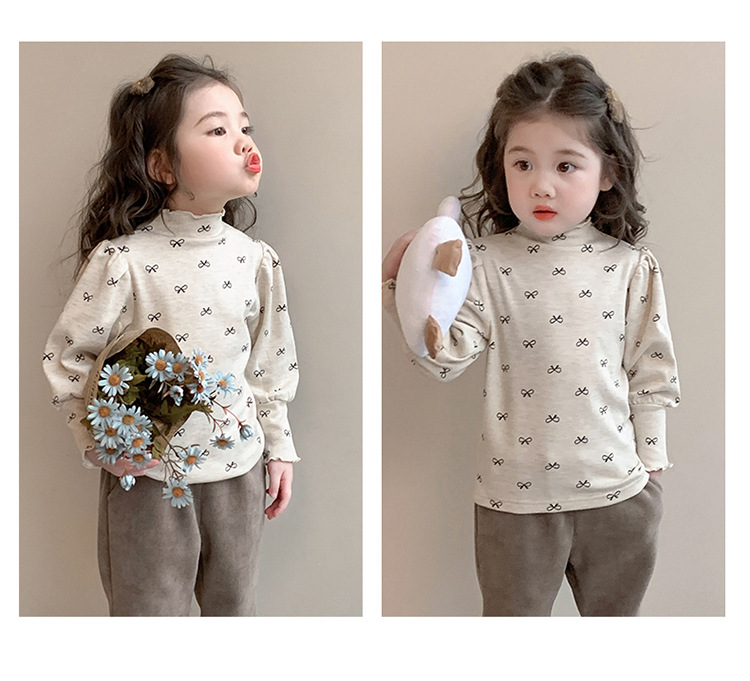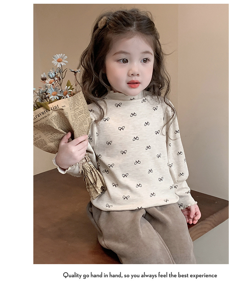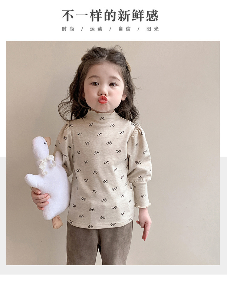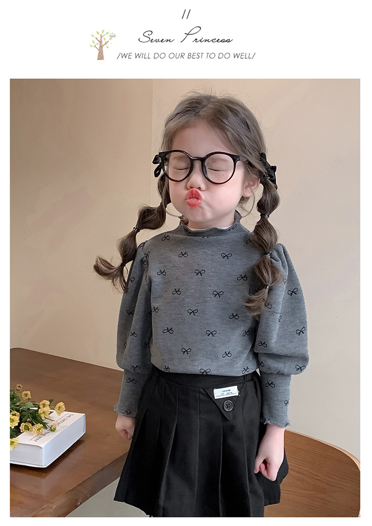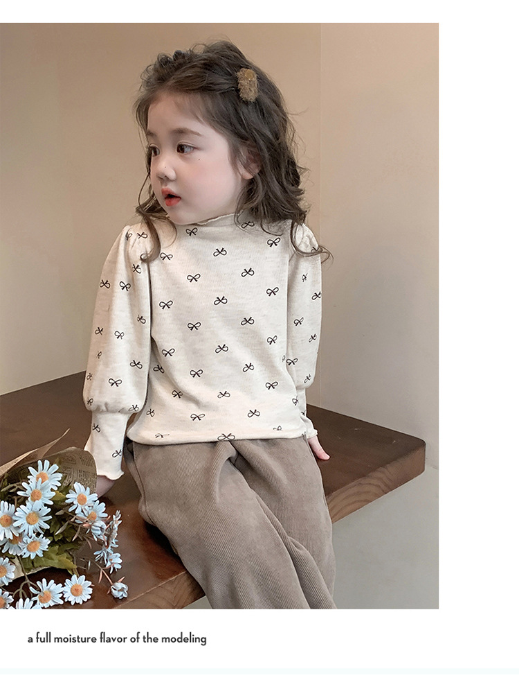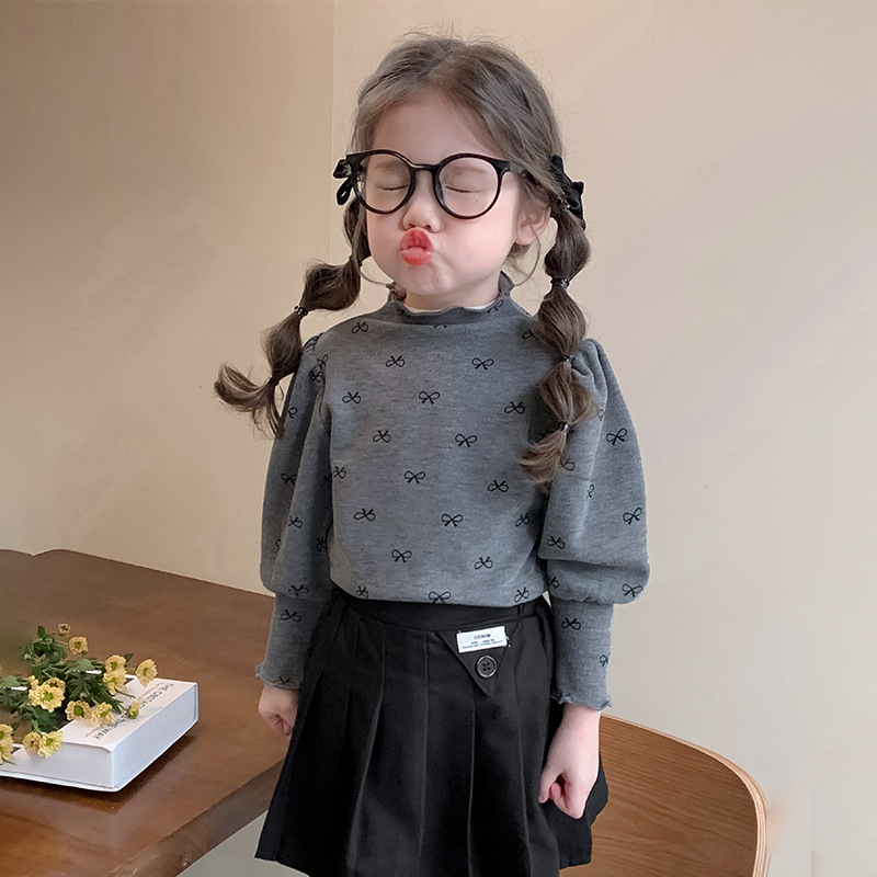 만화 캐릭터 어린이 리본 얇은 벨벳 이너웨어 2025 겨울 가을 신상 여아용 패셔너블한 베이스 셔츠 아동복 도매스토어 가기