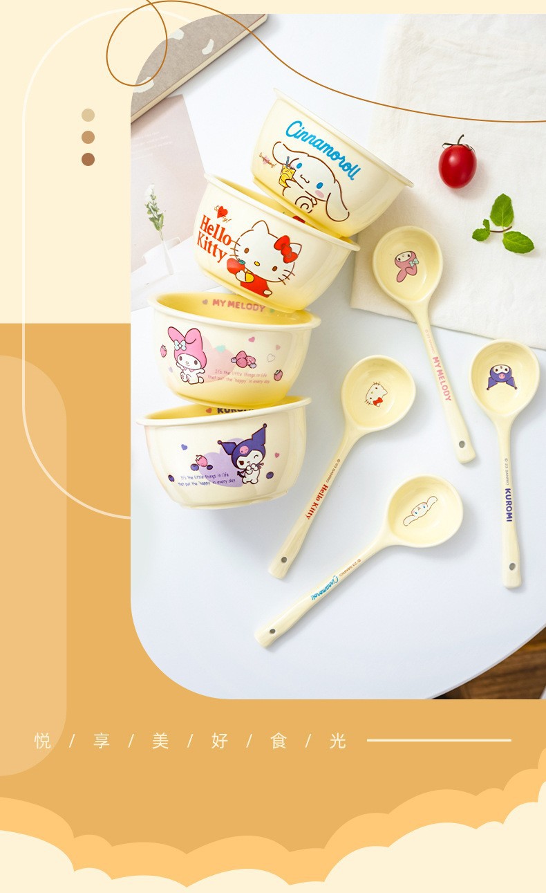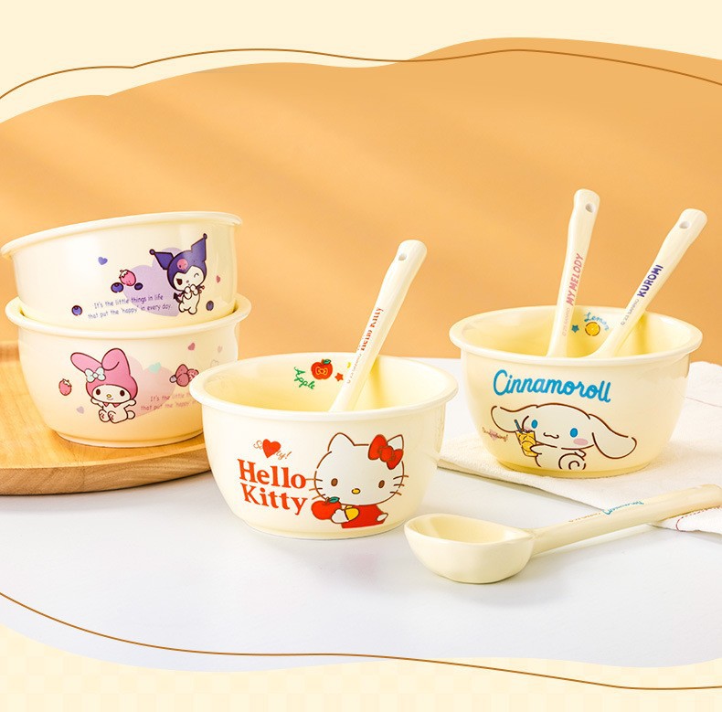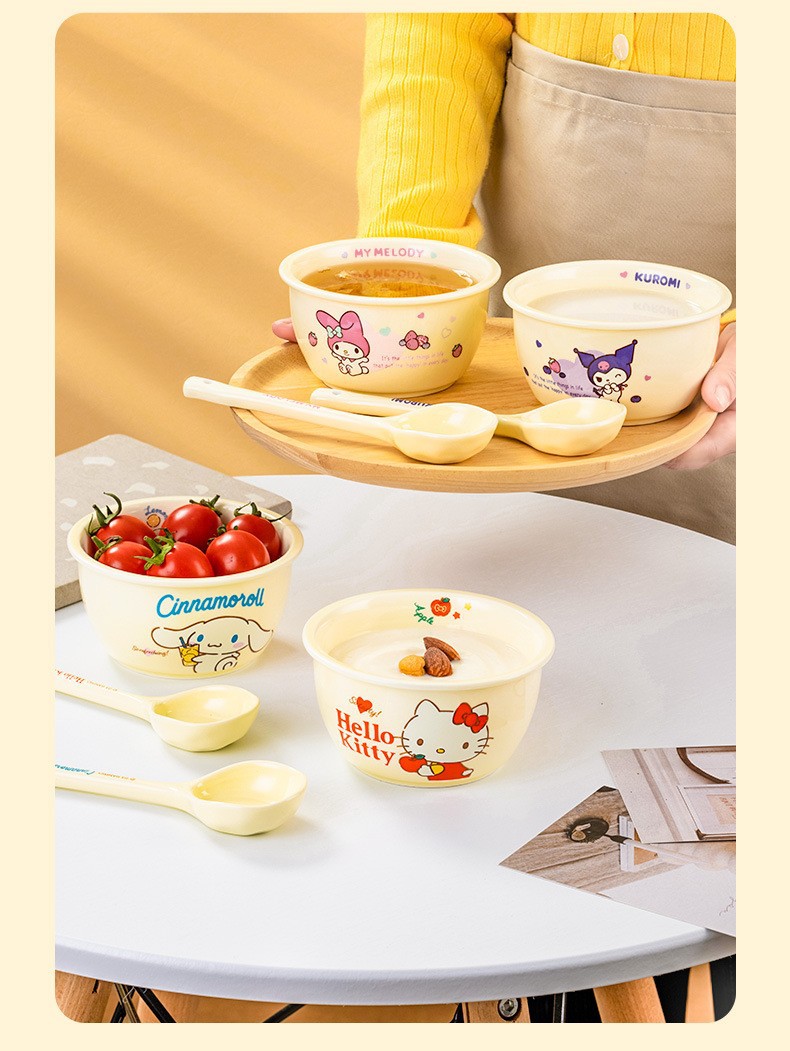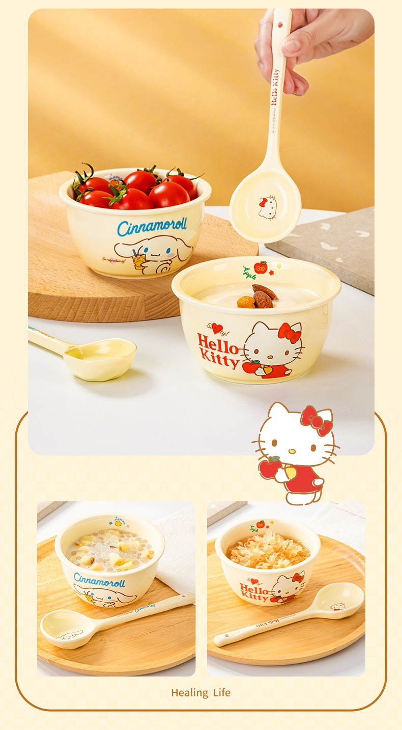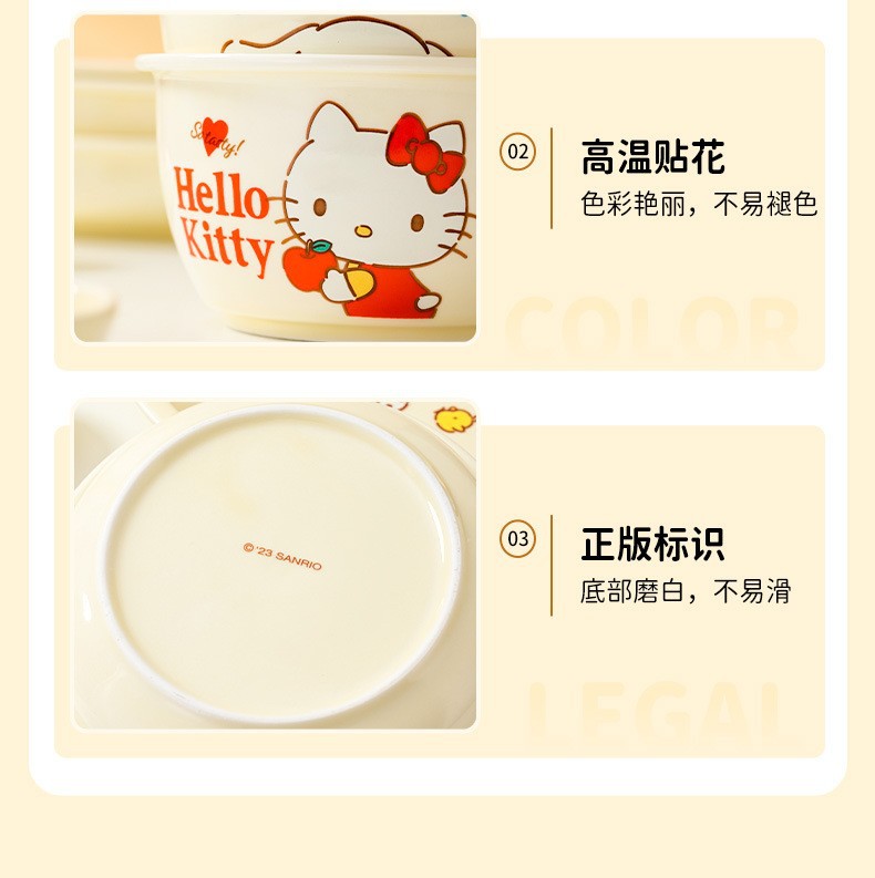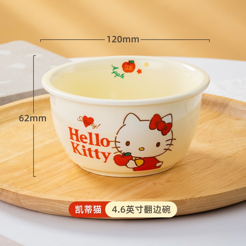 헬로 키티 세라믹 그릇 크림 스타일 높은 아름다움 가치 개인화 된 식사 그릇 가정 세트 귀여운 어린이 식기