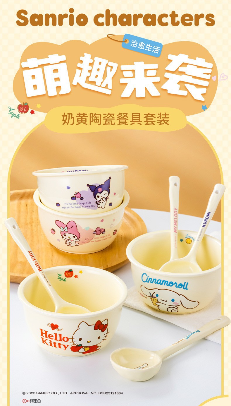 헬로 키티 세라믹 그릇 크림 스타일 높은 아름다움 가치 개인화 된 식사 그릇 가정 세트 귀여운 어린이 식기스토어 가기