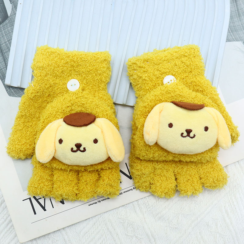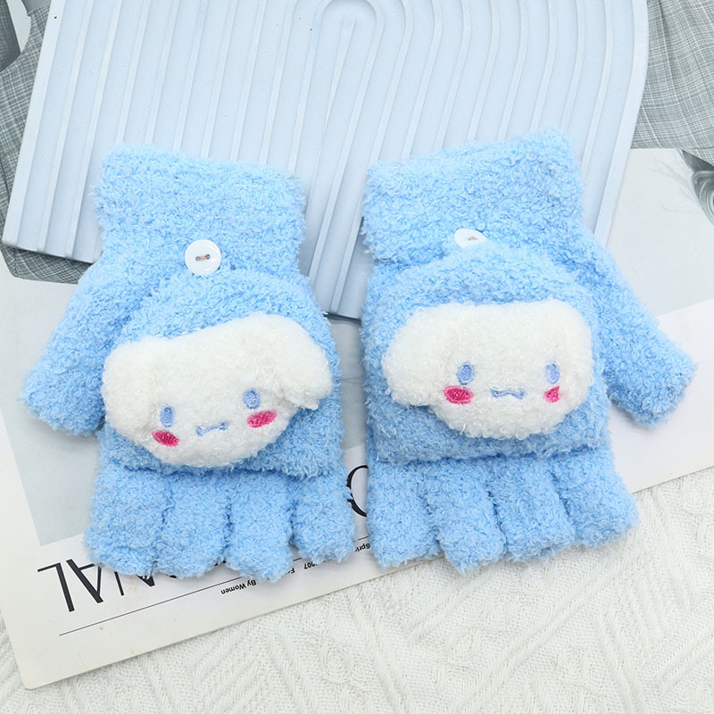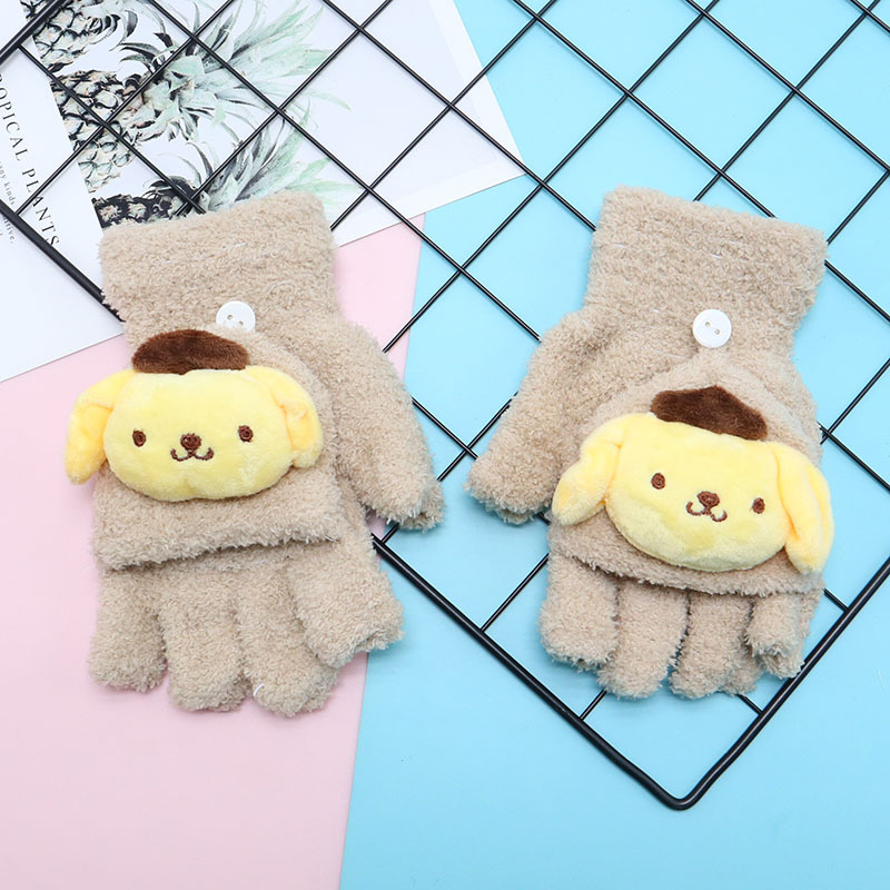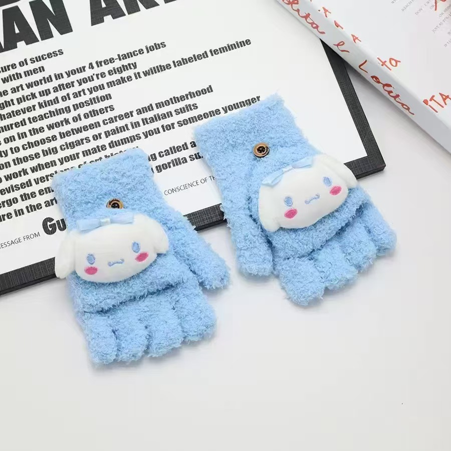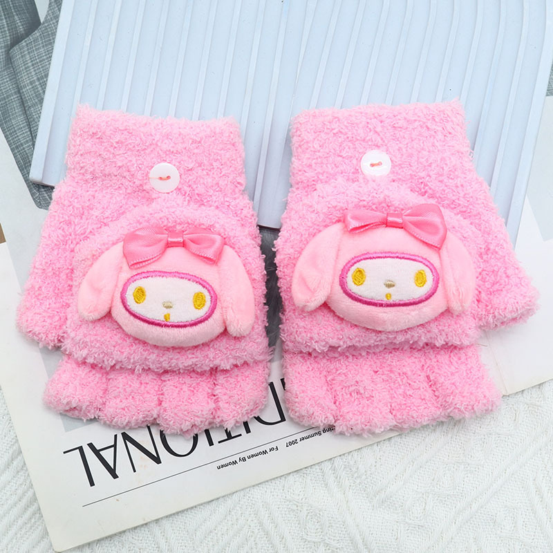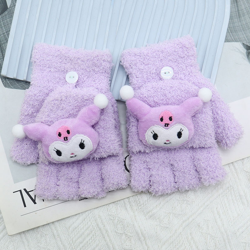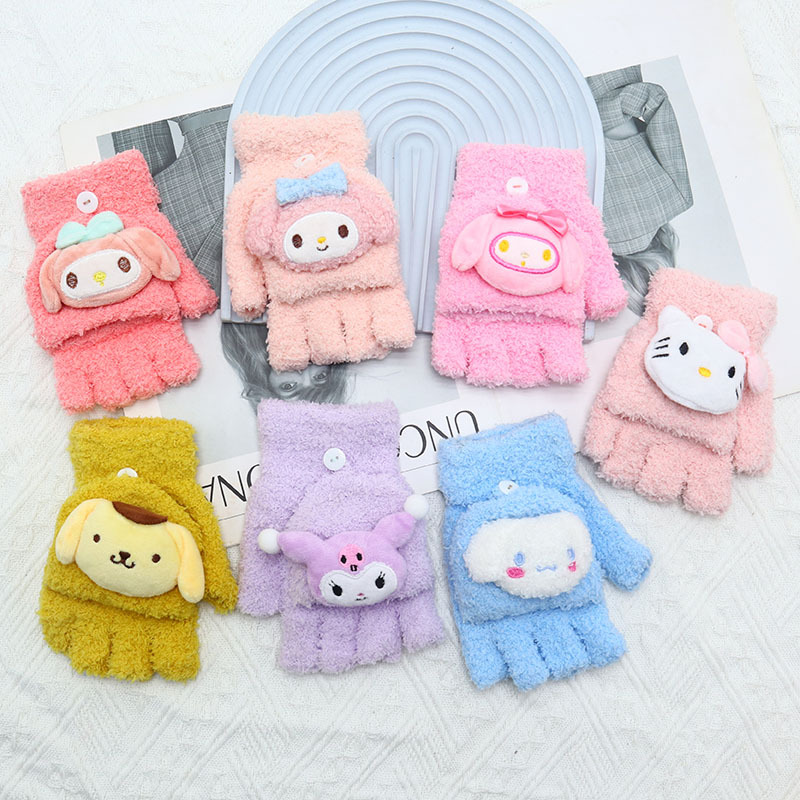 Kulomi 어린이 플립 장갑 겨울 반 손가락 소녀 산리오 남학생과 여학생을위한 따뜻한 글쓰기 가을 겨울 반 손가락