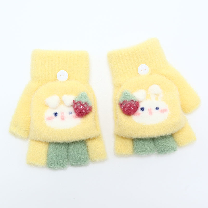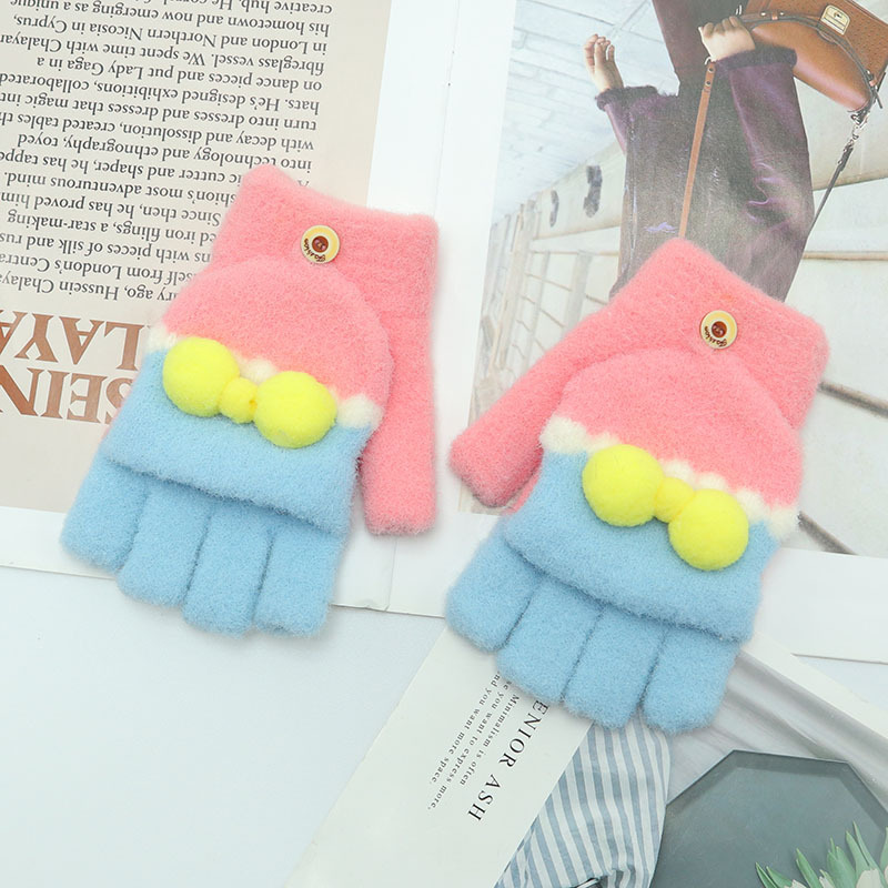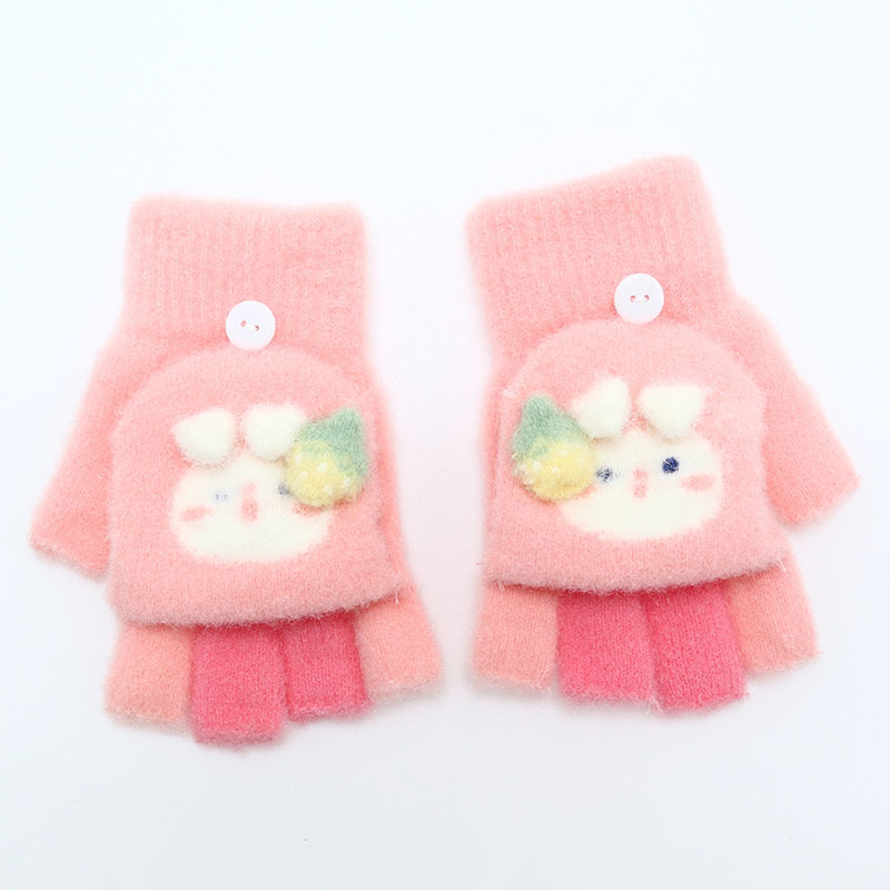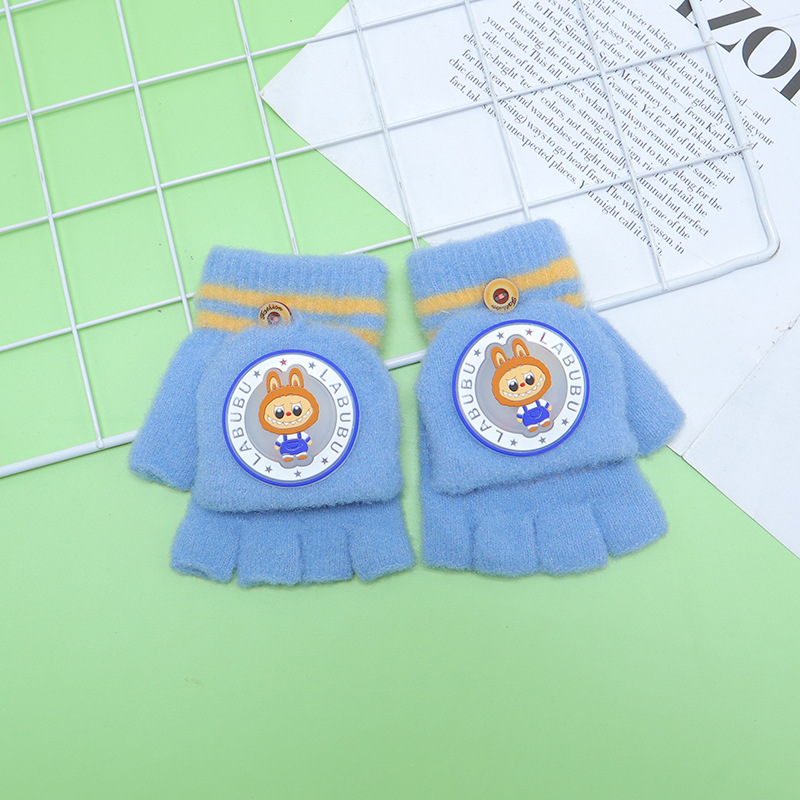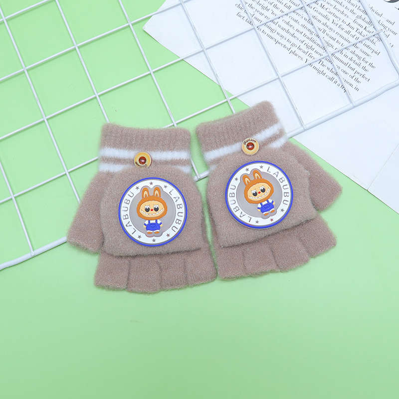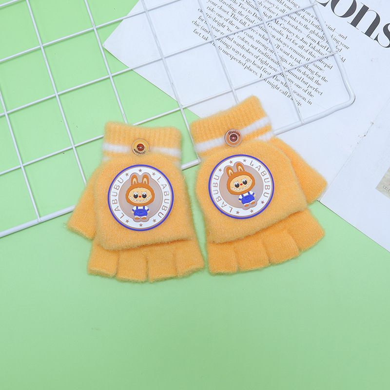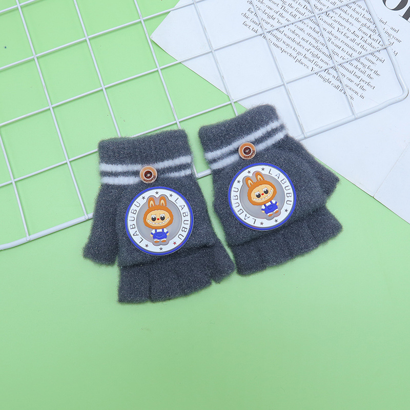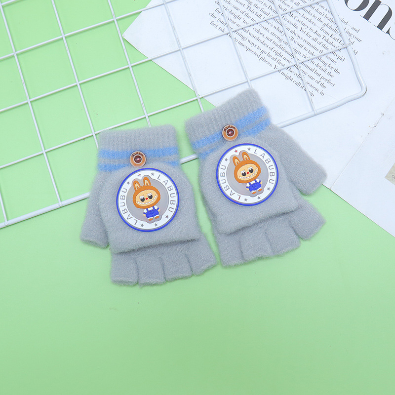 Kulomi 어린이 플립 장갑 겨울 반 손가락 소녀 산리오 남학생과 여학생을위한 따뜻한 글쓰기 가을 겨울 반 손가락