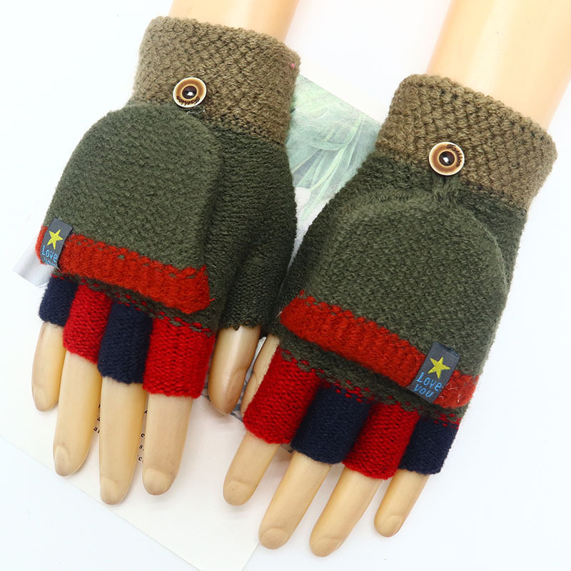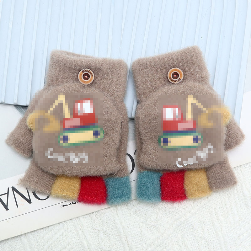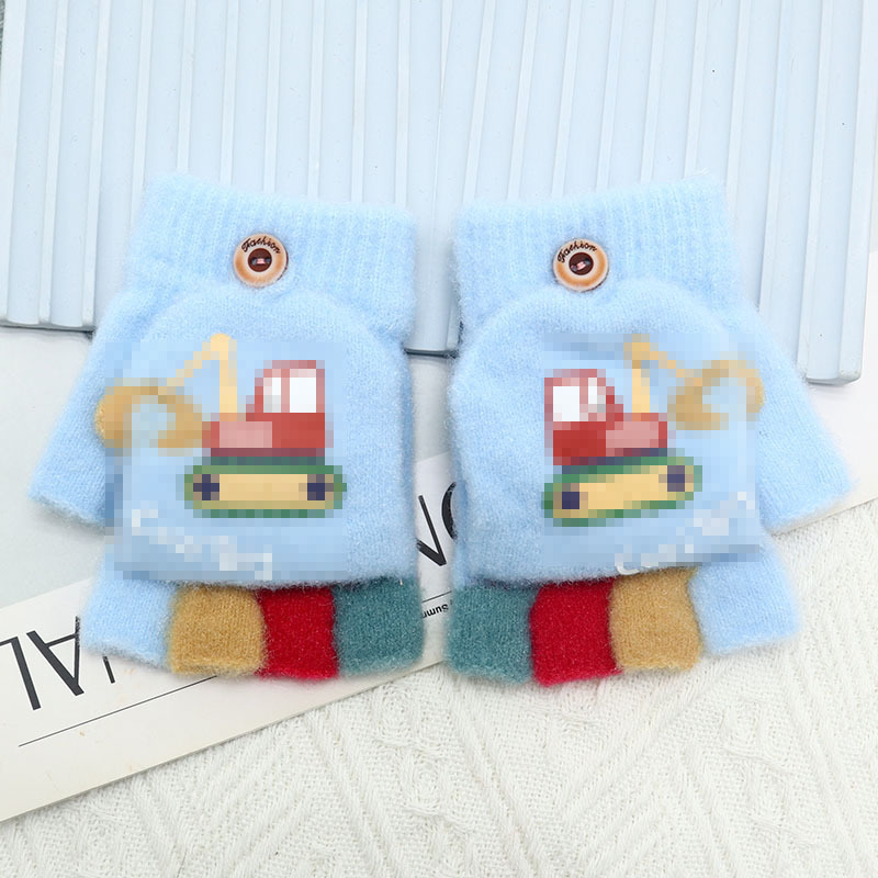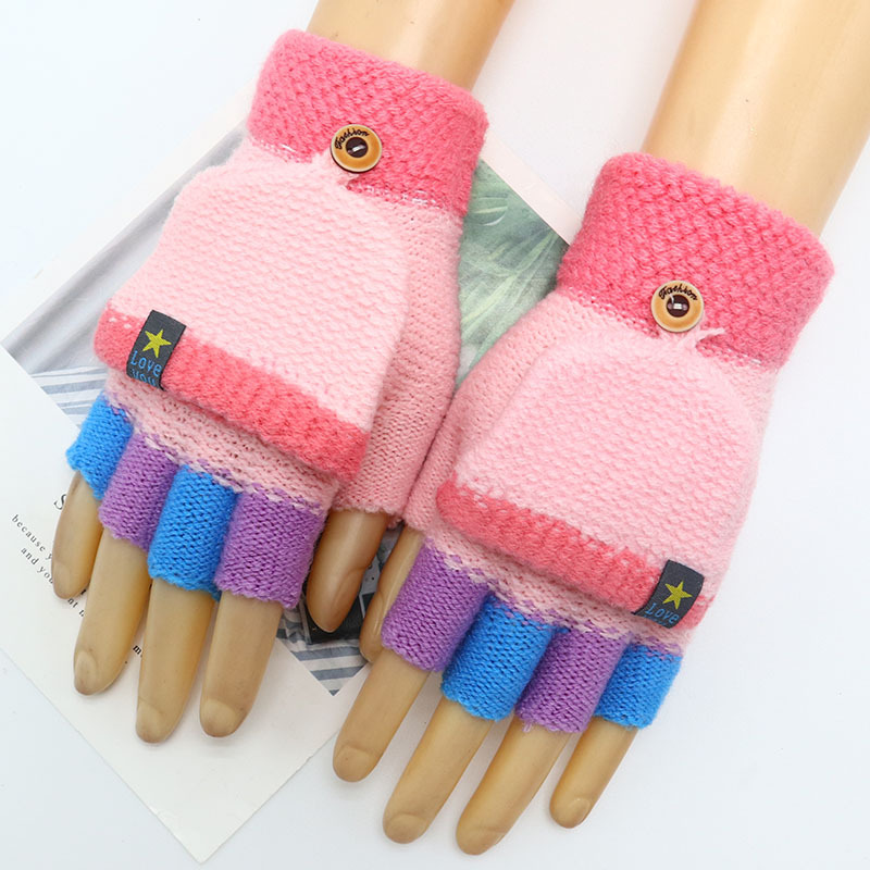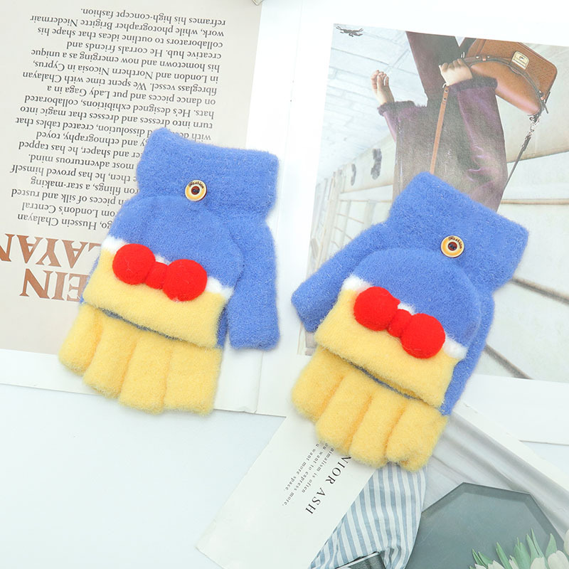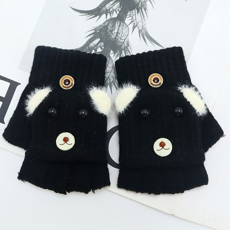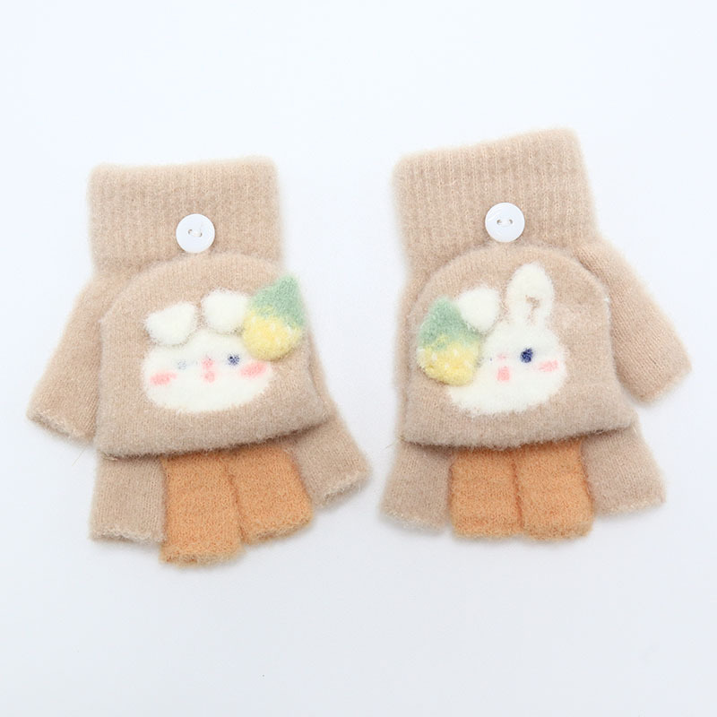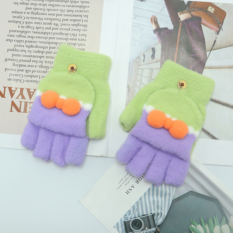 Kulomi 어린이 플립 장갑 겨울 반 손가락 소녀 산리오 남학생과 여학생을위한 따뜻한 글쓰기 가을 겨울 반 손가락