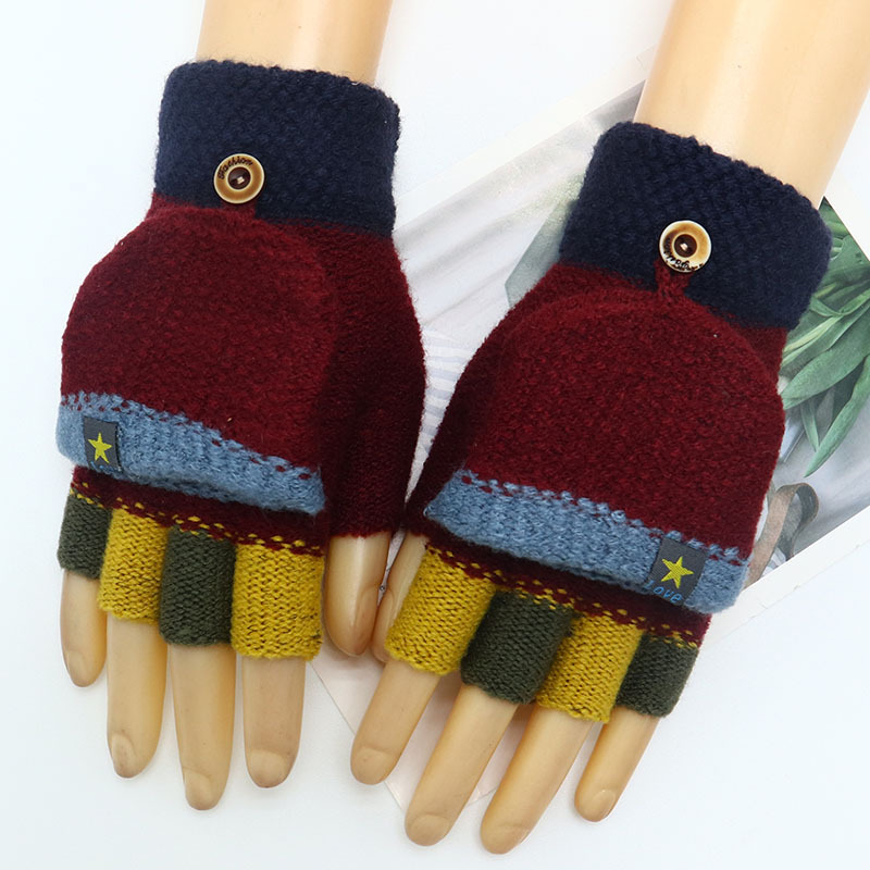 Kulomi 어린이 플립 장갑 겨울 반 손가락 소녀 산리오 남학생과 여학생을위한 따뜻한 글쓰기 가을 겨울 반 손가락스토어 가기