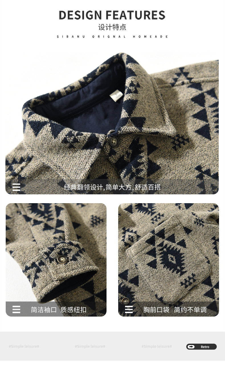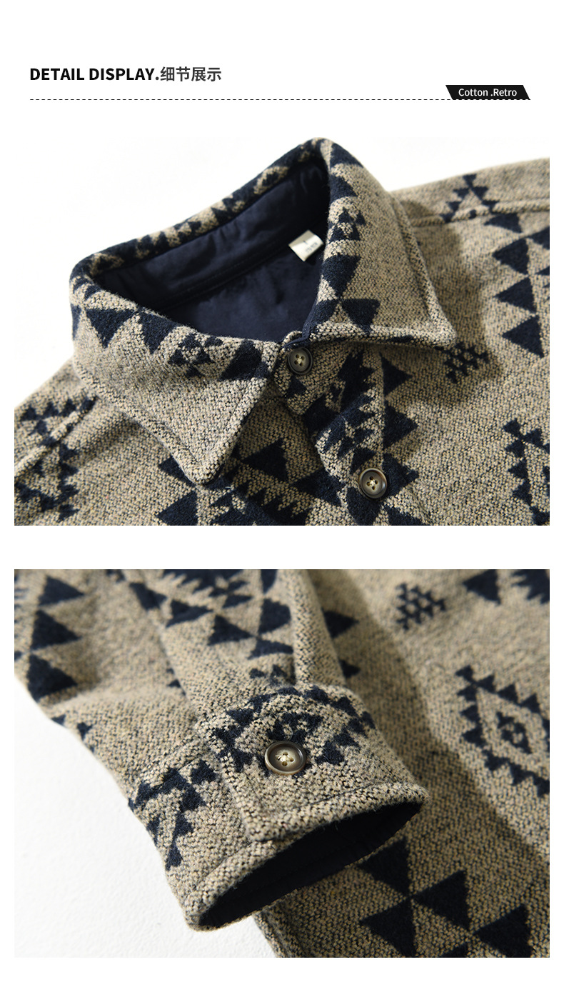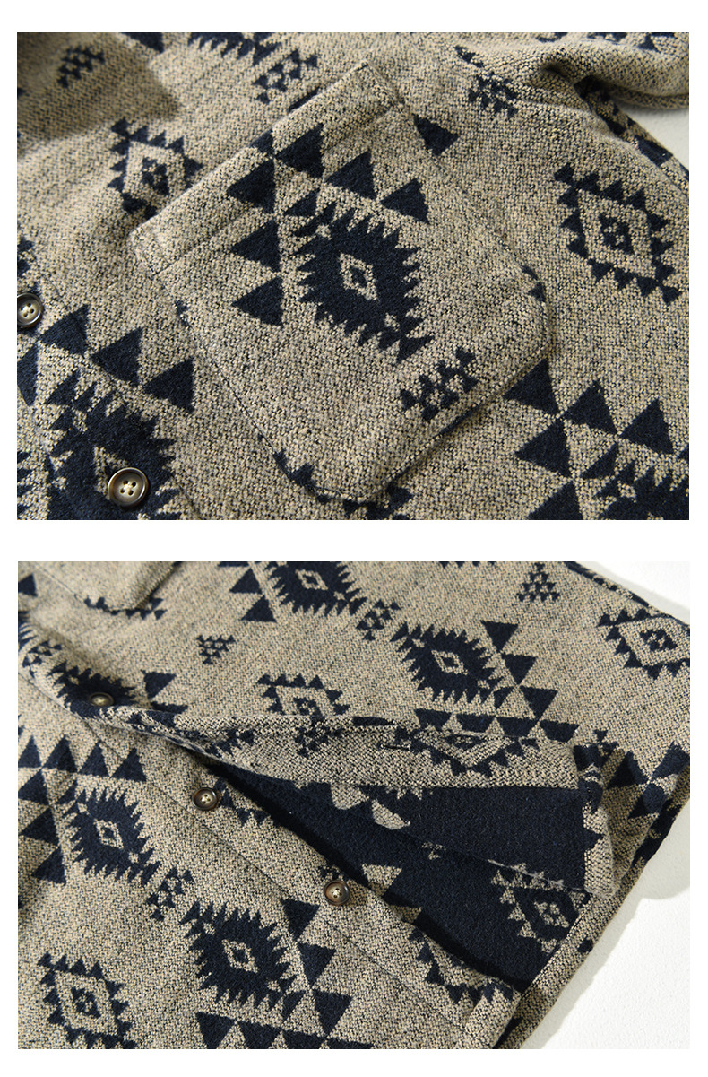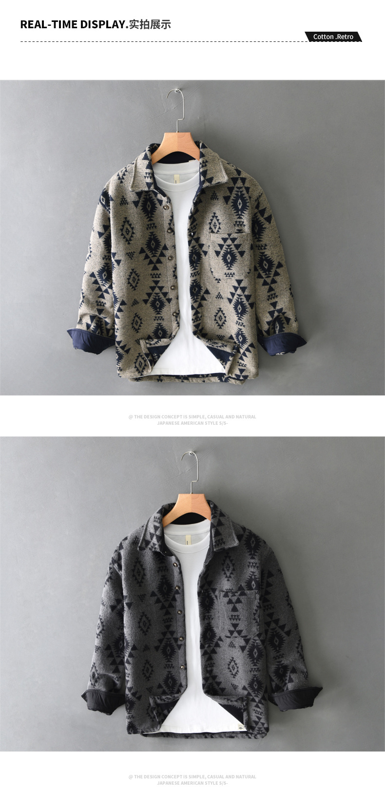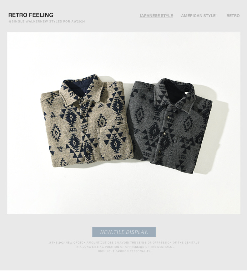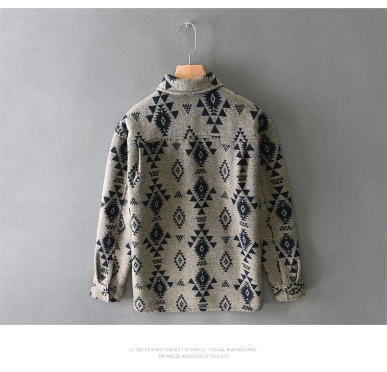 T738 새로운 남성 가을 새로운 빈티지 자카드 울 긴 소매 캐주얼 셔츠 남성 의류스토어 가기