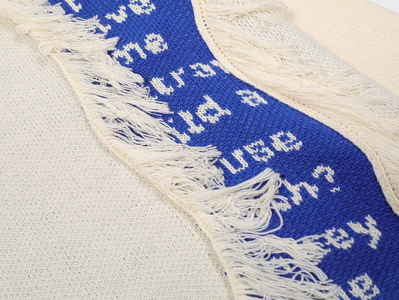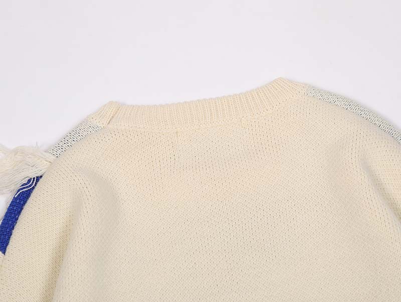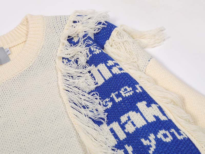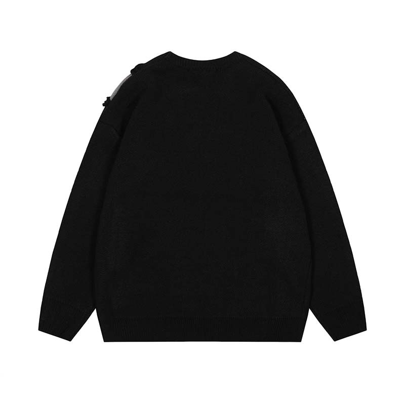 미국 레트로 콘트라스트 컬러 스티칭 편지 자카드 모피 엣지 디자인 스웨터 남성 패션 브랜드 힙합 루즈 니트 스웨터
