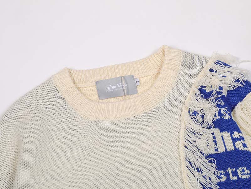 미국 레트로 콘트라스트 컬러 스티칭 편지 자카드 모피 엣지 디자인 스웨터 남성 패션 브랜드 힙합 루즈 니트 스웨터스토어 가기