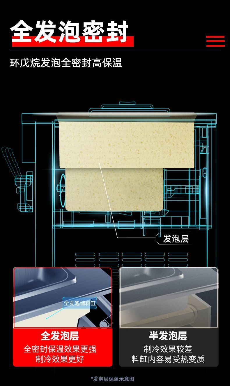 • 수직형 - 확대된 이중 프레스 사전 냉각 + 빠른 연속 타격, 7일 동안 청소가 필요 없음