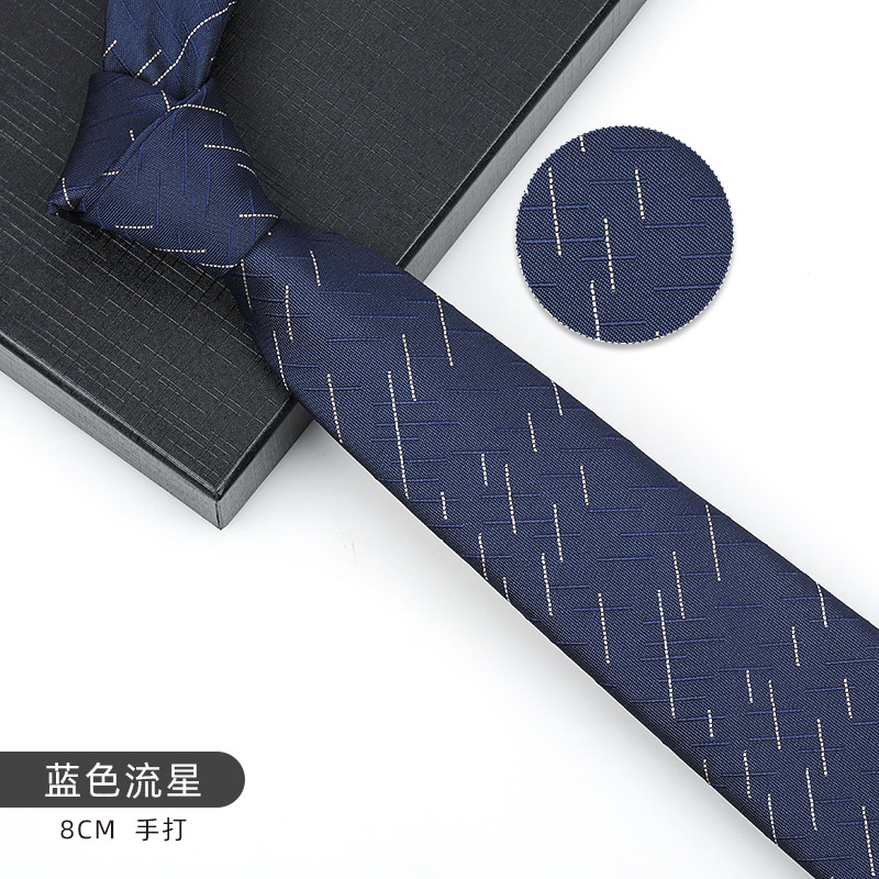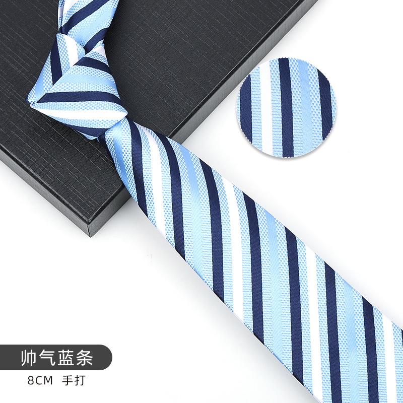 • 8cm 우아한 블루 스트립 핸드 프린팅