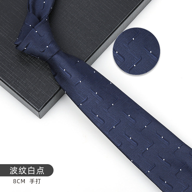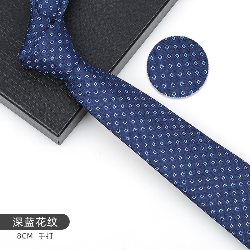 • 8cm 네이비 블루 잔주름 핸드 프린팅