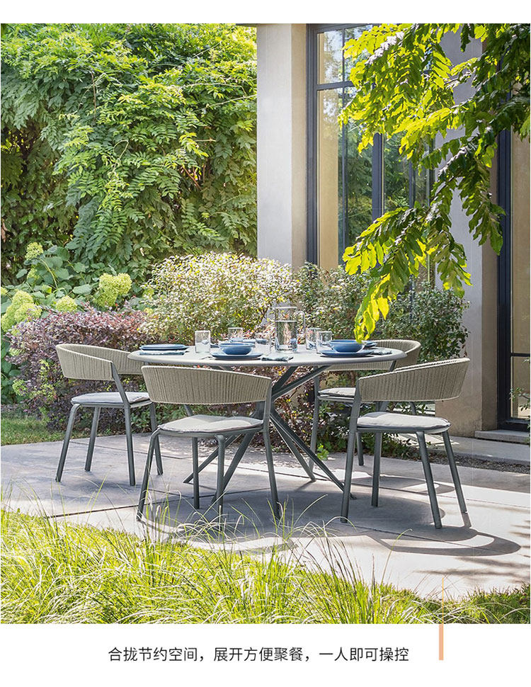 야외 테이블과 의자 락 보드 긴 서양 식탁 등나무 안뜰 정원 빌라 발코니 북유럽 비와 태양 보호 가구스토어 가기