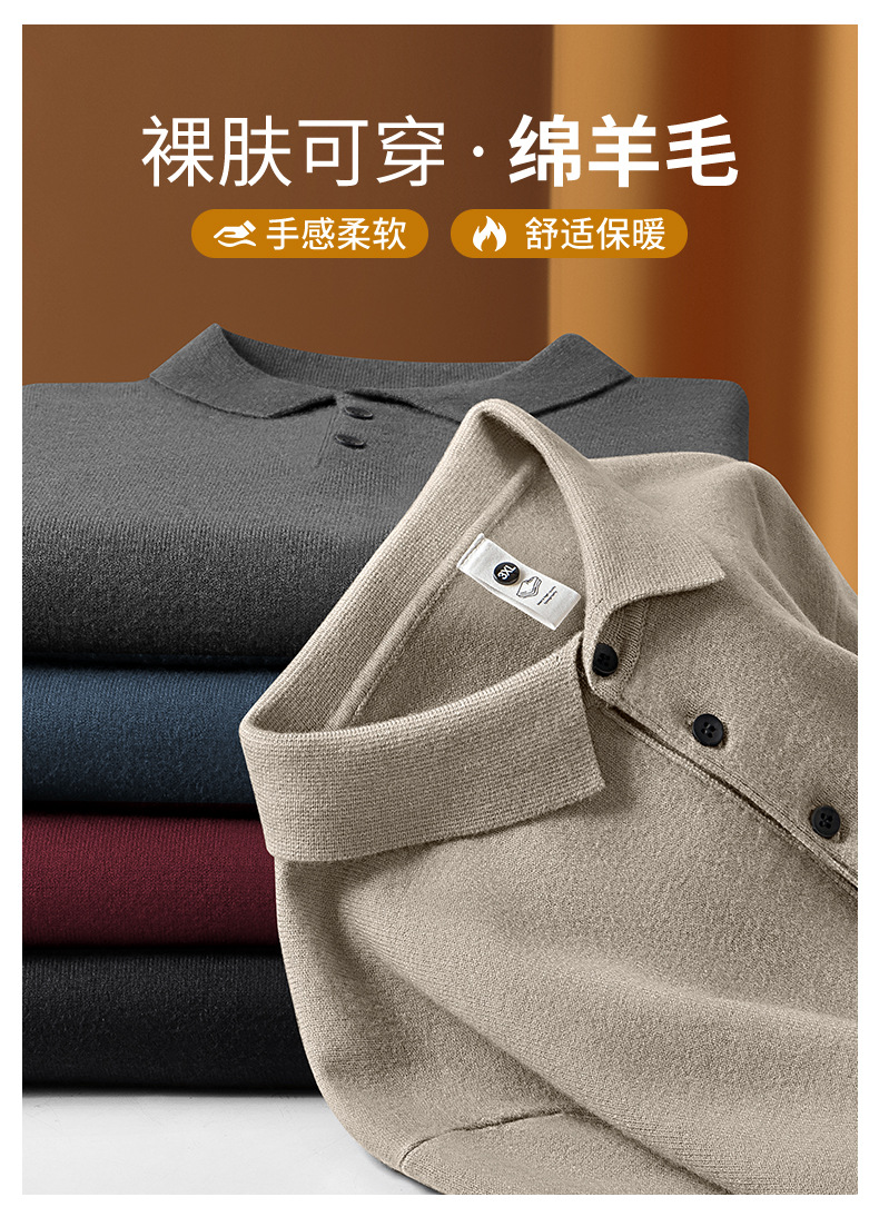 긴팔 폴로 스웨터 중년 남성용 2025 가을 겨울 이너웨어 비즈니스 카라 따뜻한 니트 스웨터 베이스 레이어 남성용