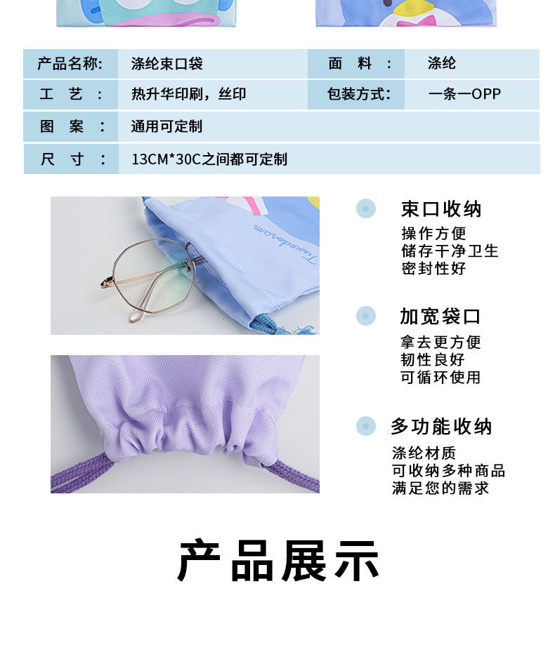 만화 귀여운 번들 포켓 어린이 학생 일본 스몰 사이즈 드로우 스트링 가방 폴리 에스테르 가방 화장품 가방 잡화 보관 가방