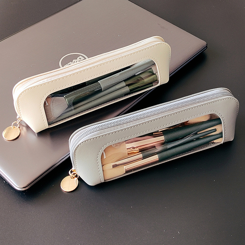 작은 휴대용 가죽 화장품 가방 눈썹 펜 메이크업 브러시 보관 가방 가죽 방수 여행 가방 눈썹 펜 가방