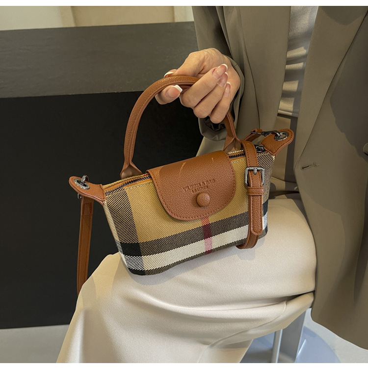 빈티지 체크 무늬 만두 백 2025 새로운 패션 영국 스타일 미니 휴대용 소형 가방 유행 간단한 크로스 바디 가방