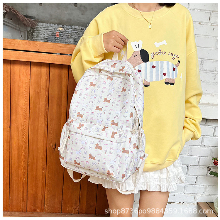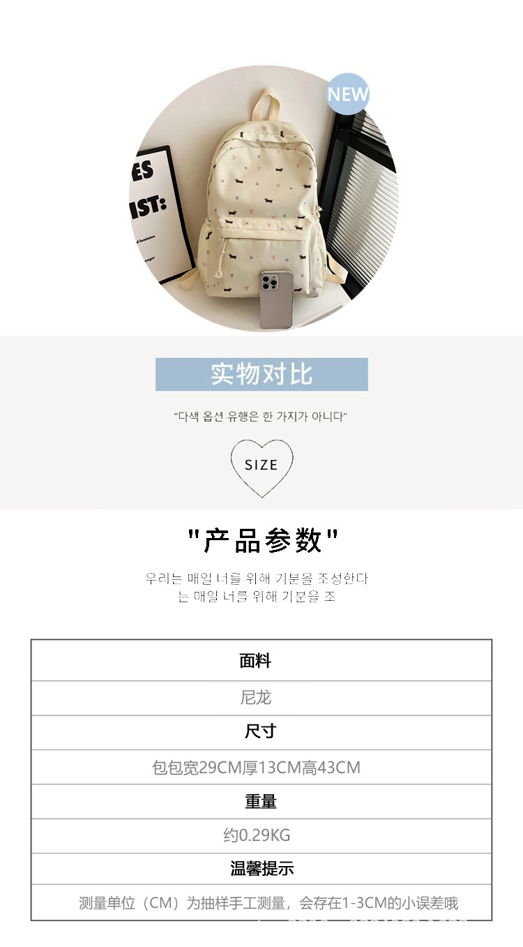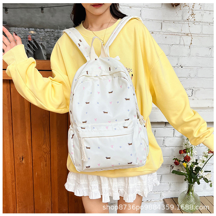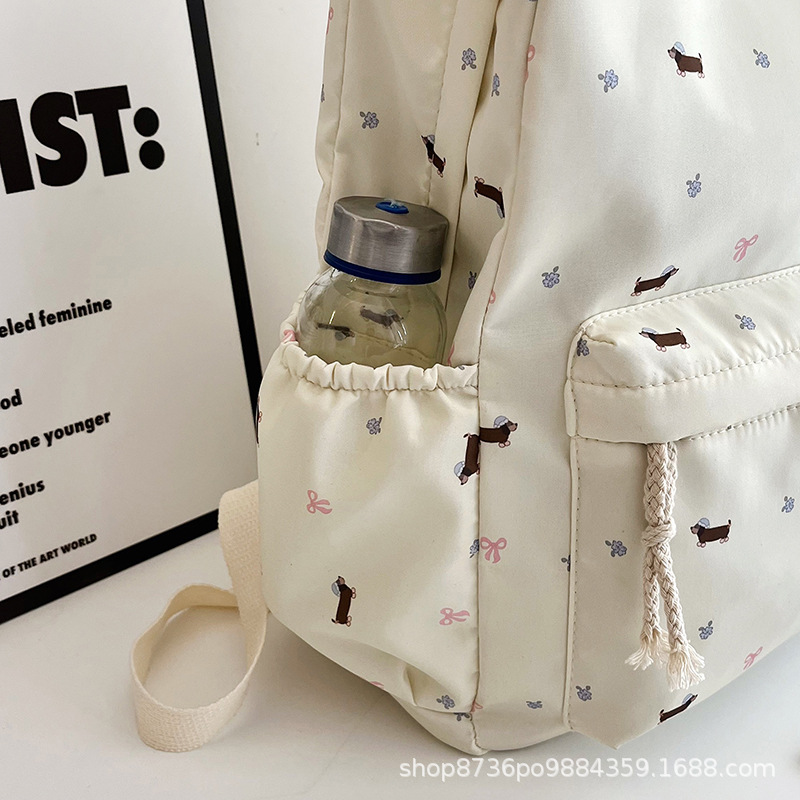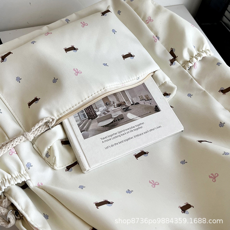 일본 강아지 귀여운 배낭 소녀 꽃 배낭 모든 일치 중학생 초등학교 닥스 훈트 개 배낭