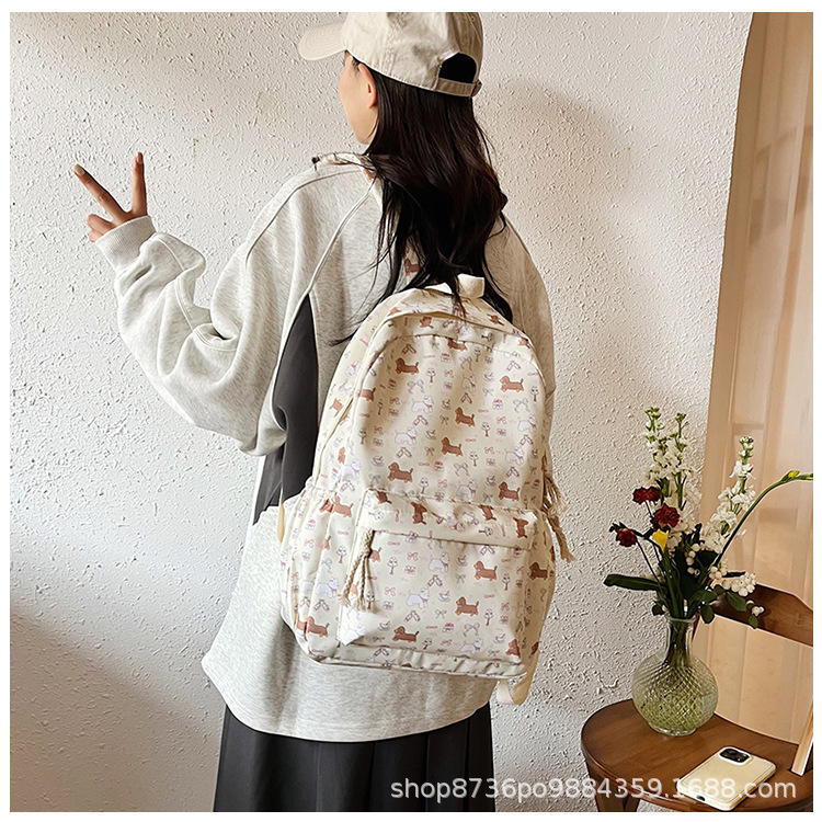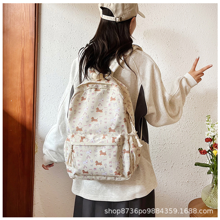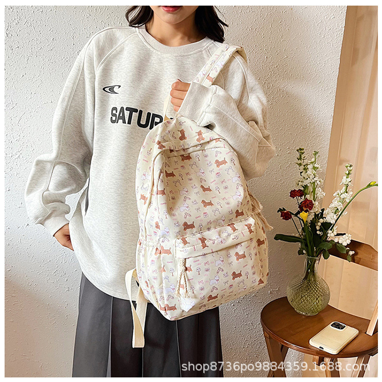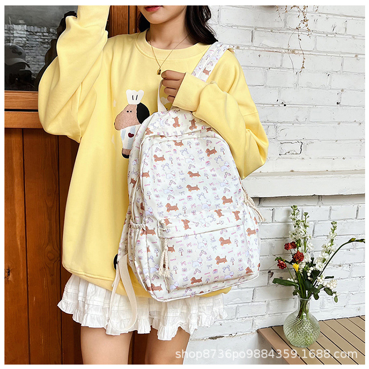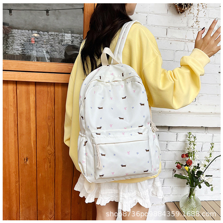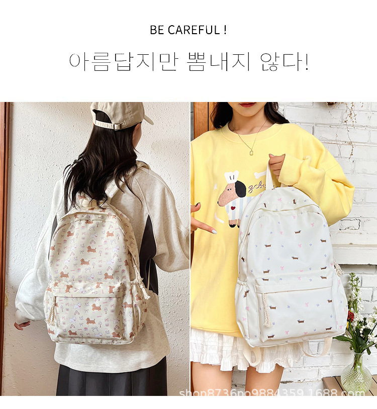 일본 강아지 귀여운 배낭 소녀 꽃 배낭 모든 일치 중학생 초등학교 닥스 훈트 개 배낭스토어 가기