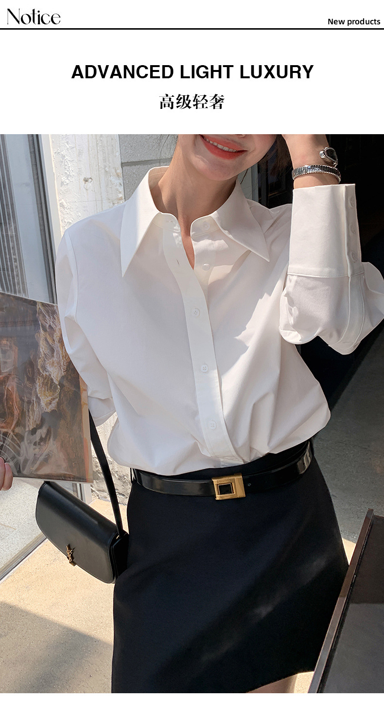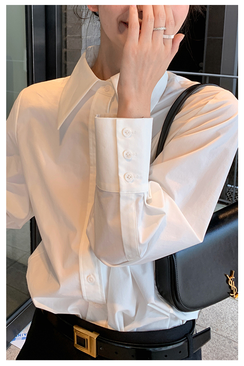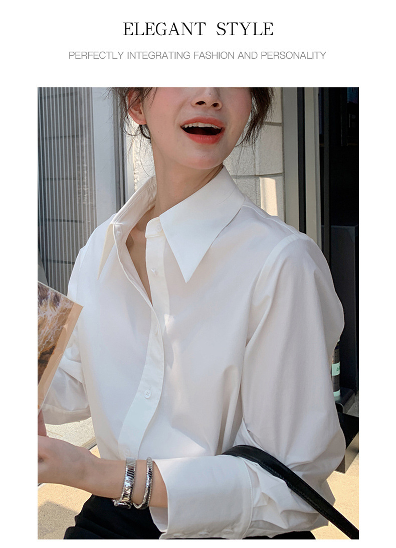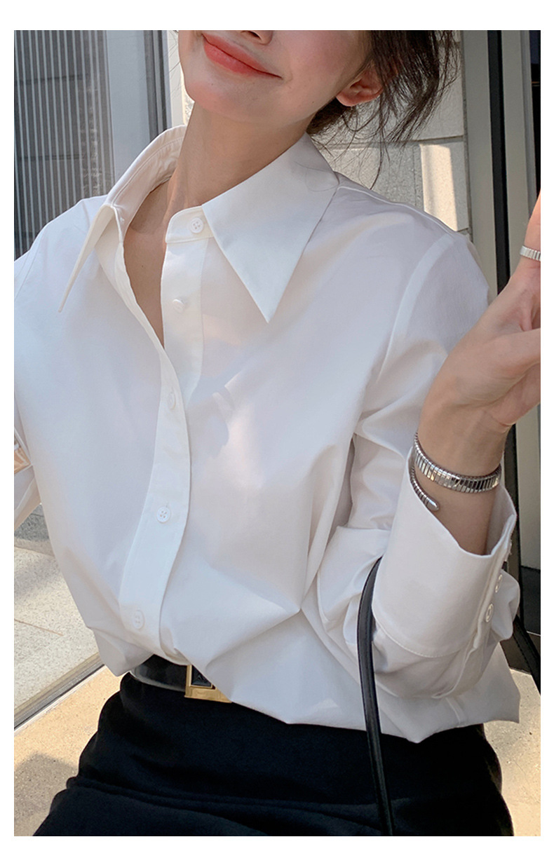 디자인감 있는 작은 뾰족 칼라 긴팔 화이트 셔츠 여성용 2026년 봄 신상 직장 출퇴근용 우아하고 나이를 줄여주는 탑스토어 가기