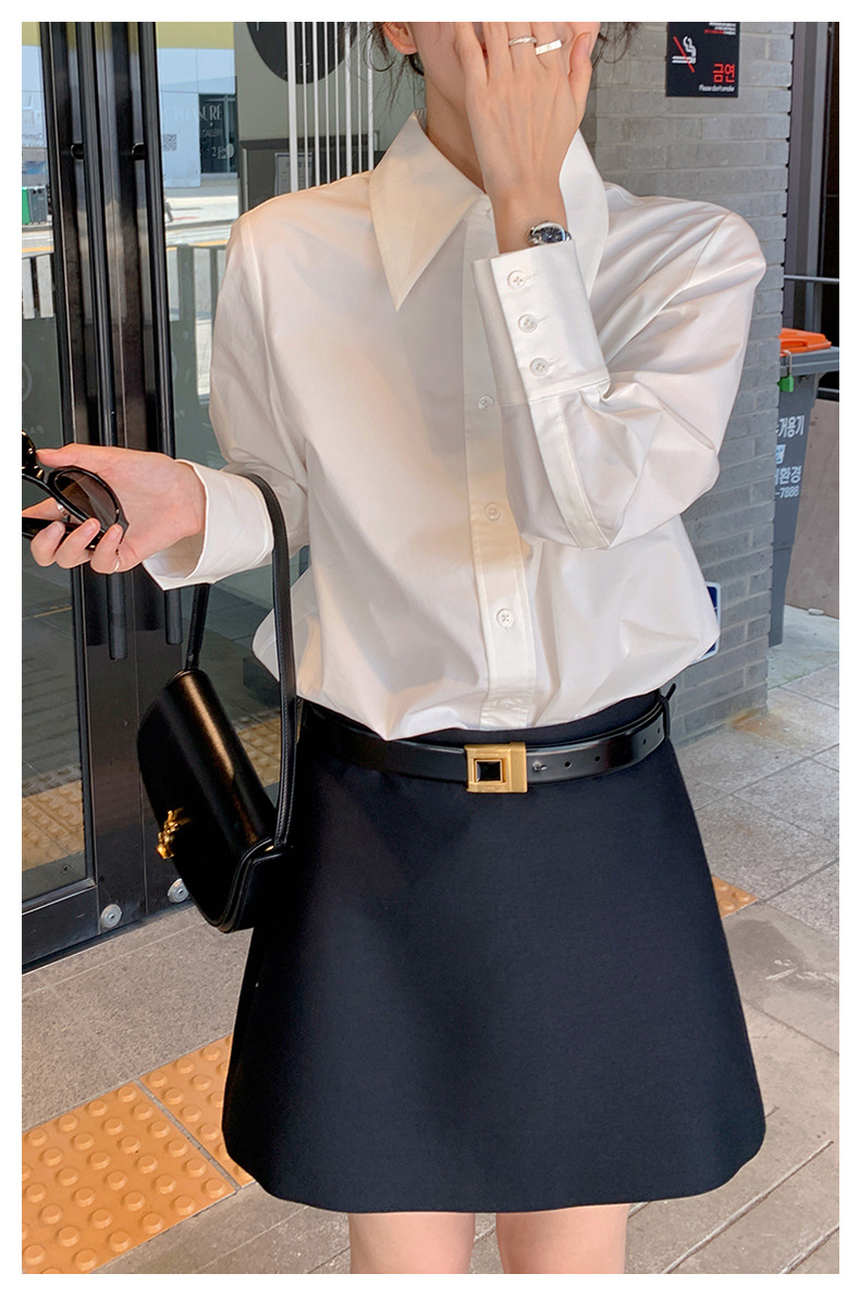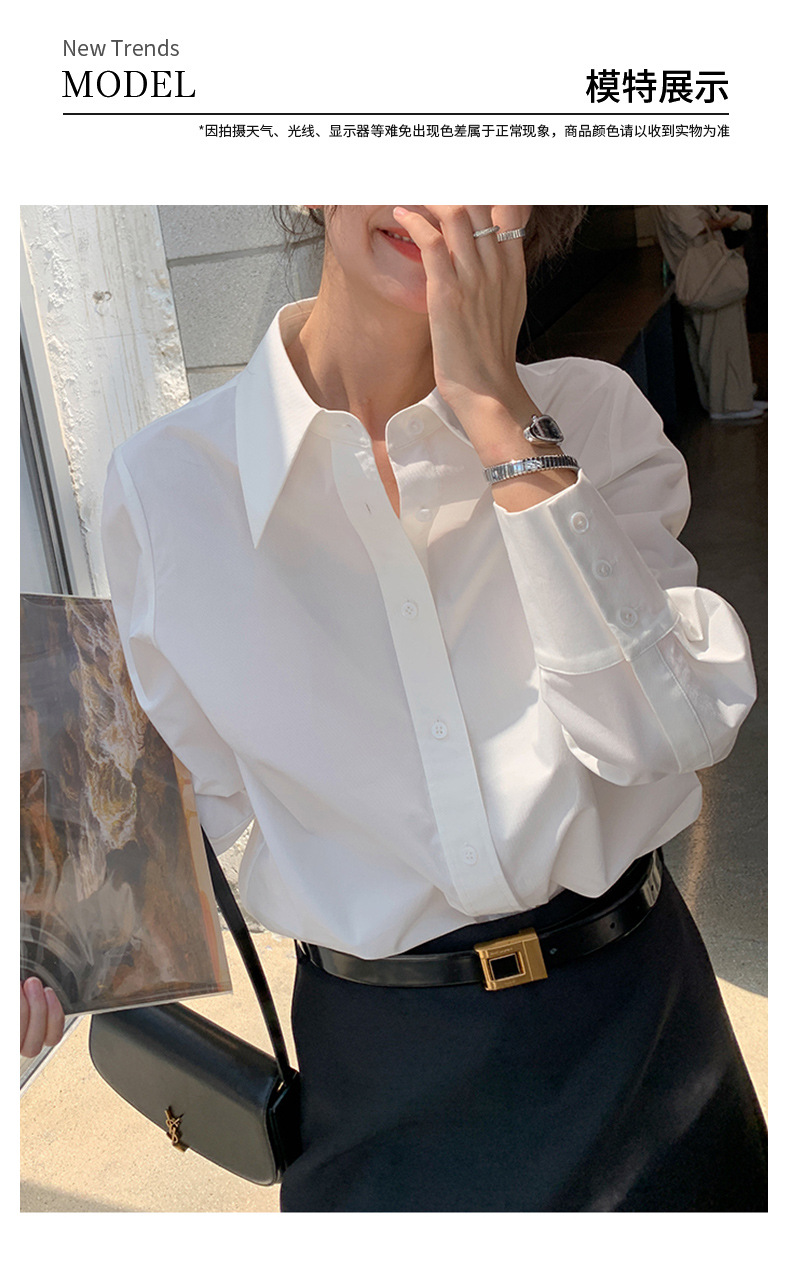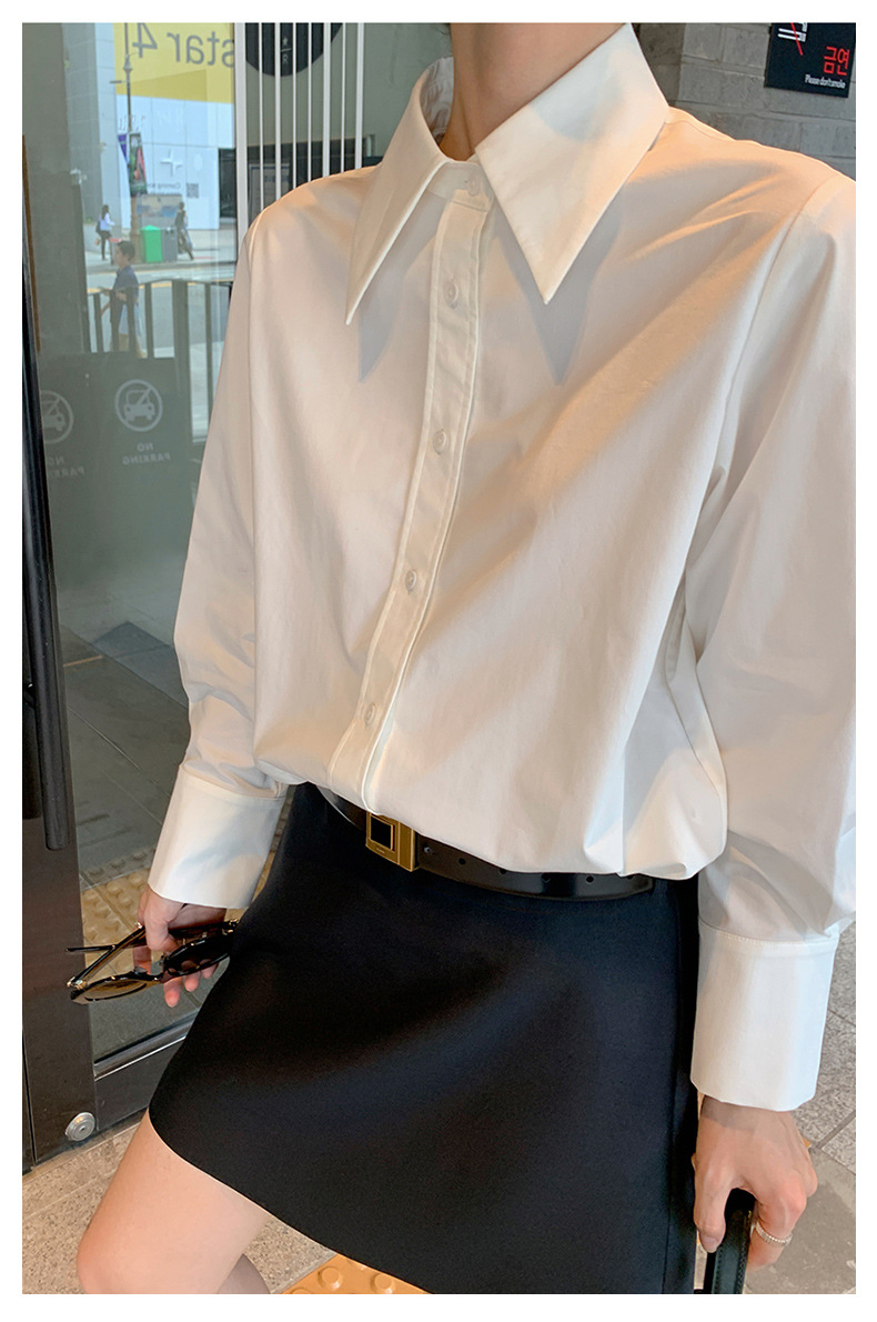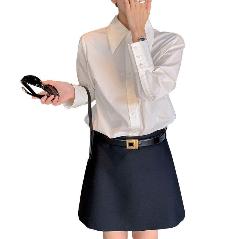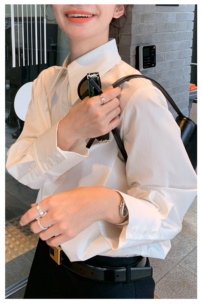 디자인감 있는 작은 뾰족 칼라 긴팔 화이트 셔츠 여성용 2026년 봄 신상 직장 출퇴근용 우아하고 나이를 줄여주는 탑스토어 가기