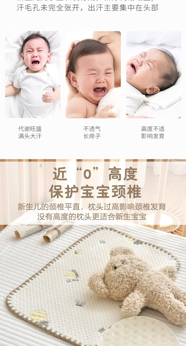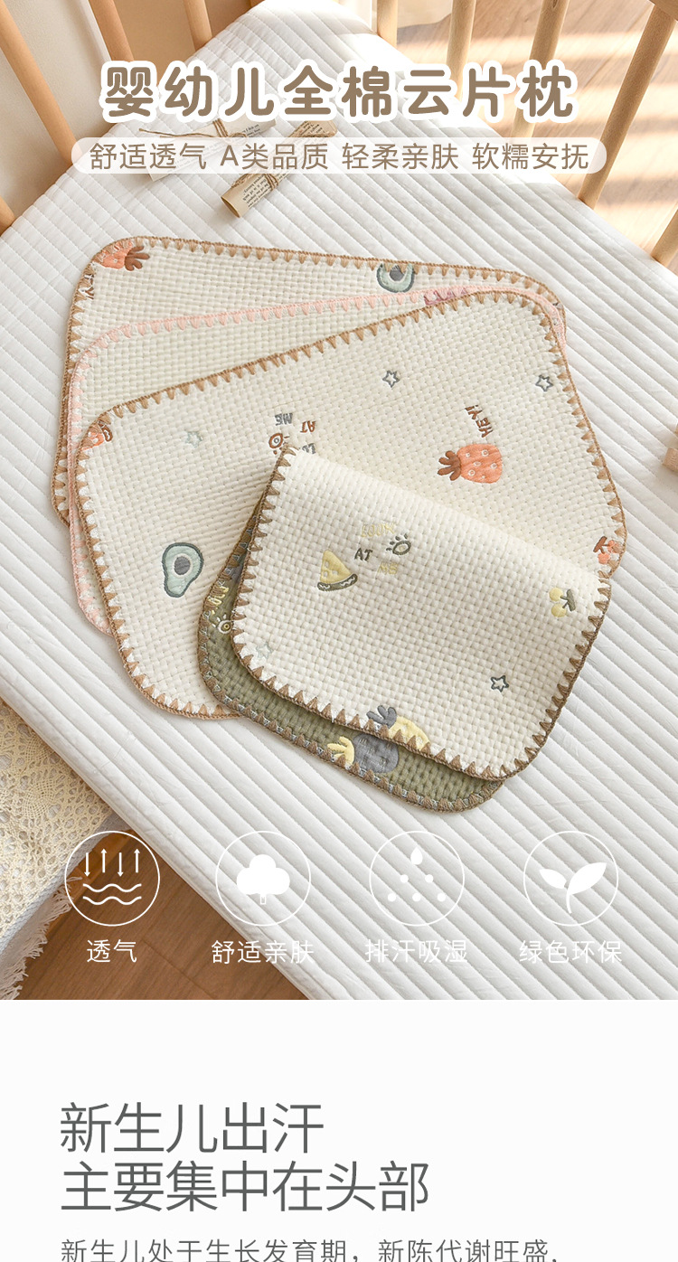신생아 코튼 클라우드 베개 신생아 땀 흡수 통기성 베개 아기 플랫 베개 안티 침 작은 베개 베개 수건