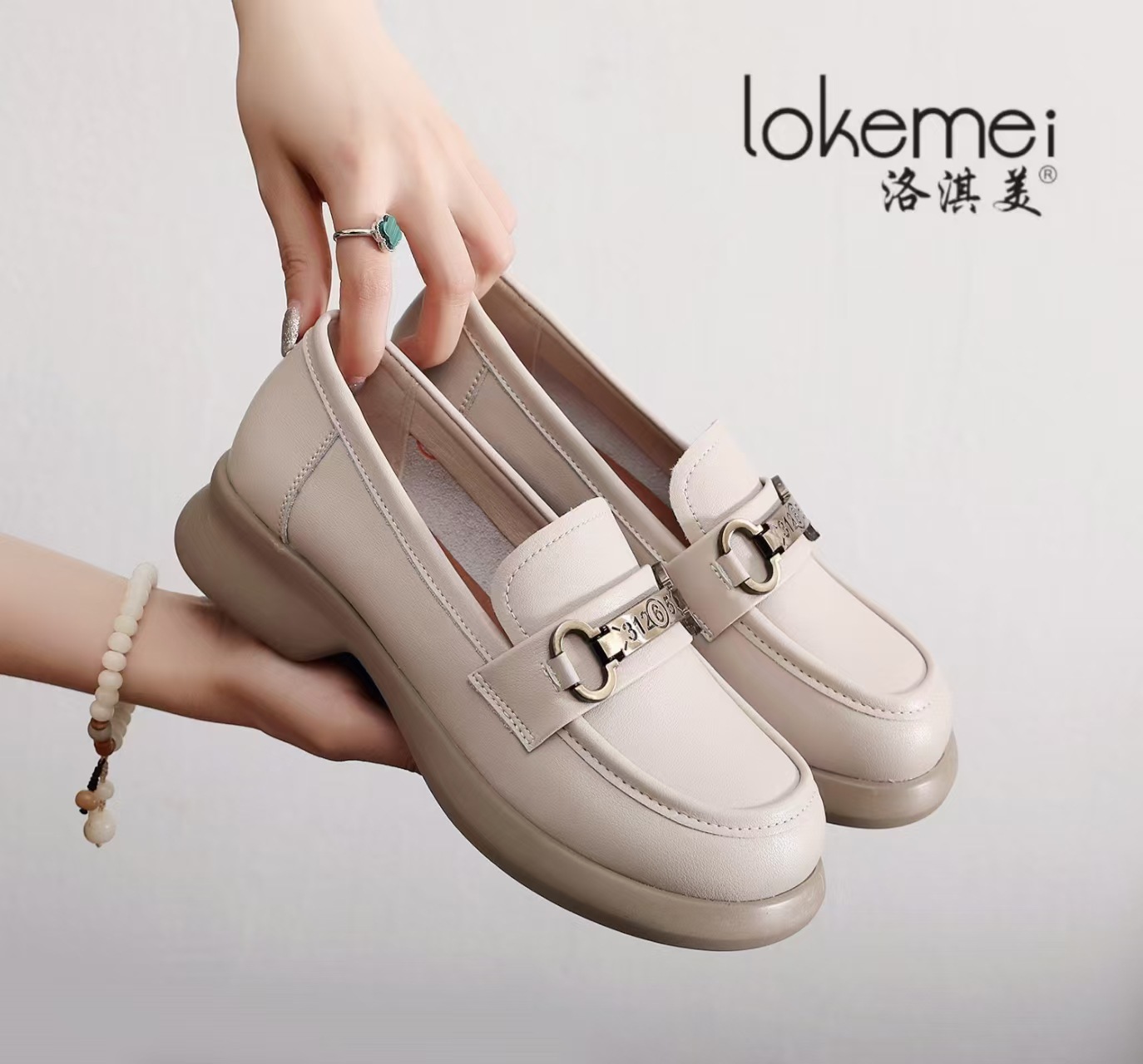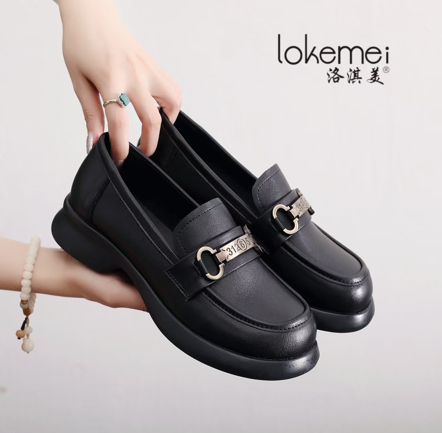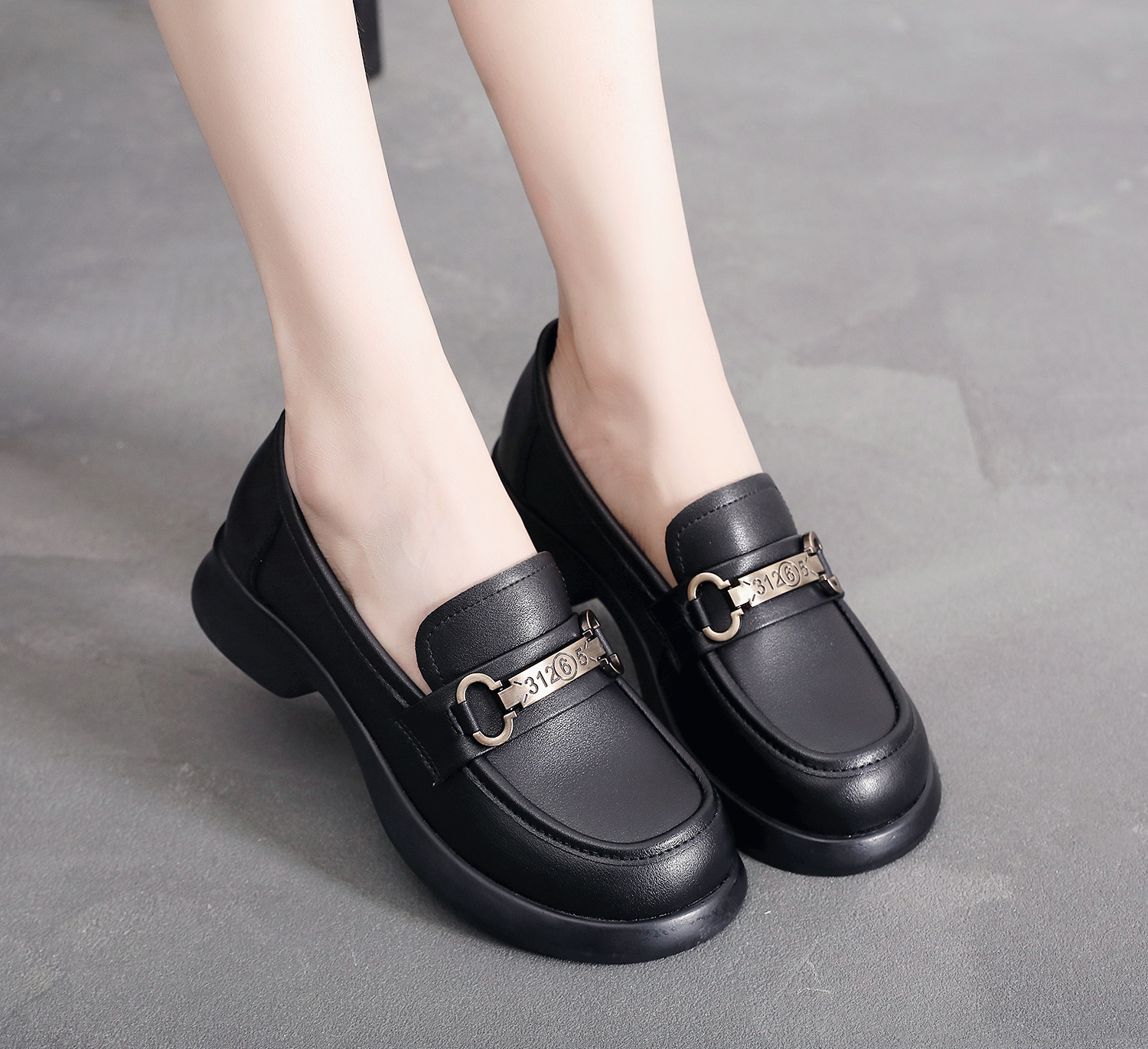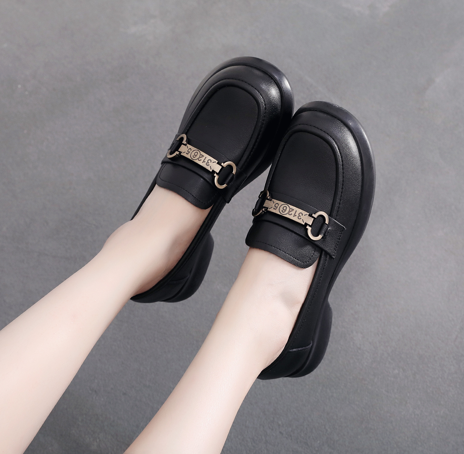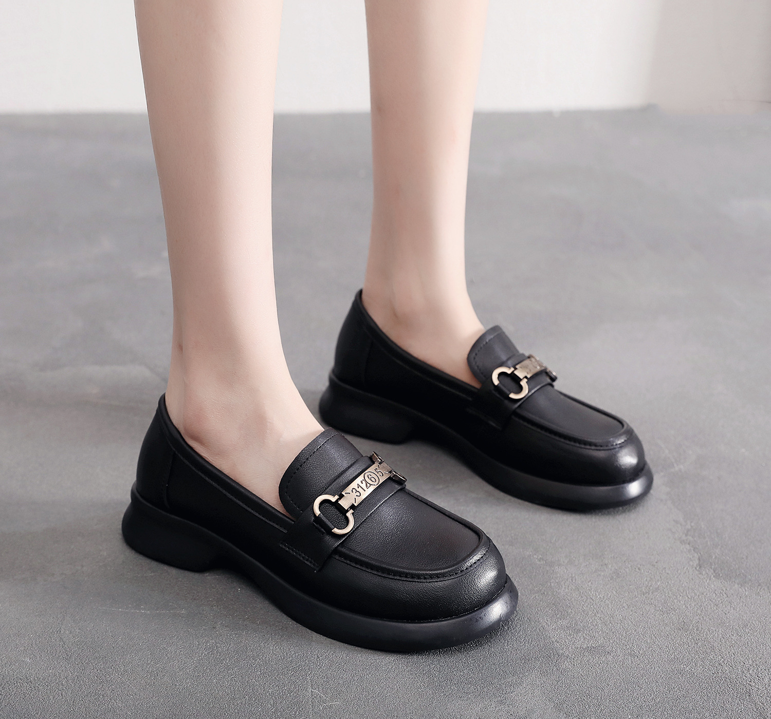 2024년 봄 여성용 천연 가죽 슬립온 부드러운 밑창 로퍼 소가죽 라운드 토 버클 장식 캐주얼 가죽 신발 낮은 굽스토어 가기