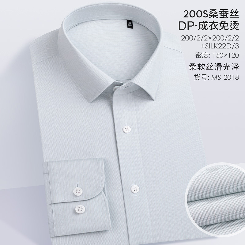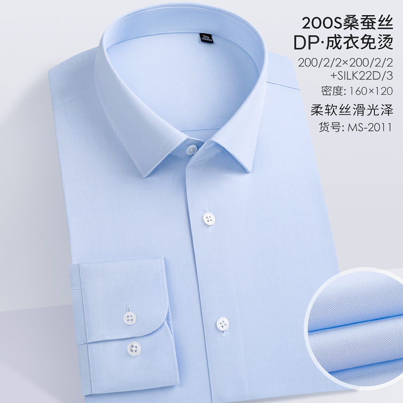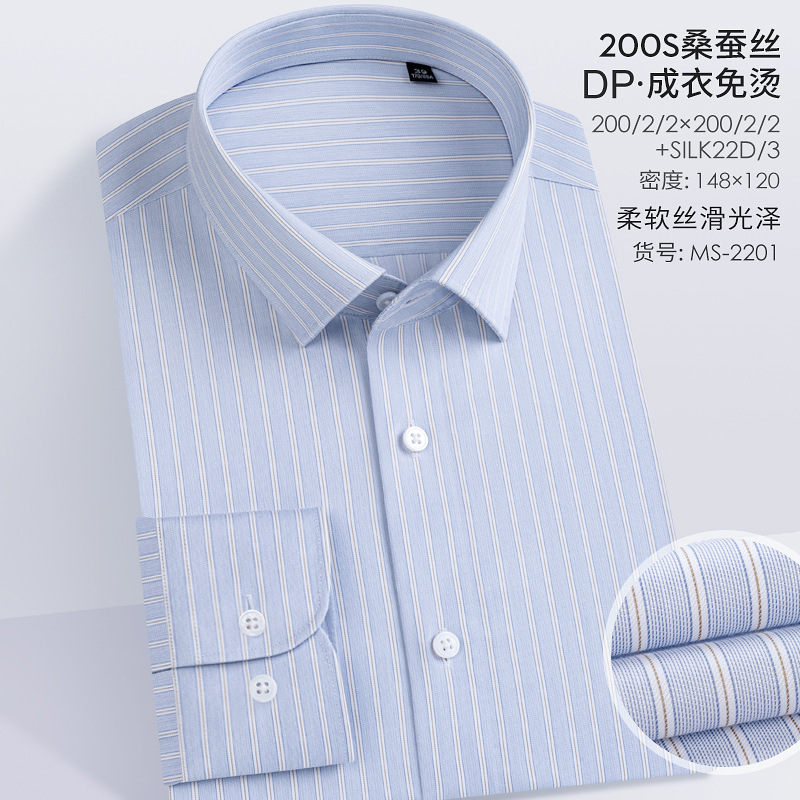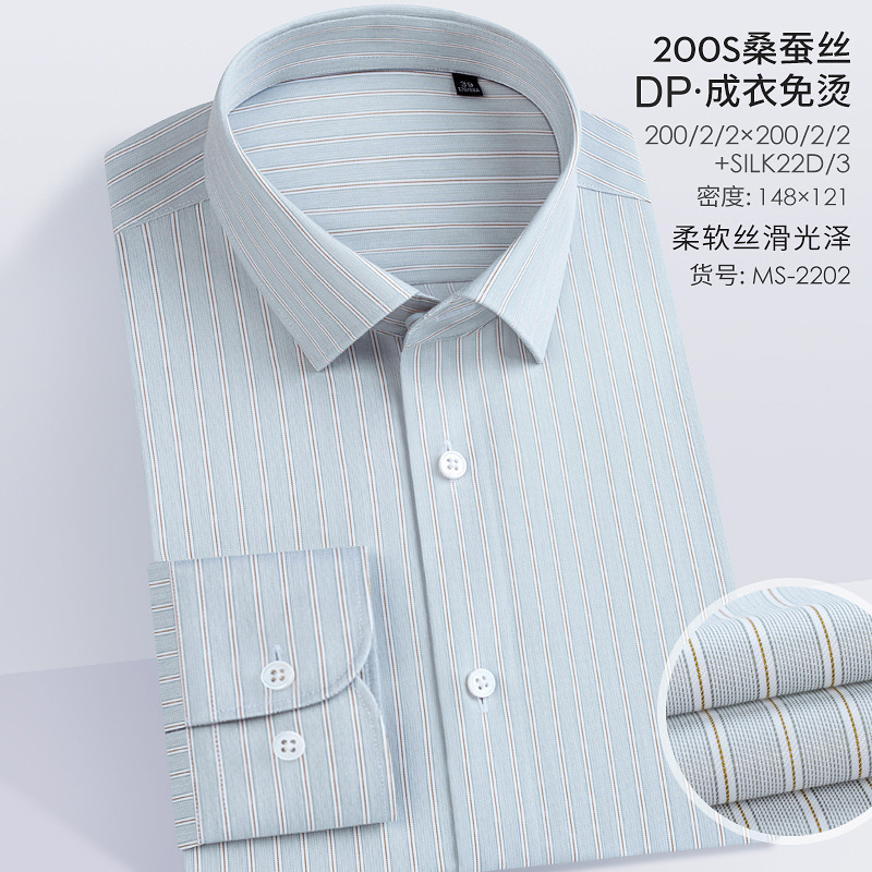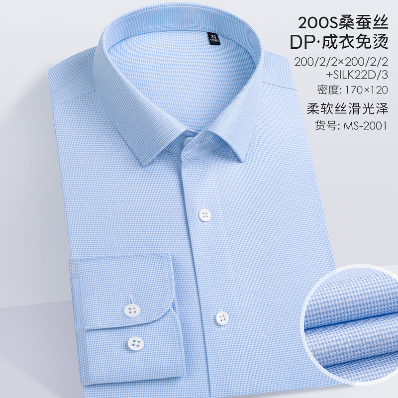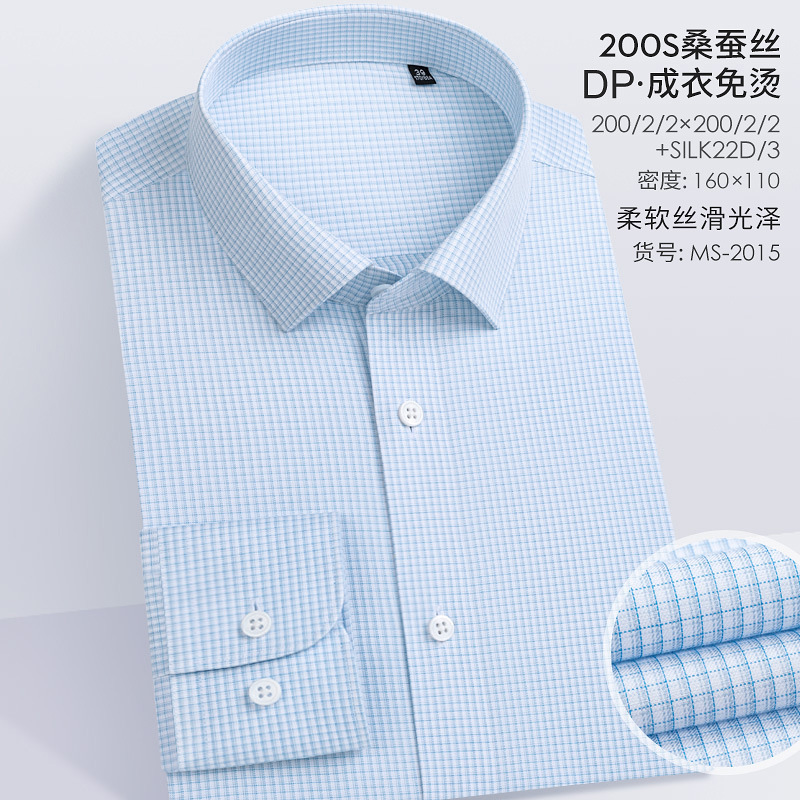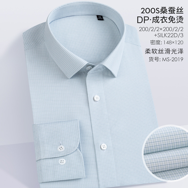 200S 면 실크 남성 긴팔 셔츠 신상 고급 비즈니스 남성복 기성복 다림질 필요 없는 체크무늬 정장 셔츠스토어 가기