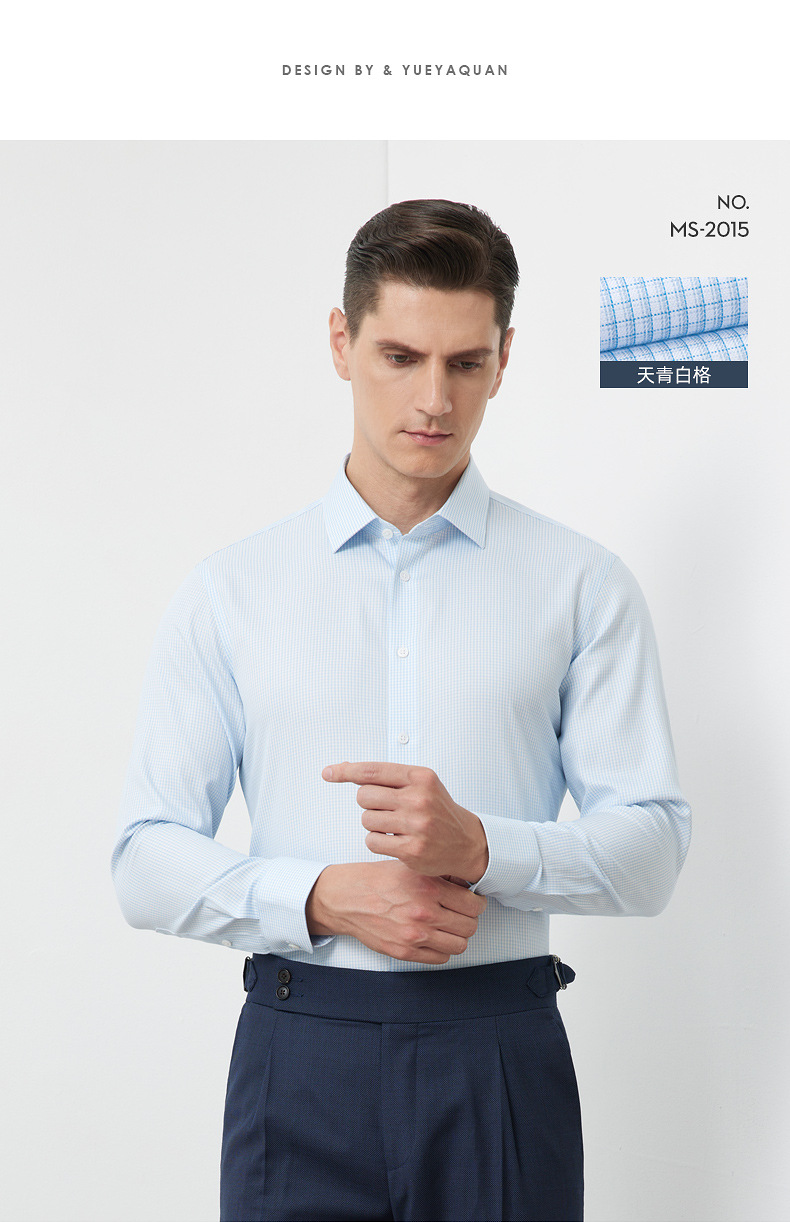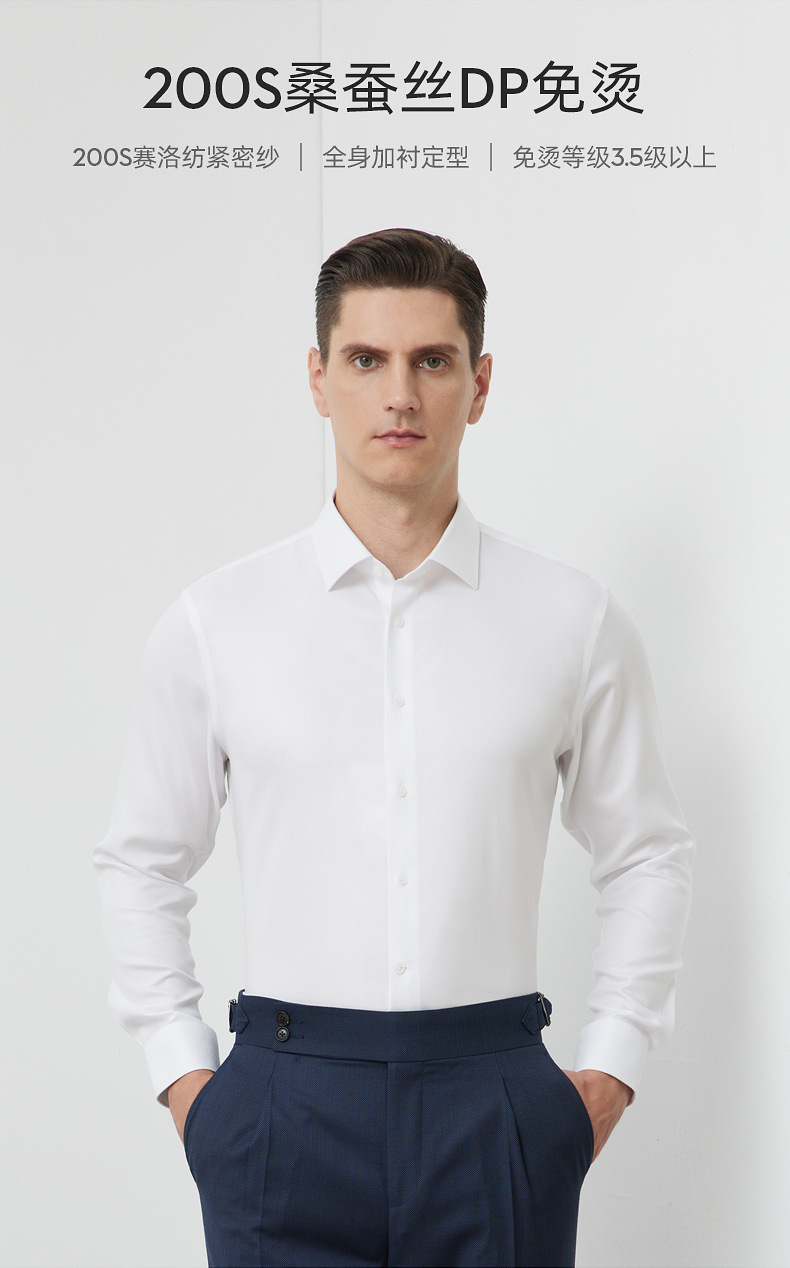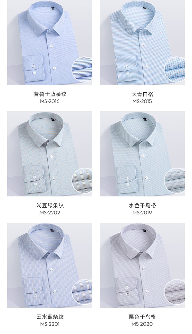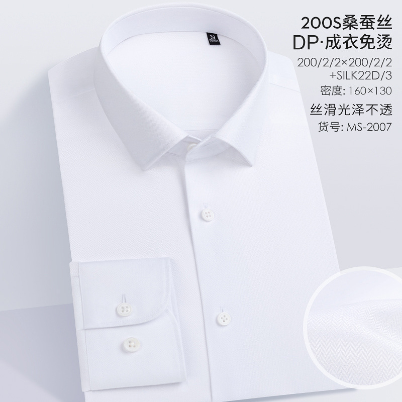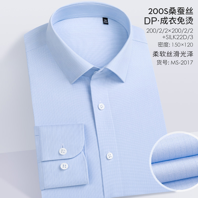 200S 면 실크 남성 긴팔 셔츠 신상 고급 비즈니스 남성복 기성복 다림질 필요 없는 체크무늬 정장 셔츠스토어 가기